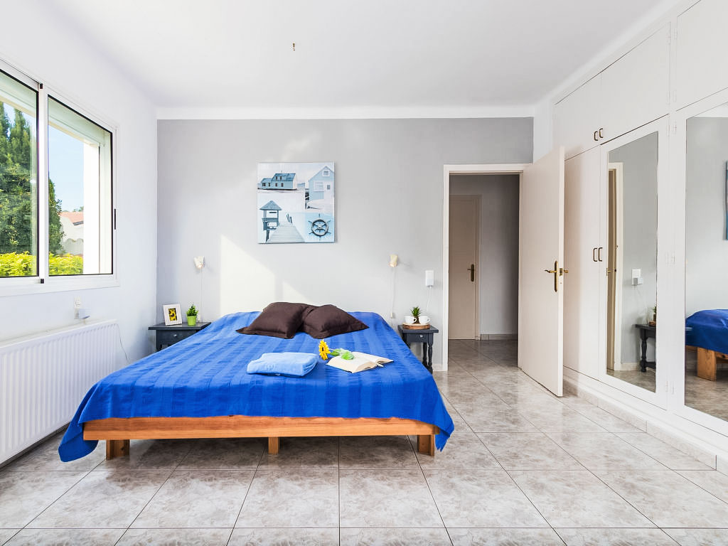 4-Zimmer-Haus 120 m2. Hell, zweckmässig und komfortabel eingerichtet: Wohn-/Esszimmer mit Esstisch, Sat-TV und Digital-TV (Flachbildschirm). Ausgang zur Terrasse, zum Schwimmbad. 1 Zimmer mit 1 Doppelbett (2 x 80 cm, Länge 190 cm), Dusche/WC. 1 grosses Zimmer mit 1 Doppelbett (2 x 80 cm, Länge 190 cm). Ausgang zur Terrasse, zum Schwimmbad. 1 Zimmer mit 1 Doppelbett (2 x 80 cm, Länge 190 cm). Offene Küche (4 Kochplatten, Backofen, Geschirrspüler, Mikrowelle, elektrische Kaffeemaschine) mit Bar. Bad/WC. Garten, Rasen. Terrassenmöbel, Gartengrill, Liegestühle (4), Loggia. Sicht auf das Schwimmbad. Zur Verfügung: Waschmaschine, Bügeleisen. Internet (Wireless LAN, gratis). Parkplatz (eingezäunt, 2 Autos). Bitte beachten: 1 Haustier/Hund erlaubt. TV nur FR, DE, ES. HUTG008192
