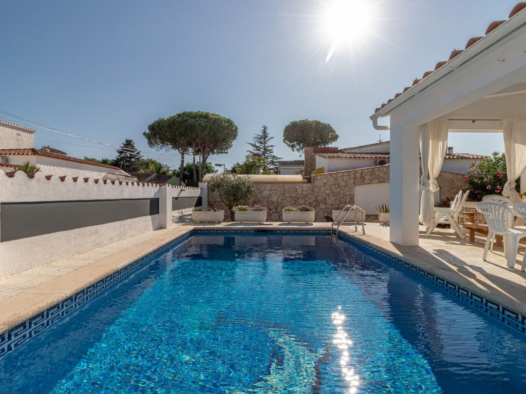 Gemütliches, komfortables Haus "Montgri". Im Ortsteil Montgri, 800 m vom Zentrum von Empuriabrava, ruhige, sonnige Lage im Villenviertel, verkehrsberuhigte Zone, 1 km vom Meer, 1 km vom Strand, 220 m vom Fluss, in einer Sackgasse. Zur Alleinbenutzung: Grundstück (eingezäunt), schöner, gepflegter Garten mit Rasen und Pflanzen, Schwimmbad eckig (4 x 7 m, 01.01.-31.12.). Aussendusche, Pergola, Terrasse, Gartenmöbel, Grill. Im Hause: Waschmaschine. Parkplatz (für 2 Autos) auf dem Grundstück. Einkaufsgeschäft, Lebensmittelgeschäft 550 m, Supermarkt 1 km, Einkaufszentrum 800 m, Restaurant, Bar 350 m, Bäckerei 550 m, Café 350 m, Bushaltestelle 300 m, Sandstrand "Empuriabrava" 800 m. Sporthafen 3 km, Golfplatz (18 Loch) 5 km, Tennis 2 km, Minigolf 800 m, Radweg 250 m. Nahe gelegene Sehenswürdigkeiten: Túnel del viento y skydive Empuriabrava 2 km, Parque Acuático Roses 6 km, Casino y festival de Peralada 12 km, Museo Dalí Figueres 15 km, Ruïnes de Empuries 21 km, Monasterio de Sant Pere de Rodes 23 km.