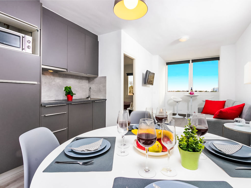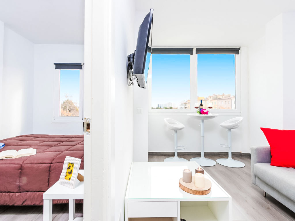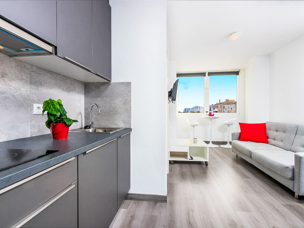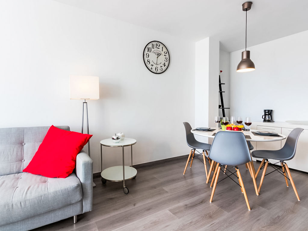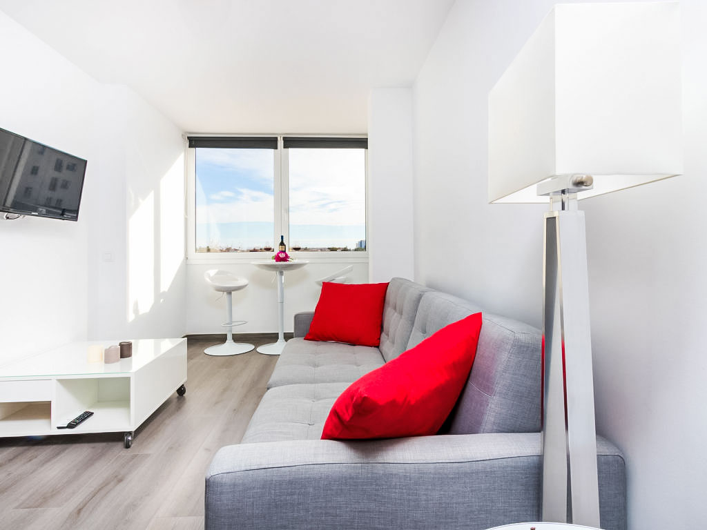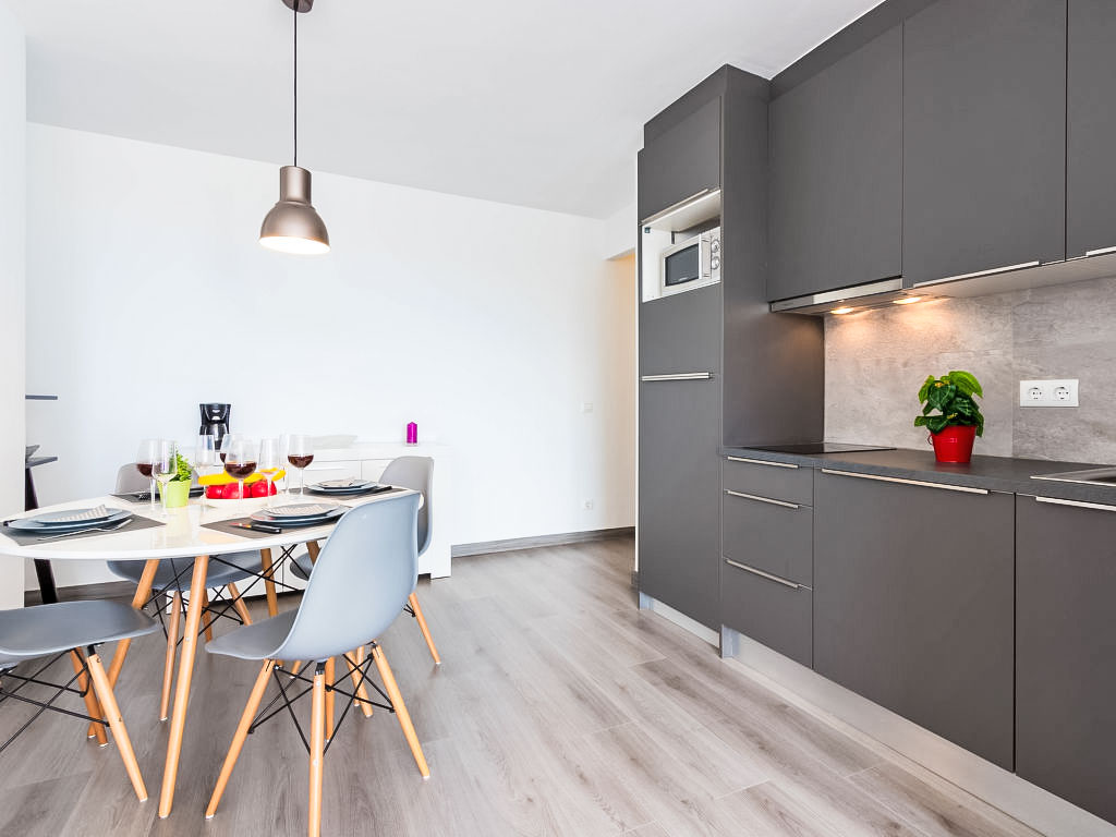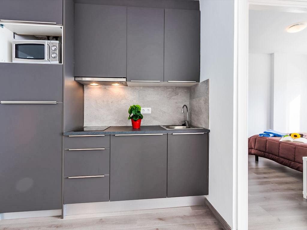 2-Zimmer-Wohnung 37 m2 im 2. Stock. Hell, vollständig renoviert im Jahre 2017, zweckmässig und modern eingerichtet: Wohn-/Esszimmer mit 1 Doppeldiwanbett, Esstisch, Küchenblock und TV. 1 Zimmer mit 1 franz. Bett. Kochnische (2 Glaskeramikherd Platten, Mikrowelle). Dusche/WC. Schöne Sicht auf den Garten. Zur Verfügung: Waschmaschine. Internet (Wireless LAN, gratis). Bitte beachten: TV nur FR. HUTG026472