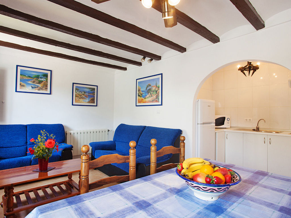 2-Zimmer-Wohnung, ca. 40 m². Wohnraum mit Sitzcouch, Essplatz und Küchenzeile (4 Ceranfelder, Mikrowelle/Grill, Kühl-/Gefrierkombination, Kaffeemaschine, Wasserkocher, Toaster). Zweibettzimmer. Dusche/WC. Balkon oder Terrasse mit Gartenmöbeln. AA-630
