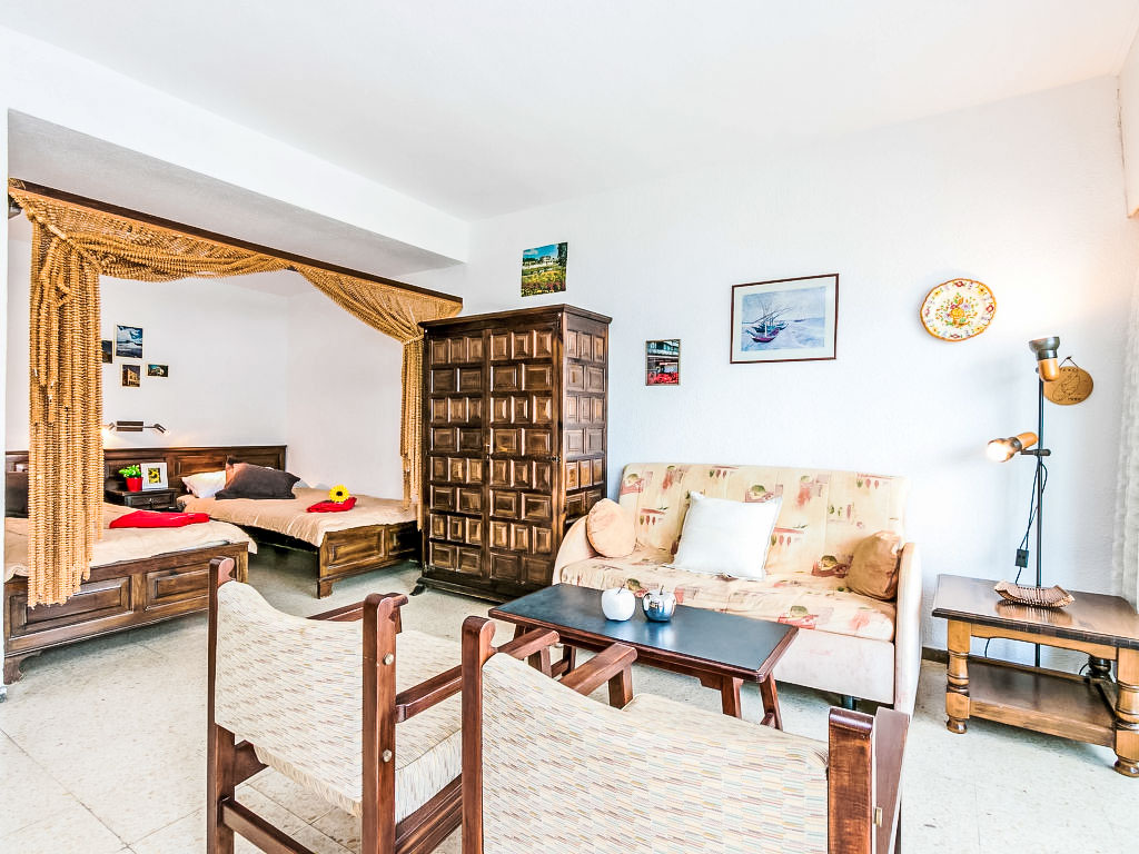 2-Zimmer-Wohnung 42 m2 im 5. Stock. Zweckmässig und rustikal eingerichtet: offenes Wohn-/Schlafzimmer mit Vorhang mit 2 Betten (90 cm, Länge 190 cm). Ausgang zur Veranda. 1 Zimmer mit 2 Betten (90 cm, Länge 190 cm). Offene Küche (Backofen, 4 Glaskeramikherd Platten, Mikrowelle). Dusche/WC. Terrasse 10 m2. Balkonmöbel. Seitliche Sicht auf das Meer. Zur Verfügung: Internet (Wireless LAN, gratis). Bitte beachten: Kühlschrank ohne Gefrierfach. TV nur DE, FR. HUTG006594