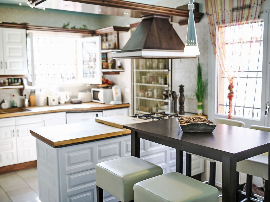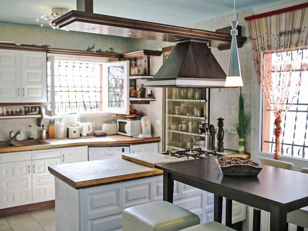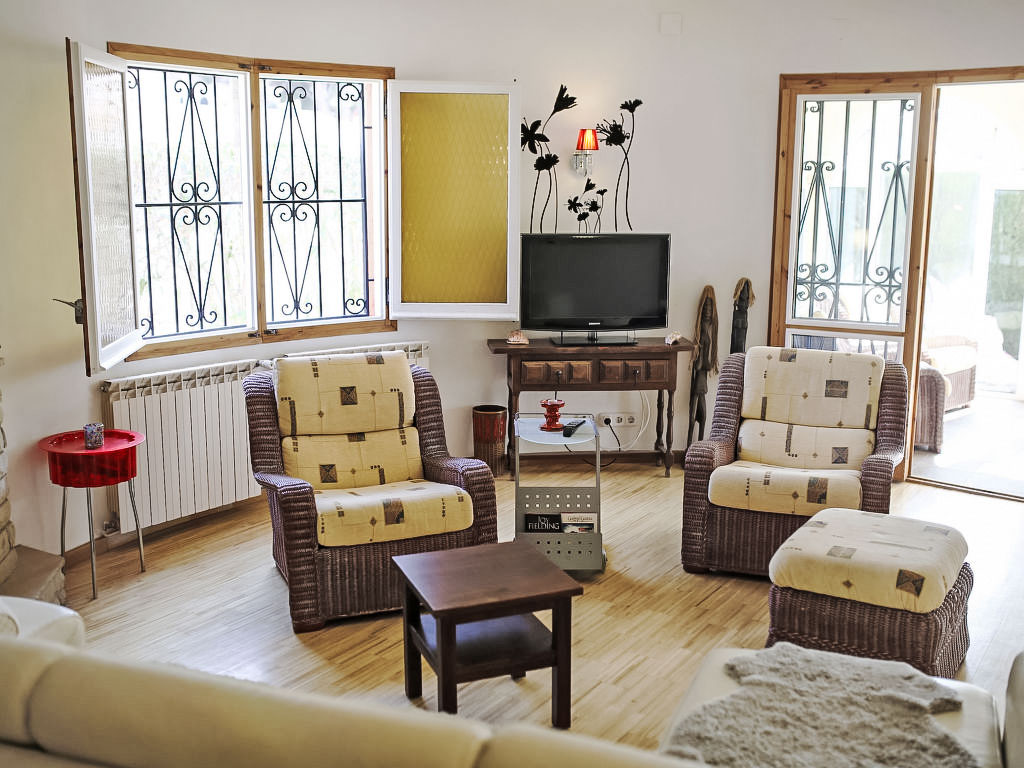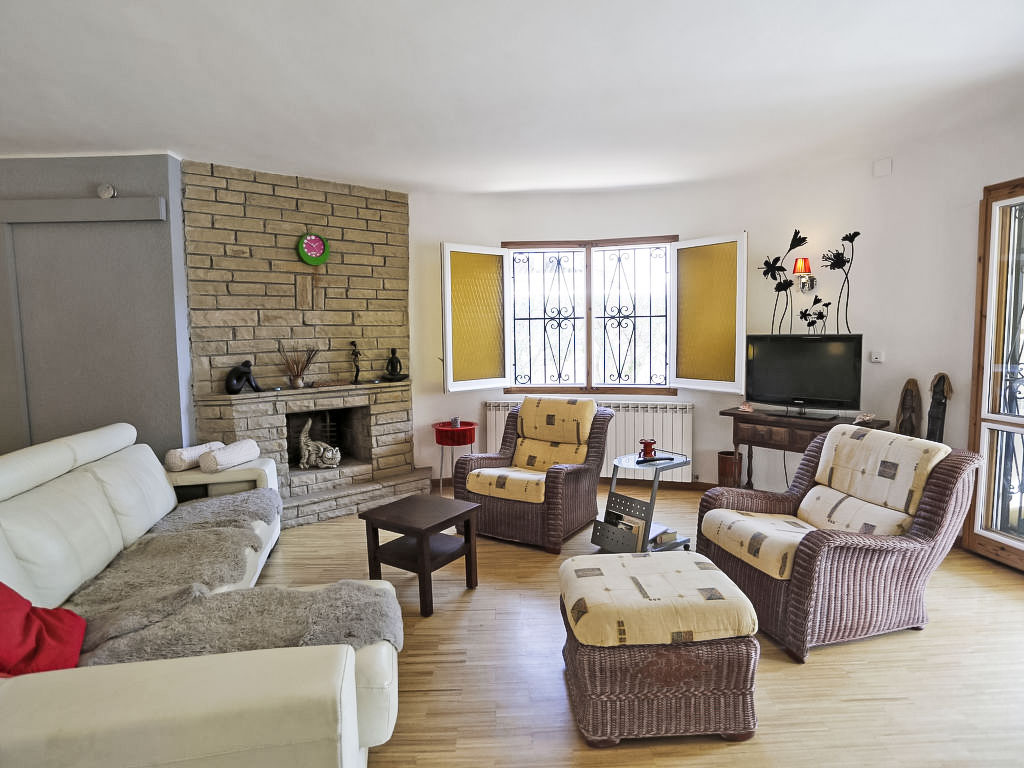 "Torre del Sol", 5-Zimmer-Haus 157 m2. Hell, teilweise renoviert, komfortabel und geschmackvoll eingerichtet: Wohn-/Esszimmer mit Wintergarten mit Digital-TV und Stereoanlage. Ausgang zum Gartensitzplatz. 1 Zimmer mit 1 franz. Bett (180 cm, Länge 200 cm), Klimaanlage. 1 Zimmer mit 1 franz. Bett (145 cm, Länge 190 cm), Klimaanlage. Küche (4 Kochplatten, Backofen, Geschirrspüler, Gasherd, Toaster, Wasserkocher, Mikrowelle, elektrische Kaffeemaschine) mit Bar. Bad oder Dusche/WC. Obergeschoss: Wohnzimmer mit Klimaanlage. 1 Zimmer mit 1 franz. Bett (160 cm, Länge 190 cm), Klimaanlage. Wohnküche (4 Glaskeramikherd Platten, Mikrowelle, elektrische Kaffeemaschine, Kapseln für die Kaffeemaschine (Senseo)). Dusche/WC. Komfortable Einrichtung im Landhausstil. Terrassenmöbel, Gartengrill, Liegestühle (2). Sicht auf den Garten und die Ortschaft. Zur Verfügung: Waschmaschine, Wäschetrockner, Kinderhochstuhl, Babybett bis 3 Jahre. Internet (DSL/LAN). Bitte beachten: Nichtraucher-Haus. HUTT-012360