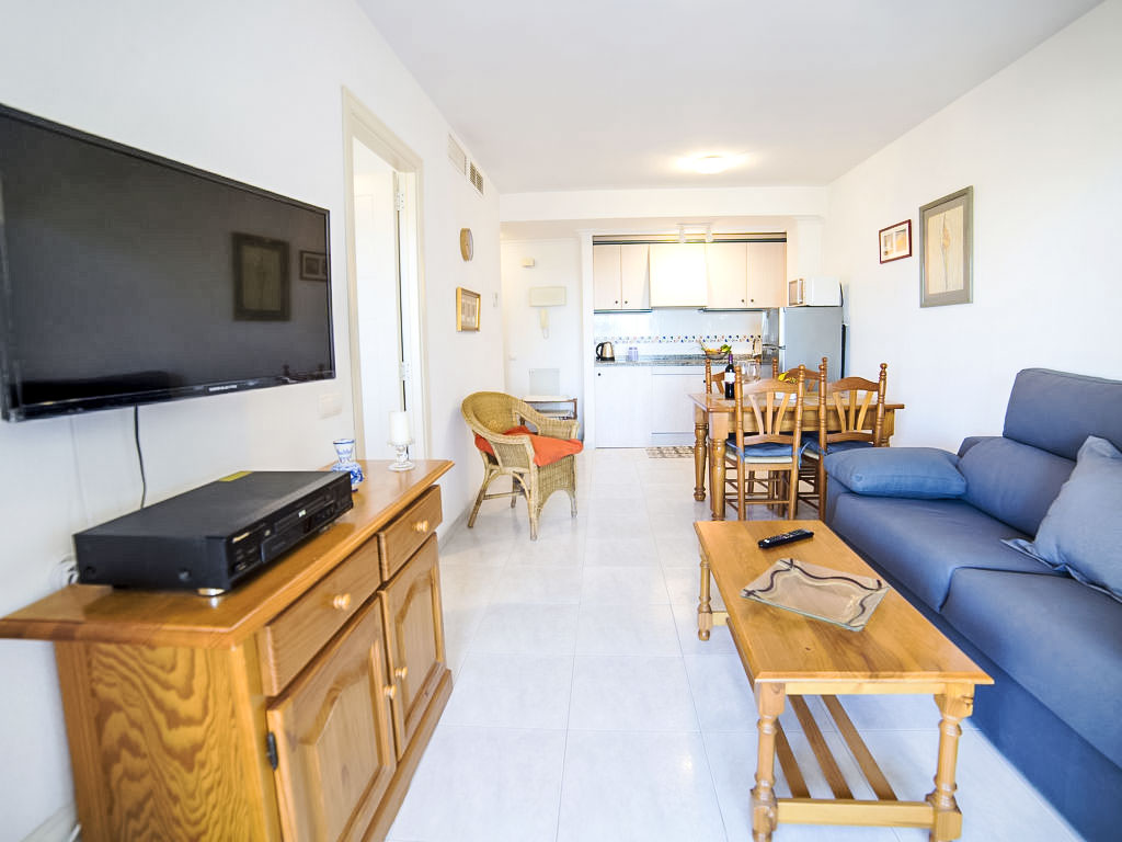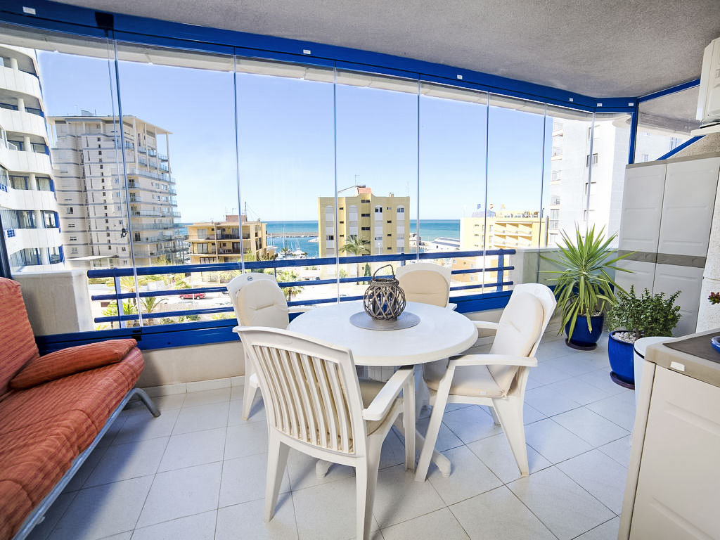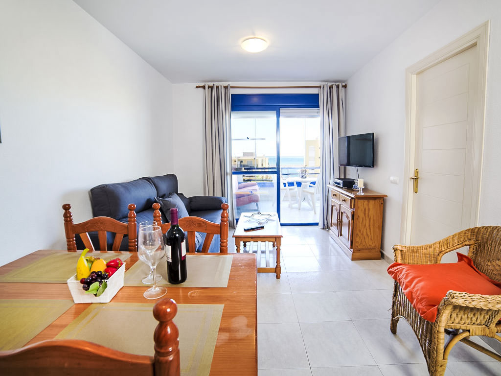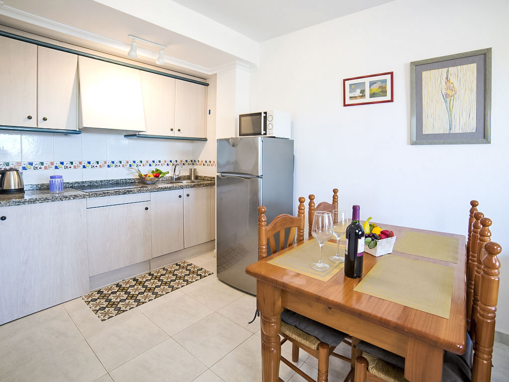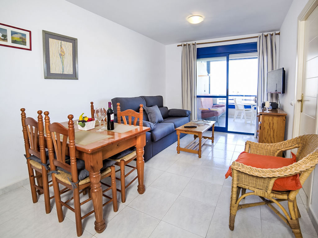 "Turquesa Beach 05", 2-Zimmer-Wohnung 37 m2 im 5. Stock. Objekt geeignet für 2 Erwachsene + 2 Kinder. Zweckmässig und komfortabel eingerichtet: offenes Wohn-/Esszimmer mit 1 Diwanbett, Digital-TV, Klimaanlage und Warmluftheizung. Ausgang zur Terrasse. 1 Zimmer mit 2 Betten, Klimaanlage und Warmluftheizung. Offene Küche (3 Kochplatten, Mikrowelle). Bad/WC. Klimaanlage, Warmluftheizung. Terrasse 12 m2. Schöne Sicht auf das Meer und den Hafen. Zur Verfügung: Waschmaschine. Internet (Wireless LAN, gratis). Parkplatz Nr. 32. AT-465052-A