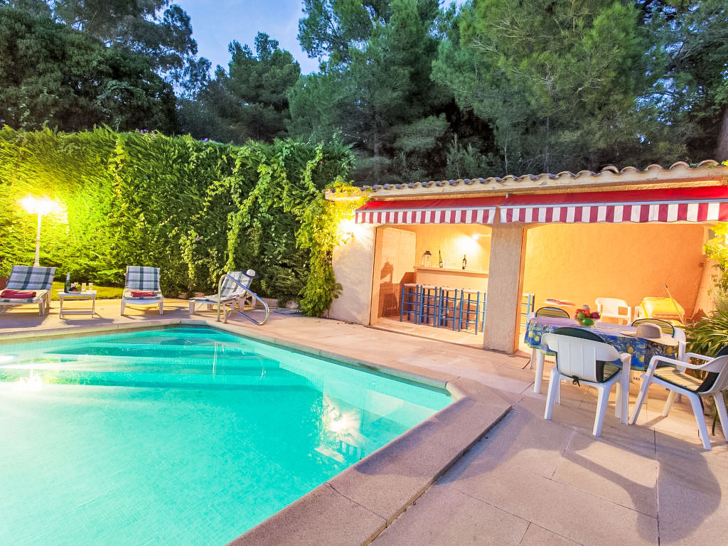 "Chez Noux", 4-Zimmer-Villa 220 m2. Geschmackvoll eingerichtet: Wohn-/Esszimmer mit Sat-TV und Internationale TV-Sender (Flachbildschirm). Ausgang zum Gartensitzplatz, zum Schwimmbad. 2 Zimmer, jedes Zimmer mit 2 Betten (90 cm, Länge 190 cm). 1 Zimmer mit 1 franz. Bett (200 cm, Länge 200 cm). Küche (4 Kochplatten, Backofen, Geschirrspüler, Toaster, Wasserkocher, Mikrowelle, Tiefkühler, elektrische Kaffeemaschine). Bad/Bidet/WC, Dusche/WC. Grosse Terrasse, Gartensitzplatz. Terrassenmöbel, Gartengrill, Liegestühle, Loggia. Eingeschränkte Fernsicht auf das Meer und die Landschaft. Zur Verfügung: Waschmaschine. Internet (Wireless LAN, gratis). Geeignet für Familien. HUTG038972