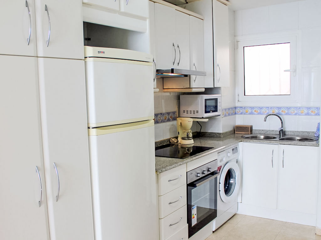 "Torre Principado", 1-Zimmer-Studio 35 m2, Ostlage. Objekt geeignet für 2 Erwachsene + 1 Kind. Hell, zweckmässig und komfortabel eingerichtet: Wohn-/Esszimmer mit 1 Diwanbett und Digital-TV. Schlafnische mit 2 Betten. Kochnische (Backofen, 4 Glaskeramikherd Platten, Mikrowelle, Tiefkühler, elektrische Kaffeemaschine). Bad/WC. Sehr schöne Sicht auf das Meer. Zur Verfügung: Waschmaschine, Bügeleisen, Haartrockner. Internet (Wireless LAN, gratis). 1 kleines Haustier/Hund erlaubt. AT322658BM
