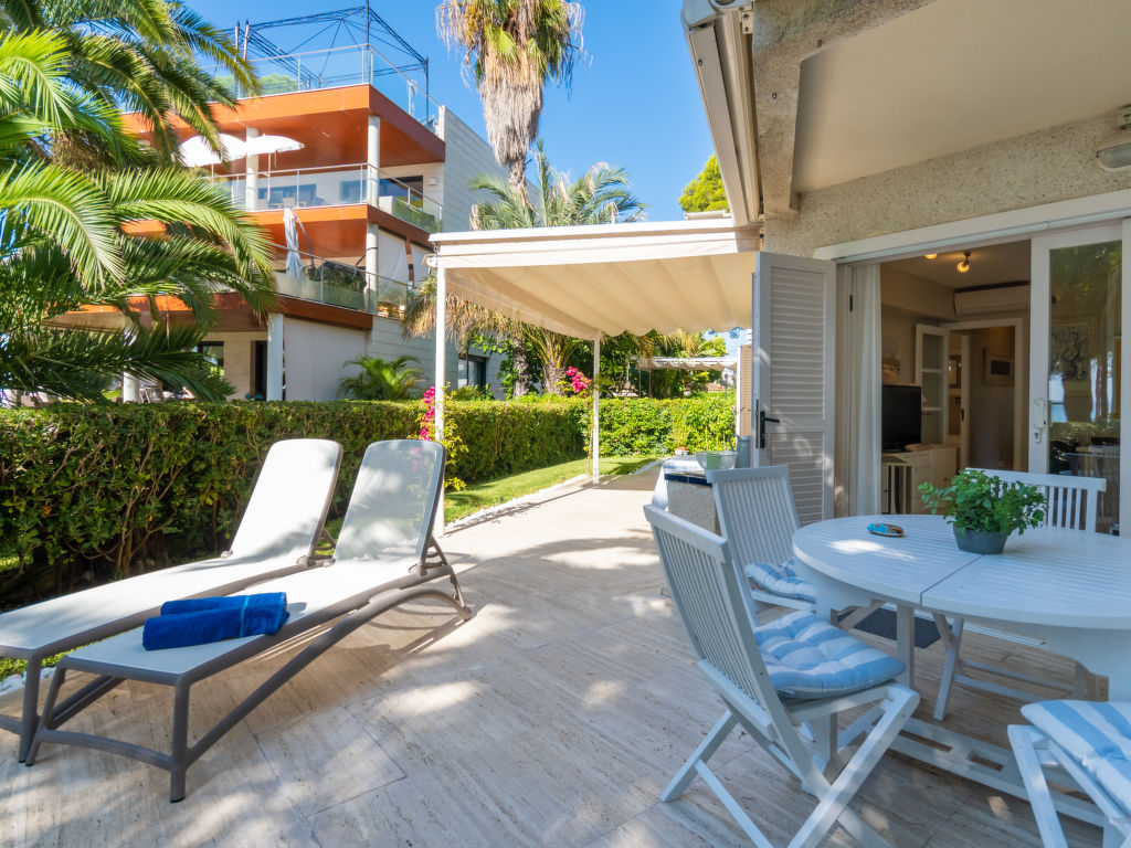 "Minerva Sea Views", 3-Zimmer-Wohnung 80 m2, im ebenerdigen Untergeschoss. Objekt geeignet für 4 Erwachsene. Hell, sehr komfortabel und geschmackvoll eingerichtet: Wohn-/Esszimmer mit Schiebetür, Panoramafenster mit Esstisch, TV, Flachbildschirm, Radio, DVD, Klimaanlage und Warmluftheizung. Ausgang zum Gartensitzplatz. 1 Doppelzimmer mit 1 franz. Bett, Bad/Dusche/Bidet/WC, TV, Flachbildschirm, Klimaanlage und Warmluftheizung. 1 Doppelzimmer mit Panoramafenster mit 2 Betten (90 cm), Ventilator. Ausgang zum Gartensitzplatz. Kleine Küche (Backofen, Geschirrspüler, 3 Glaskeramikherd Platten, Toaster, Wasserkocher, Mikrowelle, Tiefkühler, elektrische Kaffeemaschine) mit Bar. Bad/Dusche/WC. Grosser Gartensitzplatz, Rasen, Laube. Terrassenmöbel, Liegestühle (2). Sehr schöne Sicht auf das Meer. Zur Verfügung: Waschmaschine, Bügeleisen, Kinderhochstuhl, Haartrockner. Internet (Wireless LAN, gratis). Geeignet für Familien. L12E10104