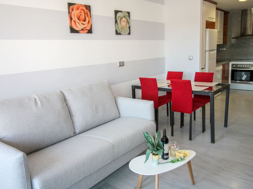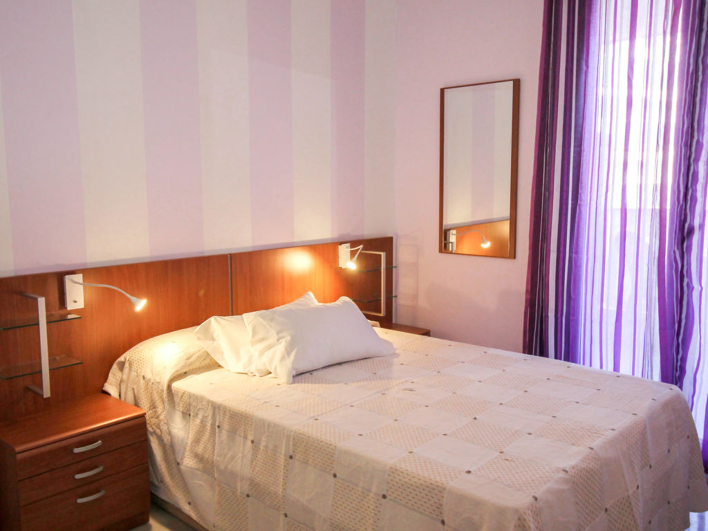 "Elegance", 2-Zimmer-Wohnung 51 m2 im 9. Stock. Geräumig und hell, zweckmässig und komfortabel eingerichtet: Wohn-/Esszimmer mit 1 Diwanbett (138 cm, Länge 190 cm), Digital-TV und Klimaanlage. Ausgang zur Terrasse. 1 Zimmer mit 1 franz. Bett (135 cm, Länge 180 cm), Klimaanlage. Kochnische (Backofen, Geschirrspüler, 4 Glaskeramikherd Platten, Toaster, Wasserkocher, Mikrowelle, Tiefkühler, elektrische Kaffeemaschine). Bad/Bidet/WC. Terrasse 12 m2. Terrassenmöbel. Sicht auf das Schwimmbad und die Ortschaft. Zur Verfügung: Waschmaschine, Bügeleisen, Haartrockner. Parkplatz Nr. 157 (überdacht). 1 kleines Haustier/Hund erlaubt. AT476791A