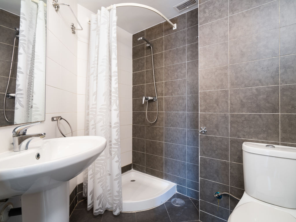 "Apartamento Olivo", 3-Zimmer-Wohnung 50 m2. Hell, zweckmässig und modern eingerichtet: Wohn-/Esszimmer mit Internationale TV-Sender, Flachbildschirm und Klimaanlage. Ausgang zum Balkon. 1 Zimmer mit 1 franz. Bett, Dusche/WC und Klimaanlage. 1 Zimmer mit 2 Betten und Klimaanlage. Offene Küche (Backofen, 4 Glaskeramikherd Platten, Tiefkühler, elektrische Kaffeemaschine). Bad/WC. Balkon. Balkonmöbel. Zur Verfügung: Waschmaschine, Bügeleisen. Bitte beachten: geeignet für Familien. Nichtraucher-Unterkunft. 1 Haustier/Hund erlaubt. AT-475356A