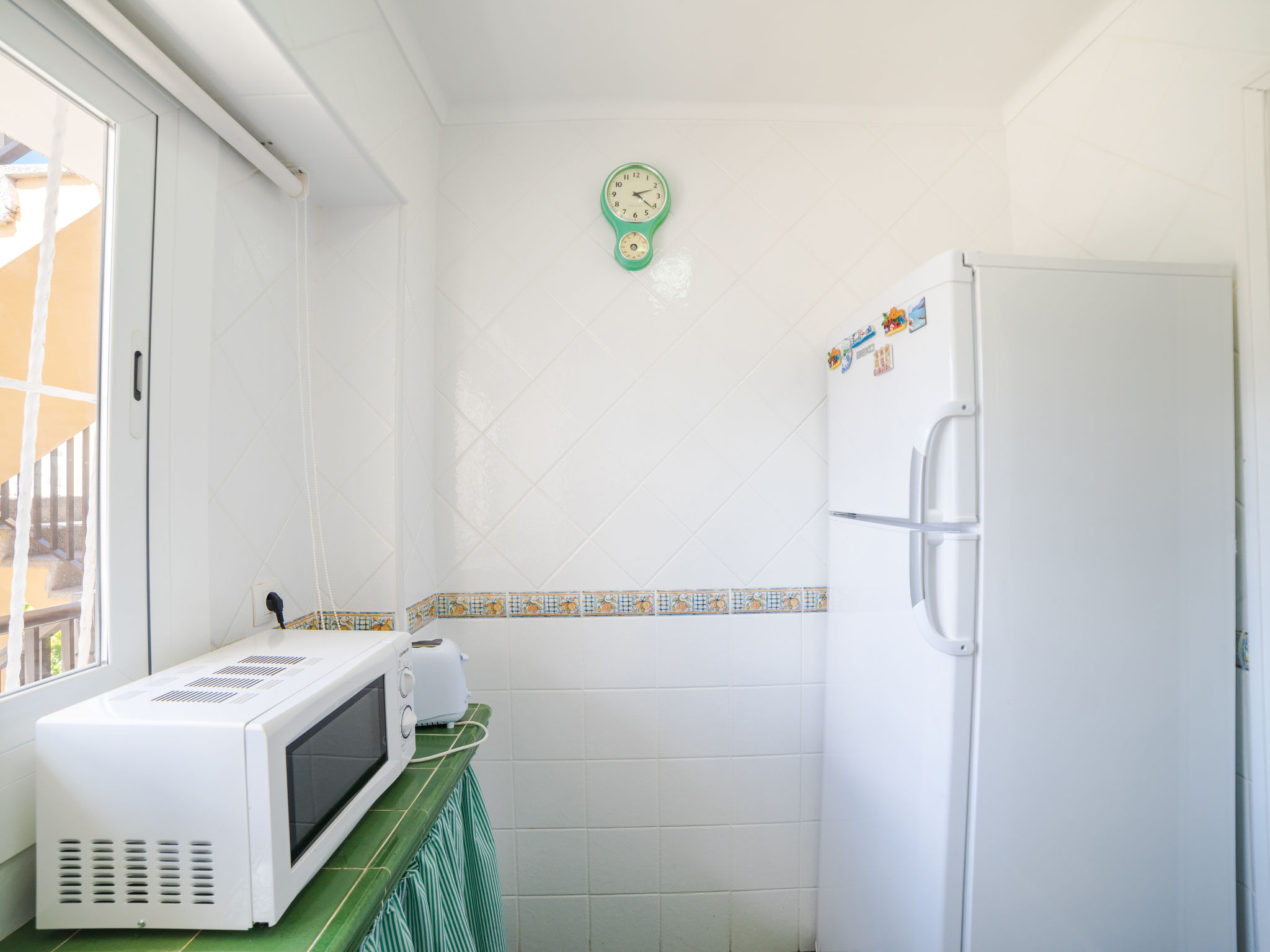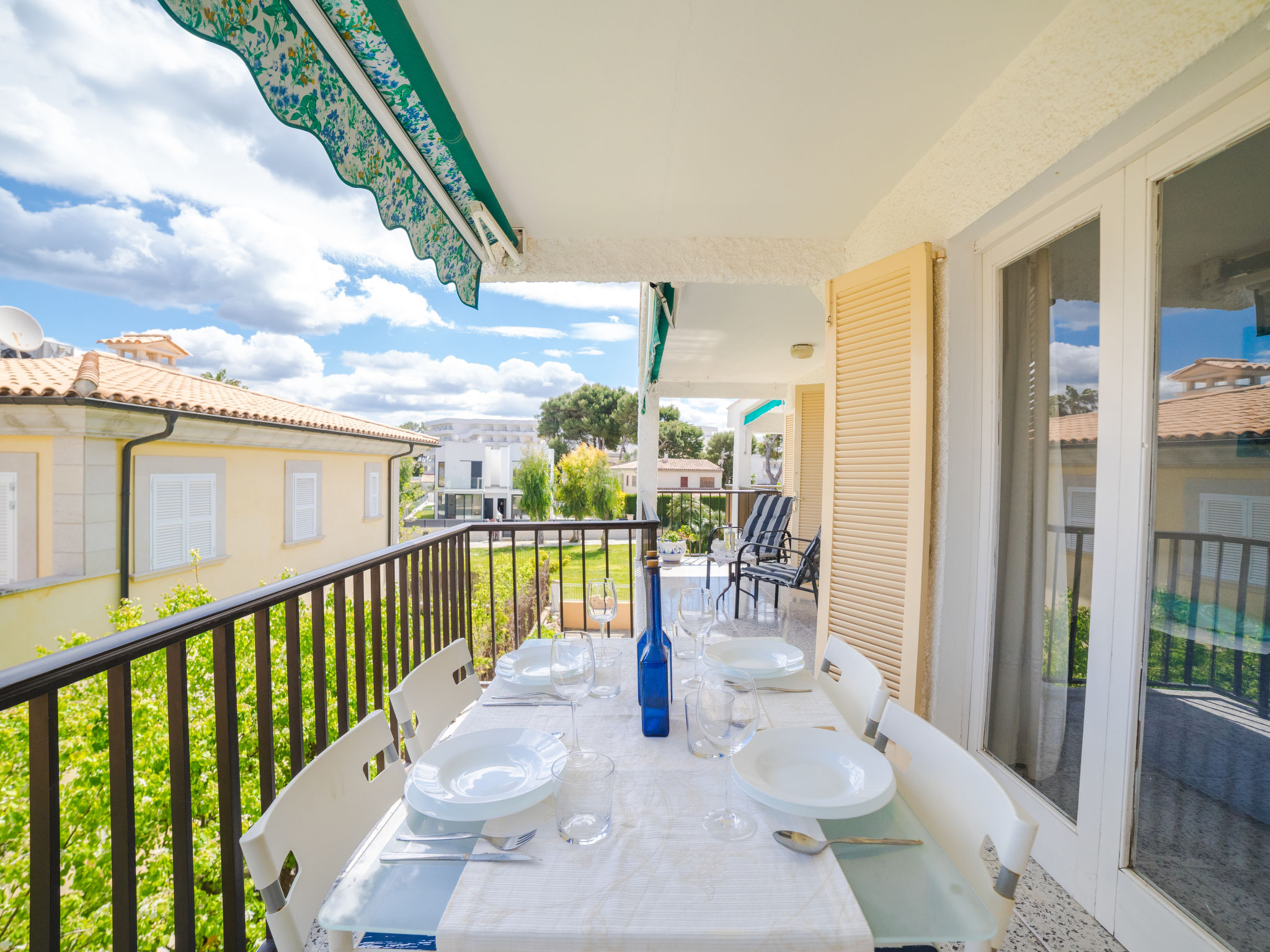 "Los Girasoles", 3-Zimmer-Wohnung 70 m2 im 2. Stock. Objekt geeignet für 4 Erwachsene + 2 Kinder. Geräumig und hell, komfortabel und gemütlich eingerichtet: grosses Wohn-/Esszimmer mit Panoramafenster mit 1 Doppeldiwanbett (135 cm, Länge 190 cm), Esstisch, TV, Sat-TV und Flachbildschirm. Ausgang zur Terrasse. 1 grosses Doppelzimmer mit Panoramafenster mit 1 franz. Bett (150 cm, Länge 190 cm), Klimaanlage und Warmluftheizung. Ausgang zur Terrasse. 1 Doppelzimmer mit Panoramafenster mit 1 Ausziehbett (2 Pers. 2 x 90 cm, Länge 190 cm), Klimaanlage und Warmluftheizung. Ausgang zur Terrasse. Küche (Backofen, 3 Glaskeramikherd Platten, Mikrowelle, Tiefkühler, elektrische Kaffeemaschine). Bad/Dusche/WC. Grosse Terrasse 20 m2, Laube. Terrassenmöbel. Eingeschränkte Sicht auf das Meer. Zur Verfügung: Waschmaschine, Bügeleisen, Kinderhochstuhl, Babybett, Haartrockner. Internet (Wireless LAN, gratis). Geeignet für Familien. L12EM194