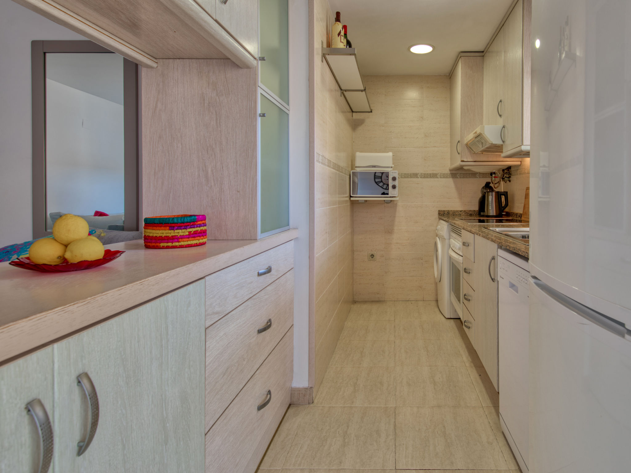 "Residencial Roma", 4-Zimmer-Wohnung auf 2 Stockwerken. Geräumig und hell, schön und gemütlich eingerichtet: Wohn-/Esszimmer mit Digital-TV, Klimaanlage und Warmluftheizung. Ausgang zur Terrasse. 1 Zimmer mit 1 franz. Bett (140 cm, Länge 190 cm). Offene Küche (Backofen, Geschirrspüler, 4 Glaskeramikherd Platten, Mikrowelle, Tiefkühler, elektrische Kaffeemaschine). Dusche/WC. Obergeschoss: 1 Zimmer mit 1 franz. Bett (140 cm, Länge 190 cm), Klimaanlage und Warmluftheizung. Ausgang zur Terrasse. 1 Zimmer mit 2 Betten, Klimaanlage und Warmluftheizung. Ausgang zur Terrasse. Bad/WC. 2 grosse Terrassen. Terrassenmöbel, Liegestühle. Zur Verfügung: Waschmaschine, Bügeleisen, Haartrockner. Internet (Wireless LAN, gratis). Garage Nr. 2. AT-459110-A