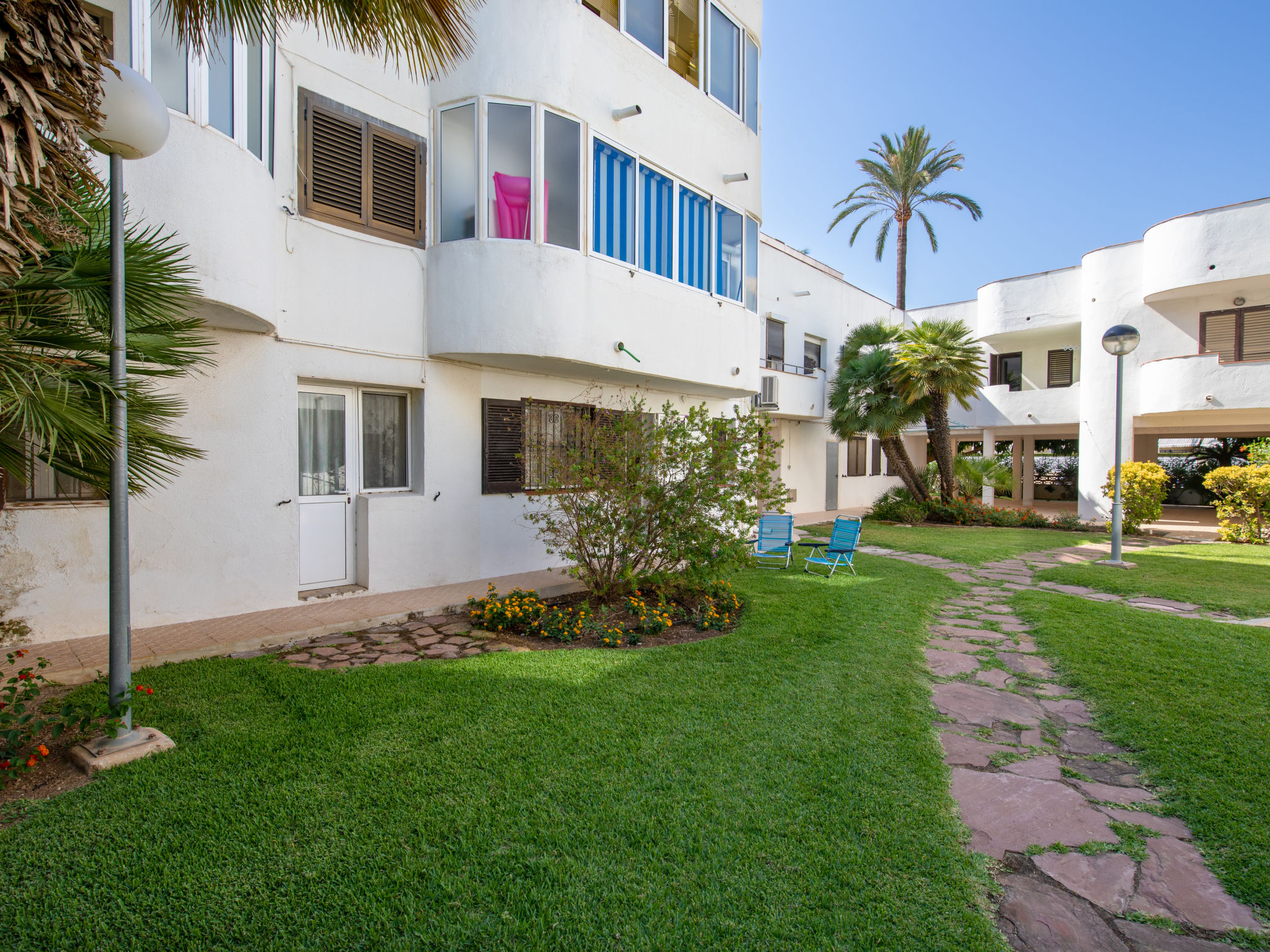 Schöne, komfortable Residenz "Albaranas", renoviert im Jahre 2019. 400 m vom Zentrum von Dénia, 50 m vom Meer, 50 m vom Strand. Zur Mitbenutzung: Grundstück (eingezäunt) mit Rasen und Blumen. Aussendusche, öffentliches Parkhaus. Einkaufsgeschäft, Supermarkt 50 m, Restaurant, Bar, Fußgängerzone, Bushaltestelle 10 m, Sandstrand 50 m. Sporthafen 500 m, Jacht-Hafen 1 km, Surfschule 200 m, Tennis 500 m. Der Besitzer akzeptiert keine Jugendgruppen.