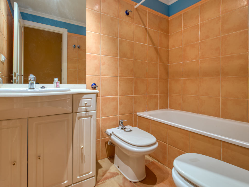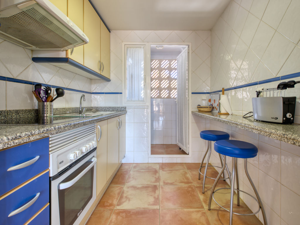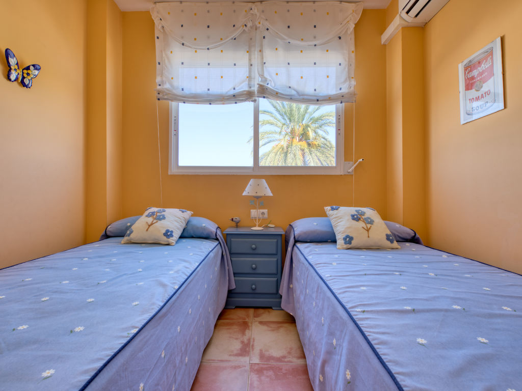 "Playasol II", 3-Zimmer-Wohnung 70 m2. Einfach und schön eingerichtet: Wohn-/Esszimmer mit Digital-TV, Klimaanlage und Warmluftheizung. Ausgang zur Terrasse. 1 Zimmer mit 1 franz. Bett (160 cm, Länge 190 cm), Bad/Bidet/WC, Klimaanlage und Warmluftheizung. 1 Zimmer mit 2 Betten (90 cm, Länge 180 cm). Küche (Backofen, 4 Glaskeramikherd Platten, Mikrowelle, Tiefkühler, elektrische Kaffeemaschine). Dusche/WC. Grosse Terrasse 20 m2. Terrassenmöbel. Zur Verfügung: Waschmaschine, Bügeleisen, Kinderhochstuhl, Babybett, Haartrockner. Internet (Wireless LAN, gratis). Parkplatz Nr. 15. Bitte beachten: 1 Haustier/Hund erlaubt. TV nur ES. R0000000001