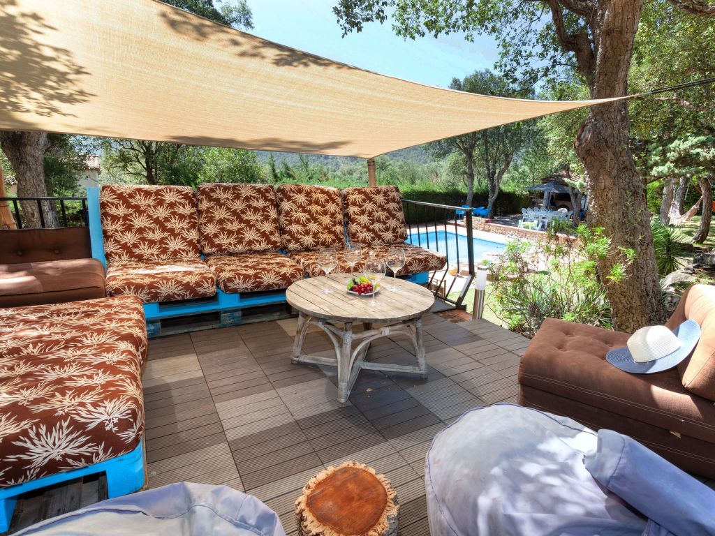 "La Plaza", 5-Zimmer-Haus 150 m2. Wohn-/Esszimmer mit Digital-TV. Ausgang zum Garten. 1 Zimmer mit 1 franz. Bett (150 cm, Länge 190 cm). Küche (4 Kochplatten, Backofen, Geschirrspüler, Toaster, Wasserkocher, Mikrowelle, Tiefkühler, elektrische Kaffeemaschine). Bad/WC, Doppelwaschbecken. Obergeschoss: 1 Zimmer mit 2 Betten (90 cm, Länge 190 cm). 1 Zimmer mit 1 franz. Bett (160 cm, Länge 190 cm), Dusche/WC. 1 Zimmer mit 1 x 2 Etagenbetten (90 cm, Länge 190 cm). Grosse Terrasse. Terrassenmöbel, Gartengrill, Liegestühle (4). Zur Verfügung: Waschmaschine, Bügeleisen, Kinderhochstuhl, Babybett, Haartrockner. Internet (Wireless LAN, gratis). Parkplatz beim Haus. Bitte beachten: geeignet für Familien. Nichtraucher-Haus. HUTG052756