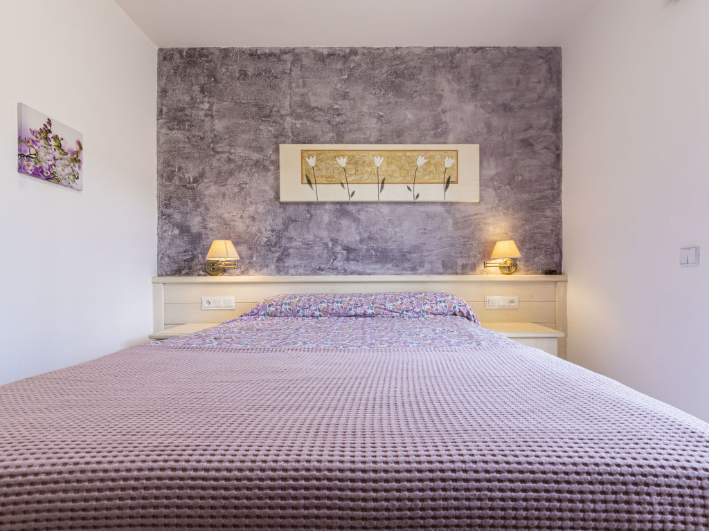 "Llaberia", 4-Zimmer-Reihenhaus 111 m2. Objekt geeignet für 4 Erwachsene + 4 Kinder. Zweckmässig und komfortabel eingerichtet: Wohn-/Esszimmer mit Digital-TV und Klimaanlage. Ausgang zur Terrasse. Küche (Backofen, Geschirrspüler, 3 Glaskeramikherd Platten, Toaster, Wasserkocher, Mikrowelle, elektrische Kaffeemaschine). Sep. WC. Unteres Geschoss: mit Dusche/WC. Obergeschoss: 1 Doppelzimmer mit 1 franz. Bett (140 cm, Länge 190 cm). 1 Zimmer mit 1 Doppeldiwanbett (130 cm, Länge 190 cm) mit Klimaanlage. Dusche/WC. 2. Obergeschoss: abgeschrägt 1 Zimmer mit 2 Betten (90 cm, Länge 190 cm), 1 franz. Bett (135 cm, Länge 190 cm), Klimaanlage. Terrasse. Terrassenmöbel, Gartengrill. Eingeschränkte Sicht auf das Schwimmbad. Zur Verfügung: Waschmaschine, Bügeleisen, Kinderhochstuhl, Babybett bis 2 Jahre, Haartrockner. Internet (Wireless LAN, gratis). Garage auf dem Grundstück (1 Auto). Bitte beachten: Nichtraucher-Haus, Parkplatz nur für kleine Wagen. Der ausgeschriebene Pool ist zur alleinigen Nutzung. HUTT011315