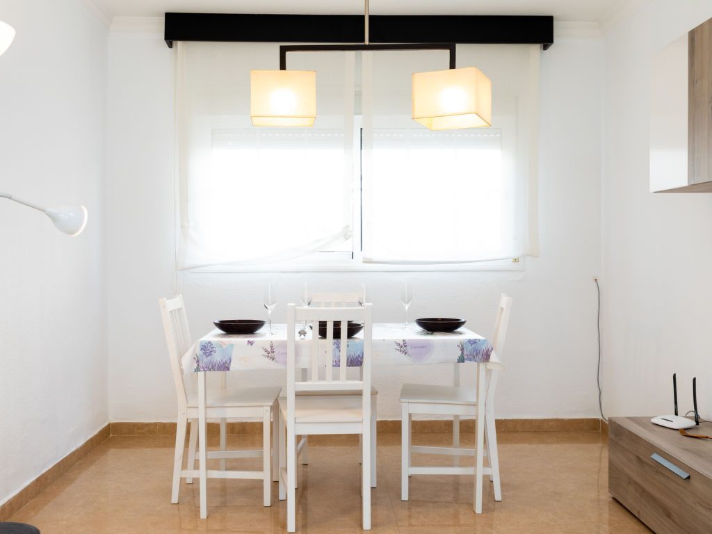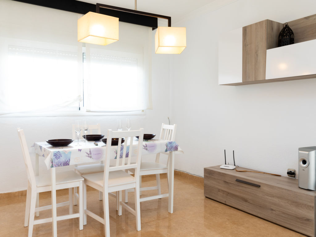 "Calle Marqués de sonora nº1", 3-Zimmer-Reihenhaus 110 m2 auf 2 Stockwerken, Ostlage. Objekt geeignet für 4 Erwachsene + 2 Kinder. Hell, renoviert im Jahre 2016, einfach und schön eingerichtet: Wohn-/Esszimmer, Richtung Osten mit TV. Ausgang zur Terrasse, Richtung Osten. Küche (Backofen, Geschirrspüler, 4 Glaskeramikherd Platten, Mikrowelle). Ausgang zur Terrasse. Sep. WC. Obergeschoss: 1 Zimmer mit 2 Betten (90 cm). 1 Zimmer mit 1 Bett (135 cm). 1 Zimmer mit begehbarer Kleiderschrank mit 1 Bett (150 cm). Bad/WC, Dusche/WC. Gartensitzplatz. Gartengrill. Zur Verfügung: Waschmaschine, Bügeleisen, Fliegengitter, Haartrockner. Internet (Wireless LAN, gratis). Bitte beachten: geeignet für Familien. TV nur ES. CTC-2019208359