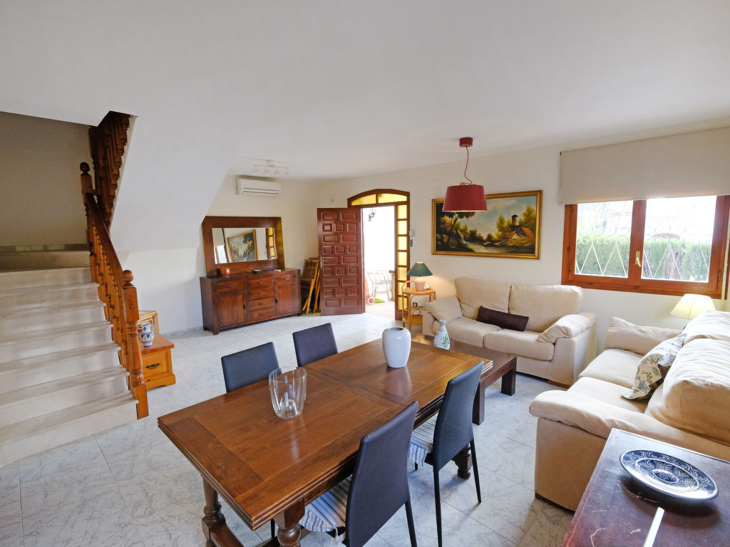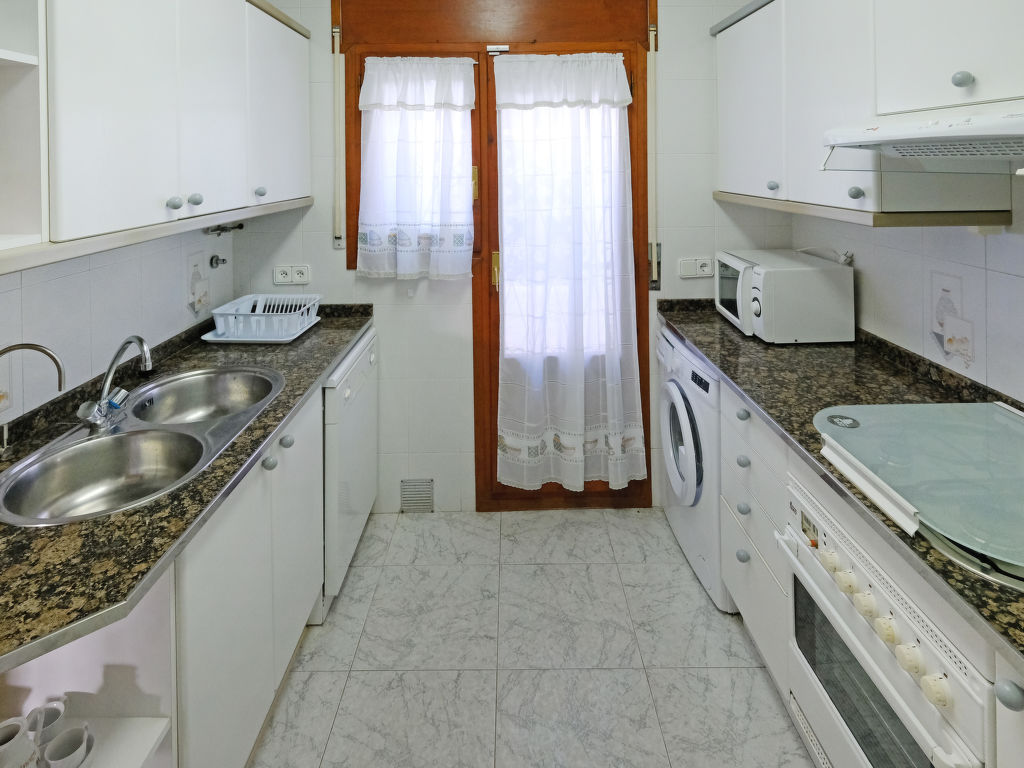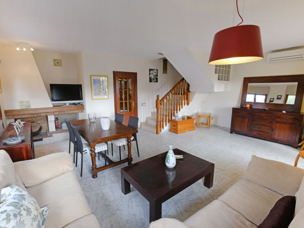 "Villa Aznar", 5-Zimmer-Reihenhaus 105 m2 auf 2 Stockwerken. Komfortabel und gemütlich eingerichtet: offenes Wohn-/Esszimmer mit Sat-TV, Digital-TV und Klimaanlage. Küche (4 Kochplatten, Backofen, Geschirrspüler, Toaster, Wasserkocher, Mikrowelle, elektrische Kaffeemaschine). Bad/Bidet/WC. Obergeschoss: 1 Zimmer mit 1 franz. Bett (180 cm), Klimaanlage. 2 Zimmer, jedes Zimmer mit 2 Betten (90 cm). 1 Zimmer mit 1 franz. Bett (140 cm). Bad/WC. Garten. Terrassenmöbel, Gartengrill. Zur Verfügung: Waschmaschine, Bügeleisen, Haartrockner. Internet (Wireless LAN, gratis). Bitte beachten: TV nur ES, DE, FR. HUTT003368