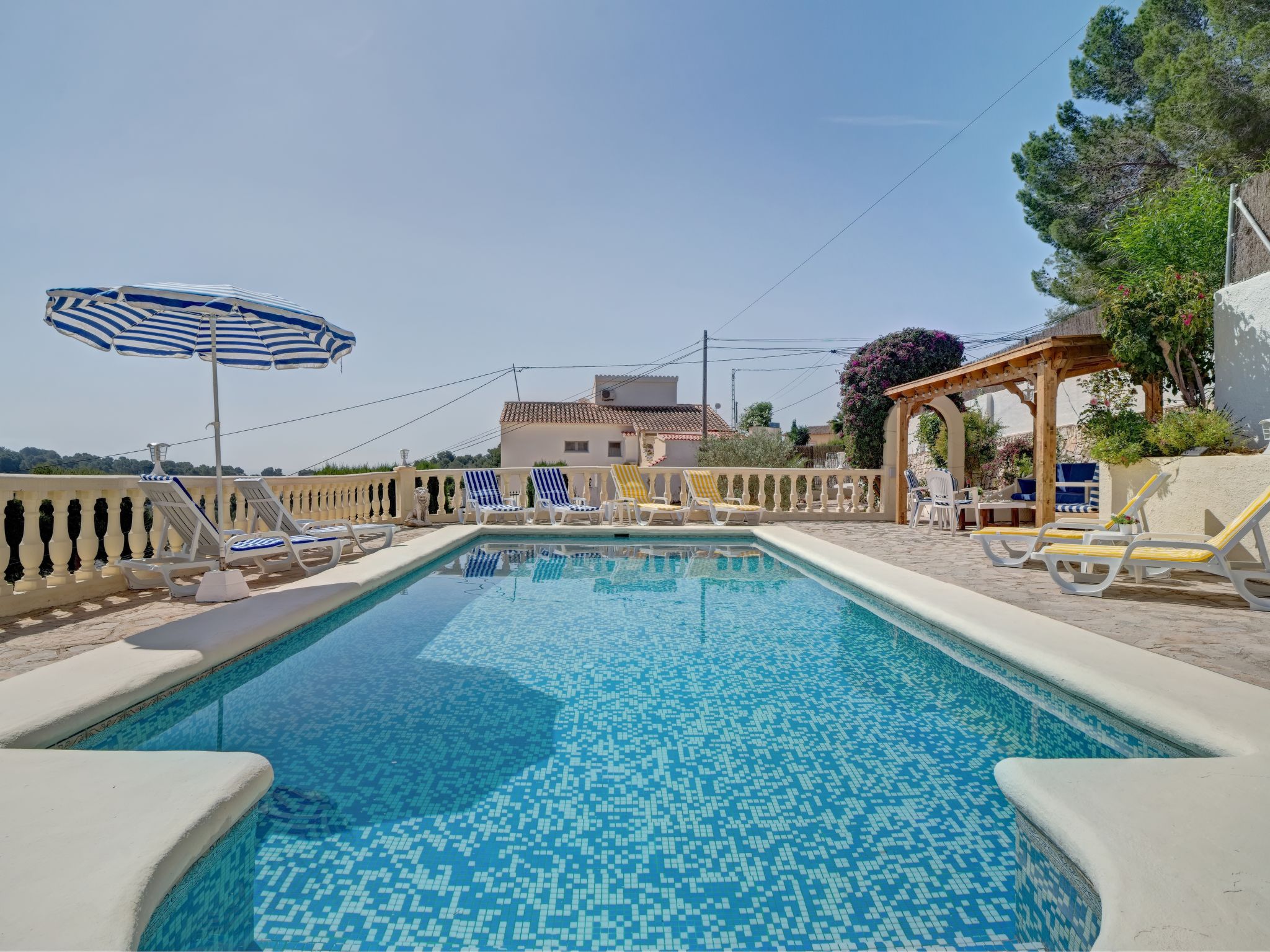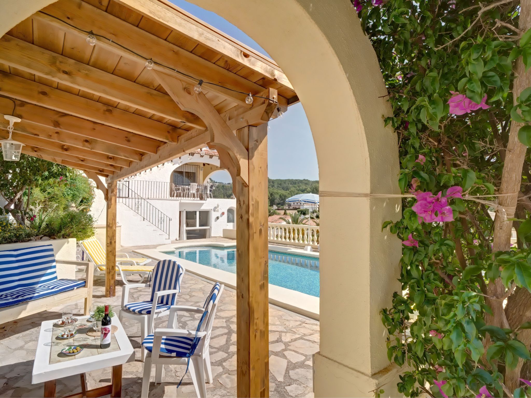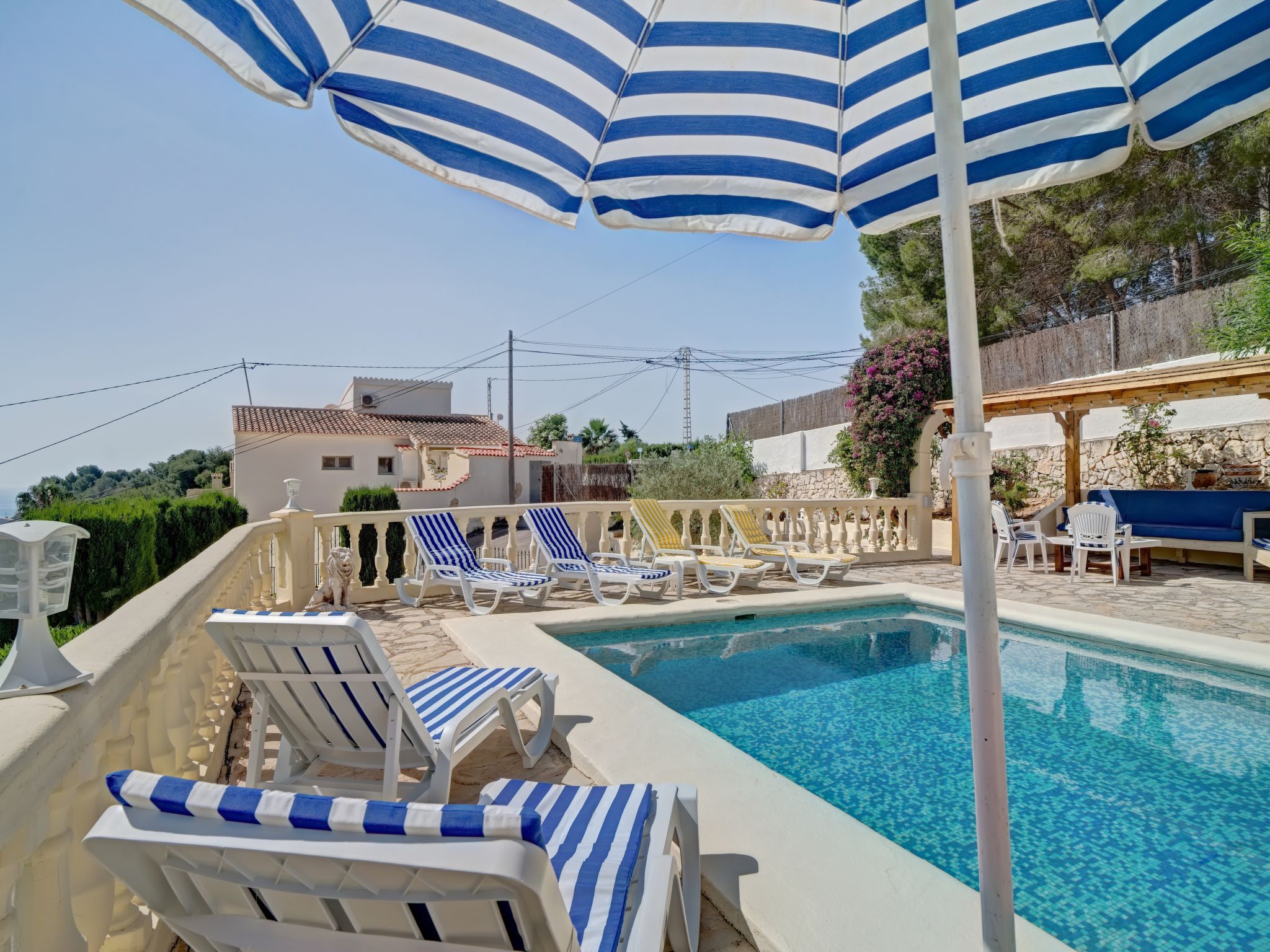 "La Repere", 5-Zimmer-Haus 282 m2 auf 2 Stockwerken. Geräumig und hell, komfortabel und gemütlich eingerichtet: Wohn-/Esszimmer mit Sat-TV und Ventilator. Ausgang zur Terrasse. 1 Zimmer mit 2 Betten und 1 Ausziehbett (1 Pers.), Klimaanlage und Ventilator. 1 Zimmer mit 1 franz. Bett, Dusche/WC, Sat-TV, Klimaanlage und Ventilator. Küche (4 Kochplatten, Backofen, Geschirrspüler, Mikrowelle, elektrische Kaffeemaschine). Bad/WC. Unteres Geschoss: Wohn-/Esszimmer mit 1 Doppeldiwanbett und Ventilator. Ausgang zur Terrasse, zum Schwimmbad. 1 Zimmer mit 2 Betten, Klimaanlage und Ventilator. Küche (Backofen, 4 Glaskeramikherd Platten). Dusche/WC. Grosse Terrasse, Laube. Terrassenmöbel, Gartengrill. Sicht auf das Meer und die Ortschaft. Zur Verfügung: Waschmaschine, Bügeleisen, Kinderhochstuhl, Babybett bis 2 Jahre, Haartrockner. Internet (Wireless LAN, gratis). Parkplatz beim Haus. Geeignet für Familien. 1 kleines Haustier/Hund erlaubt. AT-481401-A