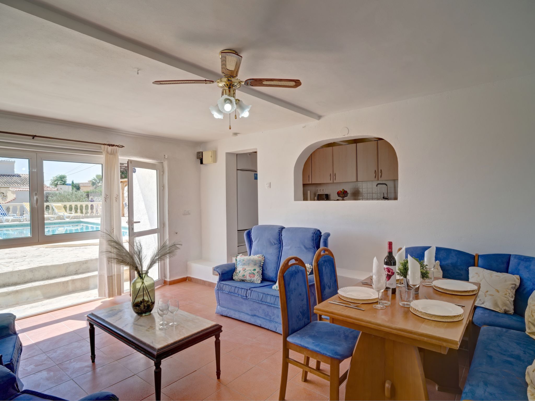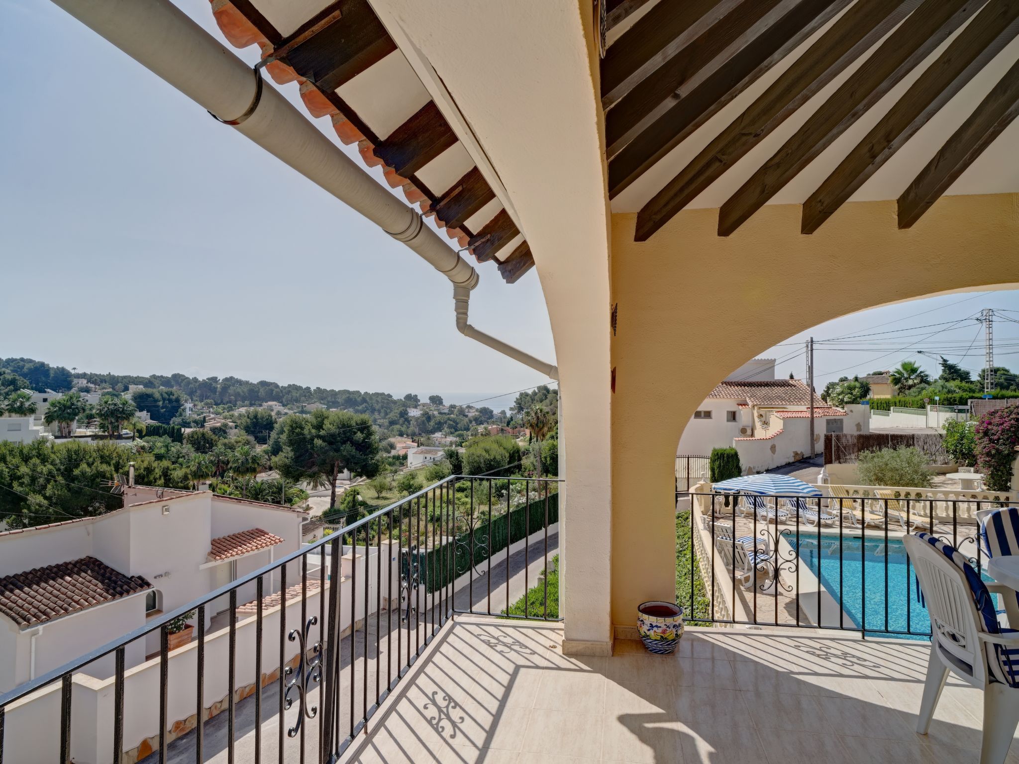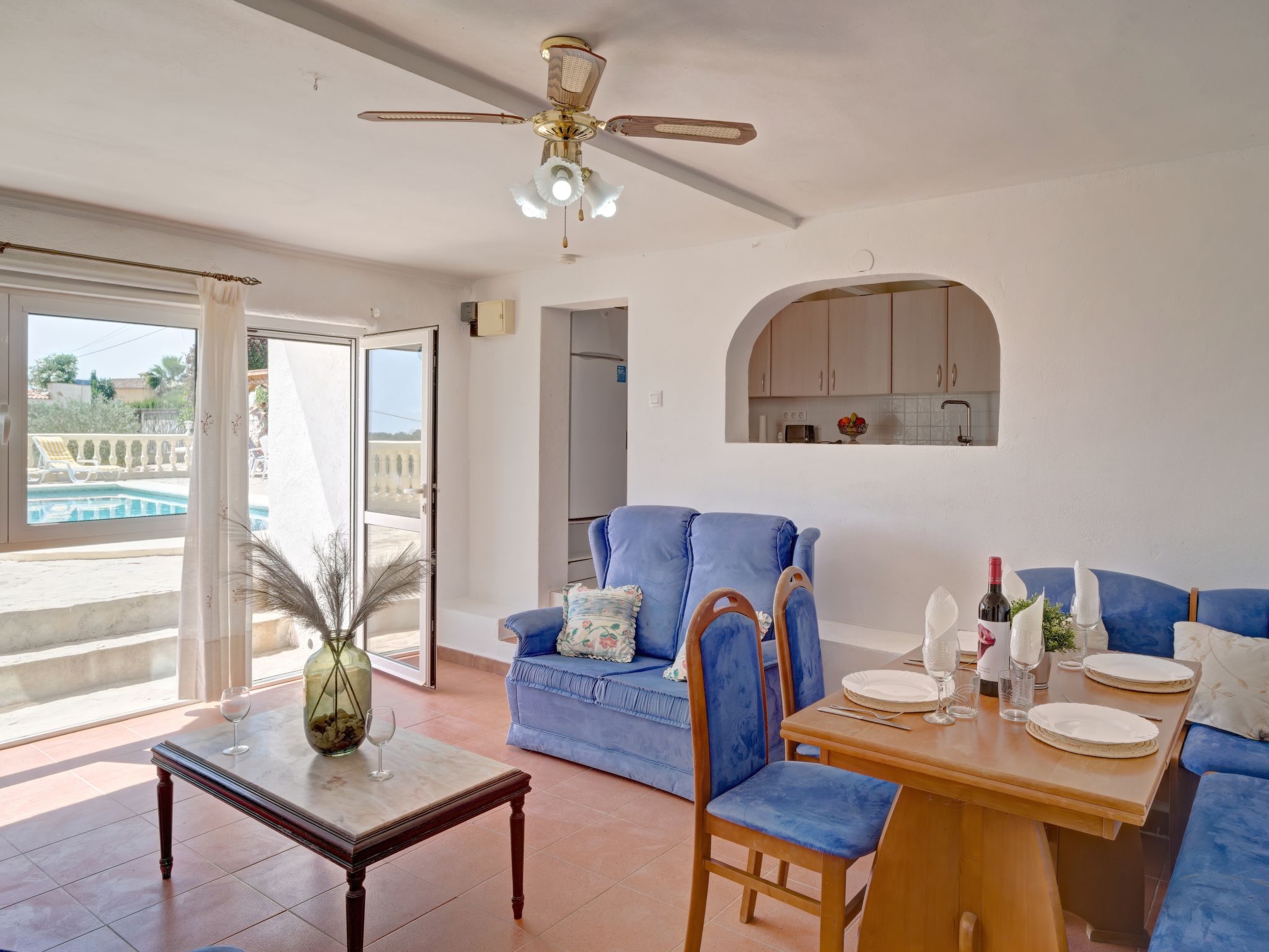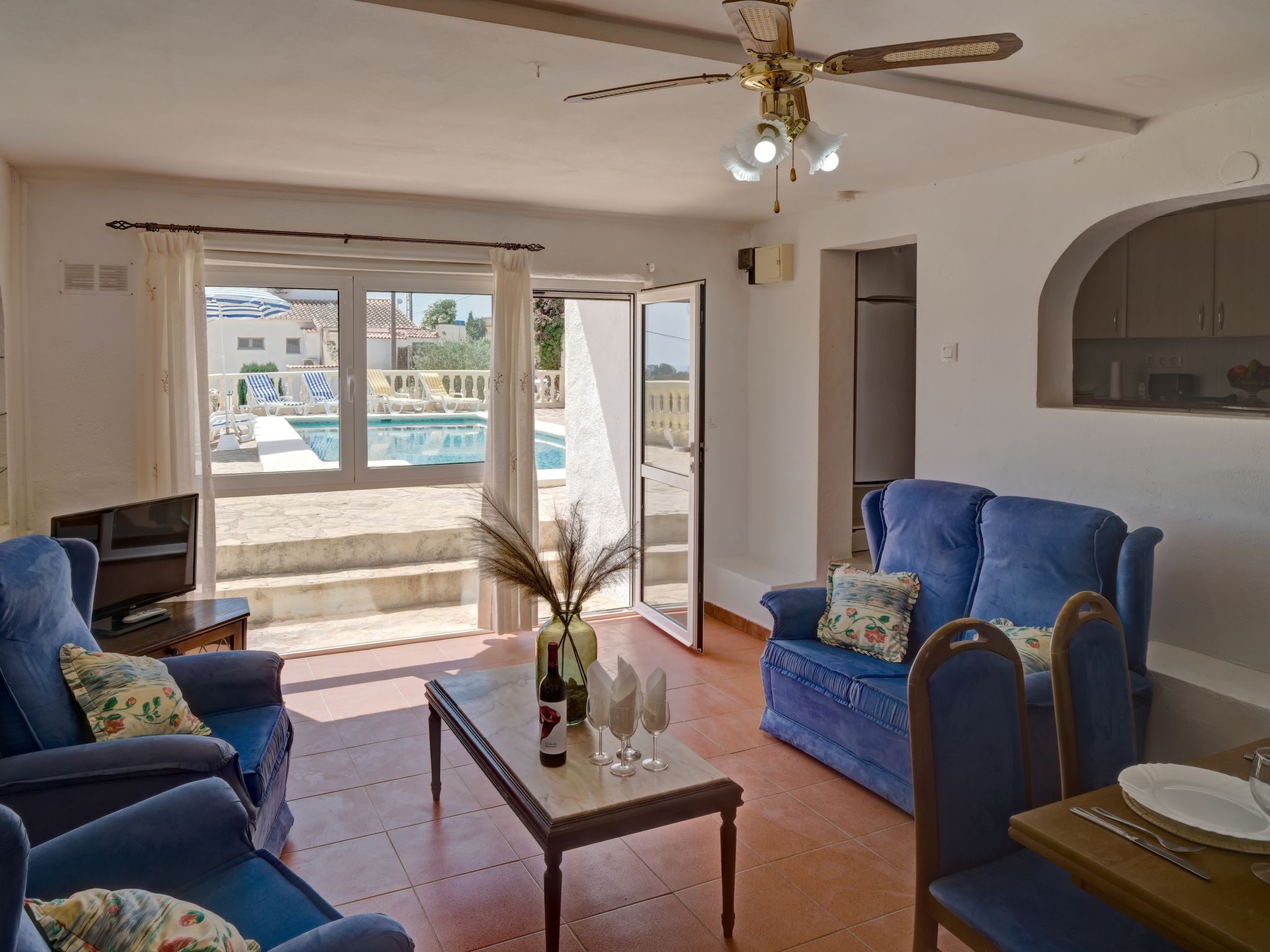 "La Repere", 5-Zimmer-Haus 282 m2 auf 2 Stockwerken. Geräumig und hell, komfortabel und gemütlich eingerichtet: Wohn-/Esszimmer mit Sat-TV und Ventilator. Ausgang zur Terrasse. 1 Zimmer mit 2 Betten und 1 Ausziehbett (1 Pers.), Klimaanlage und Ventilator. 1 Zimmer mit 1 franz. Bett, Dusche/WC, Sat-TV, Klimaanlage und Ventilator. Küche (4 Kochplatten, Backofen, Geschirrspüler, Mikrowelle, elektrische Kaffeemaschine). Bad/WC. Unteres Geschoss: Wohn-/Esszimmer mit 1 Doppeldiwanbett und Ventilator. Ausgang zur Terrasse, zum Schwimmbad. 1 Zimmer mit 2 Betten, Klimaanlage und Ventilator. Küche (Backofen, 4 Glaskeramikherd Platten). Dusche/WC. Grosse Terrasse, Laube. Terrassenmöbel, Gartengrill. Sicht auf das Meer und die Ortschaft. Zur Verfügung: Waschmaschine, Bügeleisen, Kinderhochstuhl, Babybett bis 2 Jahre, Haartrockner. Internet (Wireless LAN, gratis). Parkplatz beim Haus. Geeignet für Familien. 1 kleines Haustier/Hund erlaubt. AT-481401-A