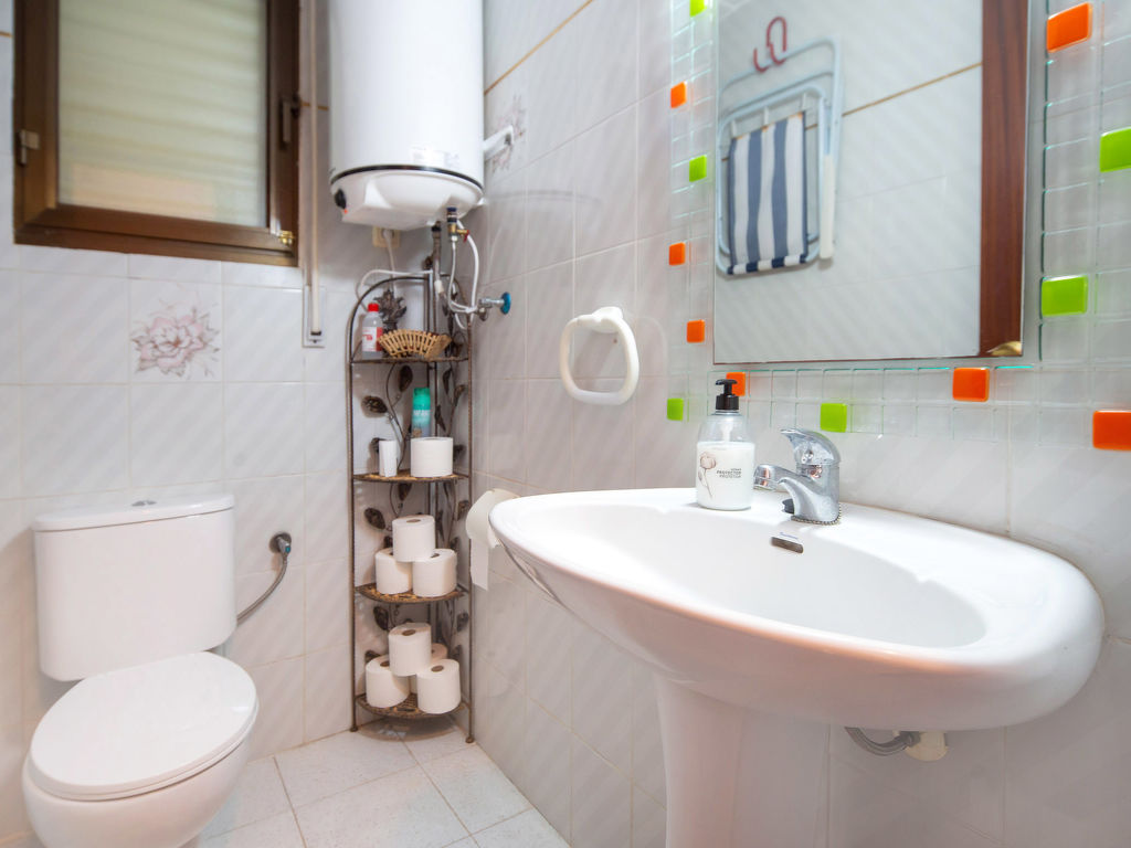 "Timon", 3-Zimmer-Wohnung 70 m2 auf 2 Stockwerken im 1. Stock. Zweckmässig eingerichtet: Wohn-/Esszimmer mit 1 Doppeldiwanbett, Digital-TV, Flachbildschirm und Klimaanlage. Ausgang zur Veranda. Offene Küche (Backofen, Geschirrspüler, 4 Glaskeramikherd Platten, Toaster, Mikrowelle, Tiefkühler, elektrische Kaffeemaschine). Sep. WC. Obergeschoss: 1 Zimmer mit 1 franz. Bett (135 cm, Länge 190 cm), TV (Flachbildschirm), Ventilator. 1 Zimmer mit 1 x 2 Etagenbetten (90 cm, Länge 190 cm), Ventilator. Bad/Bidet/WC. Balkonmöbel, Wintergarten. Sicht auf die Ortschaft. Zur Verfügung: Waschmaschine, Bügeleisen, Haartrockner. Parkplatz. Bitte beachten: geeignet für Familien Wohnung auf Strassenseite. Nichtraucher-Unterkunft. AT-39888-CS