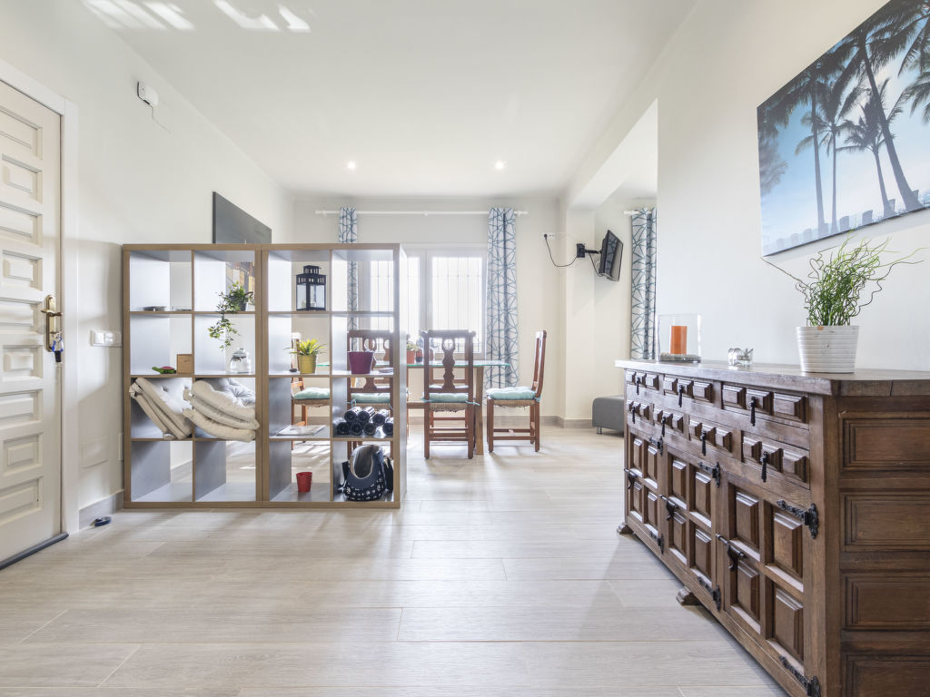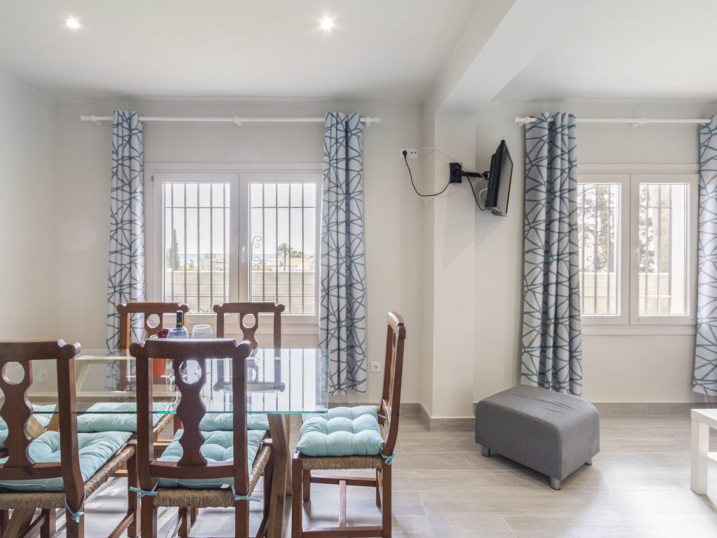 "Villa Andaluzia", 4-Zimmer-Villa 114 m2. Objekt geeignet für 4 Erwachsene + 2 Kinder. Renoviert im Jahre 2018, komfortabel und modern eingerichtet: Wohn-/Esszimmer mit TV (Flachbildschirm), Klimaanlage. Ausgang zum Gartensitzplatz. 3 Zimmer, jedes Zimmer mit 2 Betten (90 cm, Länge 190 cm), Ventilator. Küche (Backofen, Geschirrspüler, 4 Glaskeramikherd Platten, Toaster, Mikrowelle, elektrische Kaffeemaschine). 2 Duschen/WC. Gartengrill, Liegestühle (3). Sicht auf das Meer und den Garten. Zur Verfügung: Waschmaschine, Bügeleisen, Haartrockner. Internet (Wireless LAN). Parkplatz. Bitte beachten: geeignet für Familien. Nichtraucher-Haus. TV nur DE. HUTT001291