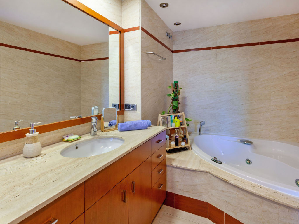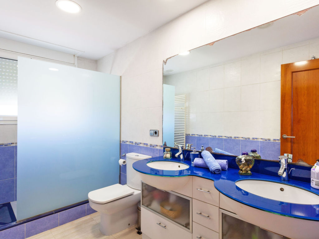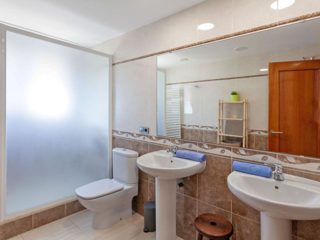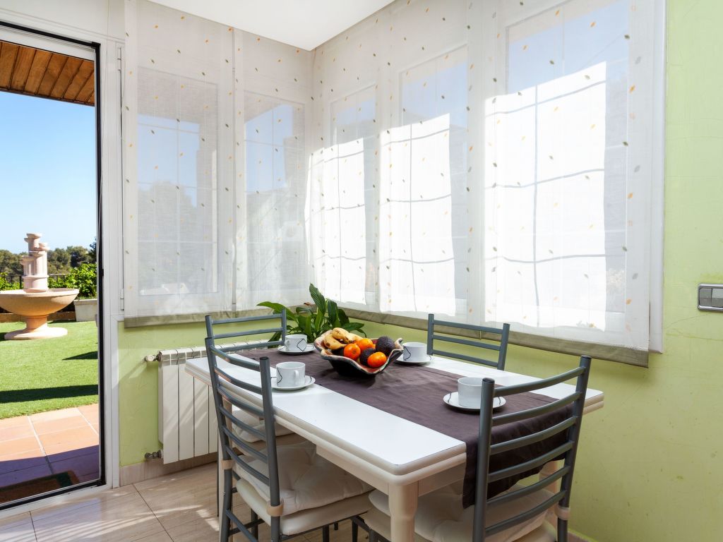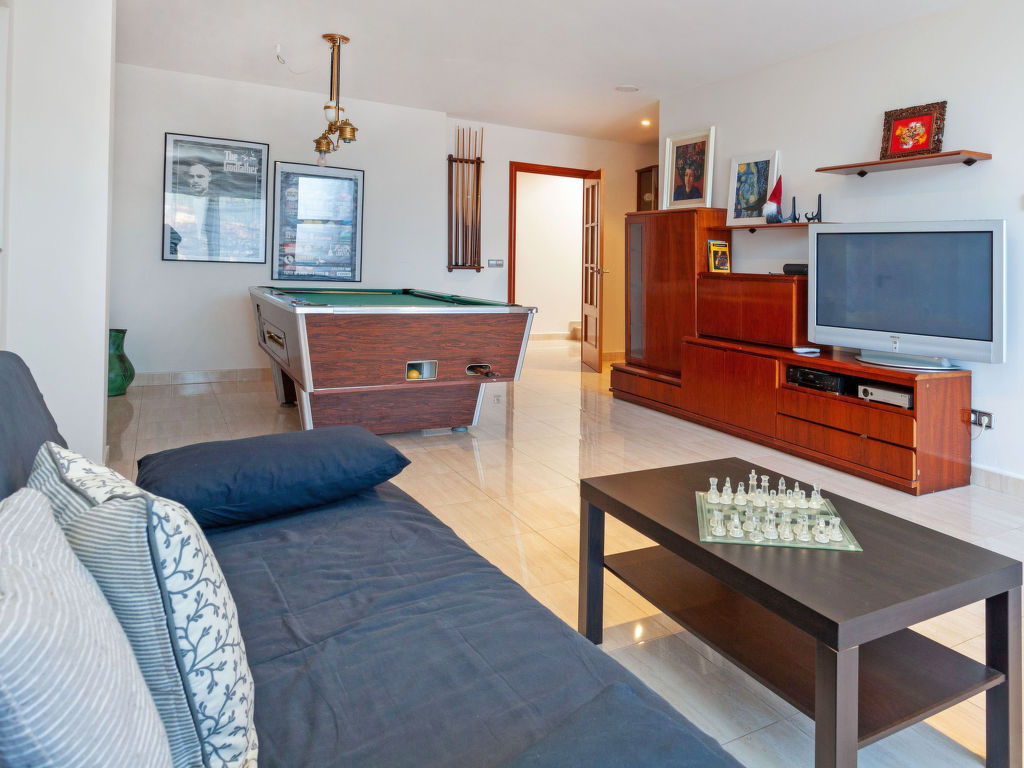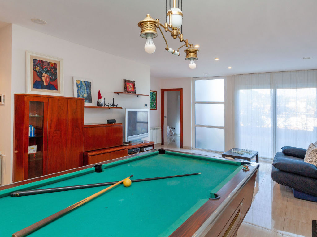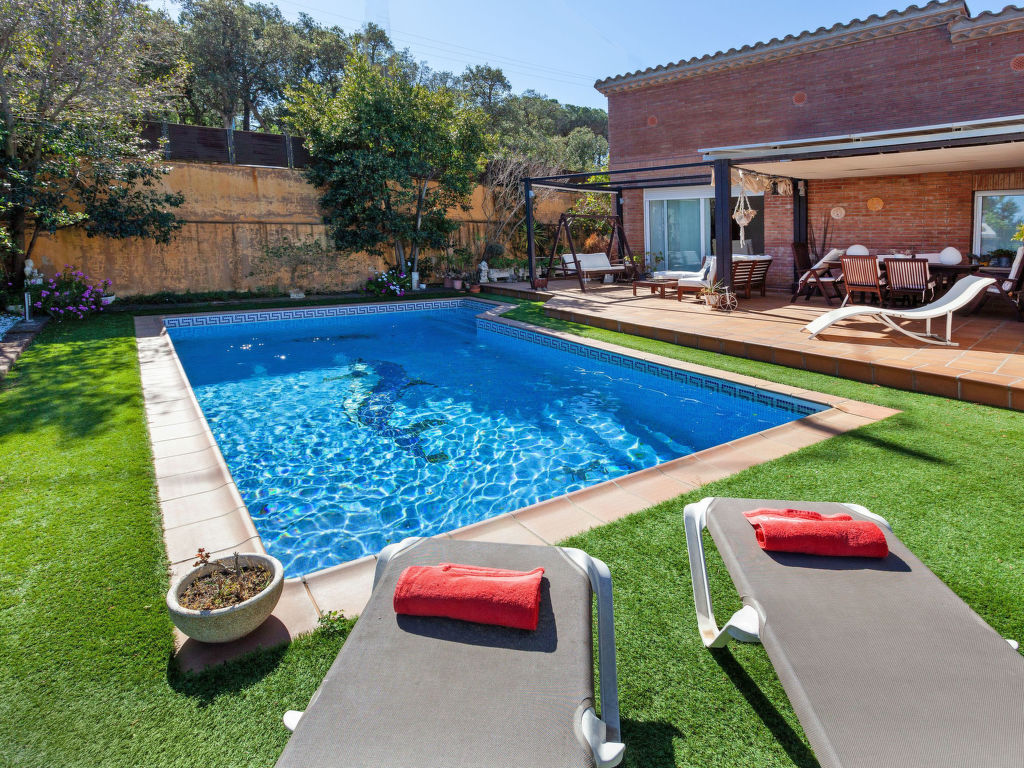 6-Zimmer-Haus 240 m2 auf 2 Stockwerken. Zweckmässig eingerichtet: Wohn-/Esszimmer, auf 2 Ebenen mit Digital-TV, Klimaanlage und Warmluftheizung. Ausgang zum Gartensitzplatz, zum Schwimmbad. 1 Zimmer mit begehbarer Kleiderschrank mit 1 Doppelbett (2 x 90 cm, Länge 190 cm), Bad/Dusche/Bidet/WC, Sprudelbad und Klimaanlage. 2 Zimmer, jedes Zimmer mit 2 Betten (90 cm, Länge 190 cm). Küche (Backofen, Geschirrspüler, 3 Glaskeramikherd Platten, Toaster, Wasserkocher, Mikrowelle, Tiefkühler, elektrische Kaffeemaschine). Ausgang zur Terrasse, zum Schwimmbad. Dusche/WC, Doppelwaschbecken. Unteres Geschoss: 1 Zimmer mit 1 franz. Bett (135 cm, Länge 190 cm). 1 Zimmer mit 1 franz. Bett (150 cm, Länge 190 cm). Spielzimmer. Dusche/WC. Gartensitzplatz. Terrassenmöbel, Gartengrill, Liegestühle (3). Zur Verfügung: Waschmaschine, Bügeleisen, Kinderhochstuhl, Babybett, Haartrockner. Internet (Wireless LAN, gratis). Bitte beachten: Nichtraucher-Haus. TV nur ES. HUTG054883