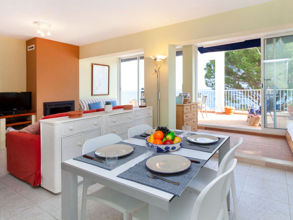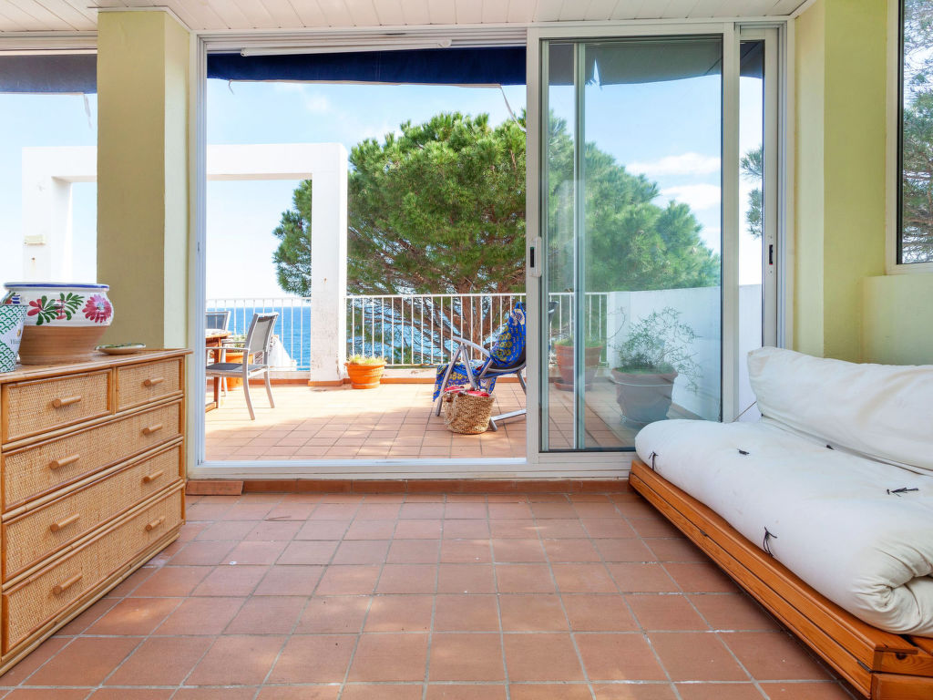 "El Niu", 3-Zimmer-Attikawohnung 59 m2. Zweckmässig und gemütlich eingerichtet: Wohn-/Esszimmer mit offenem Kamin, Digital-TV und Flachbildschirm. Ausgang zur Terrasse. 1 Zimmer mit 1 franz. Bett (140 cm), Digital-TV. Ausgang zur Terrasse. 1 Zimmer mit 1 Bett (90 cm), 1 x 2 Etagenbetten (90 cm). Offene Küche (Backofen, 4 Glaskeramikherd Platten, Mikrowelle, elektrische Kaffeemaschine). Bad/Bidet/WC. Grosse Terrasse 30 m2. Terrassenmöbel, Gartengrill. Schöne Sicht auf das Meer. Zur Verfügung: Waschmaschine. Bitte beachten: geeignet für Familien. TV nur ES. HUTG054508