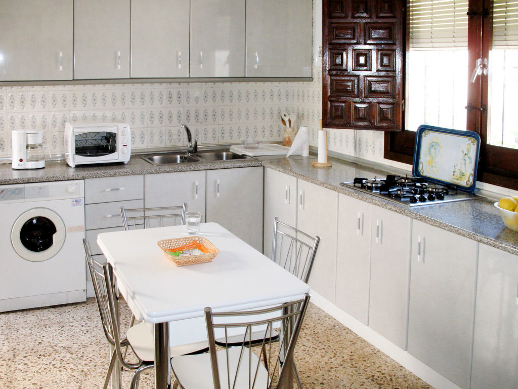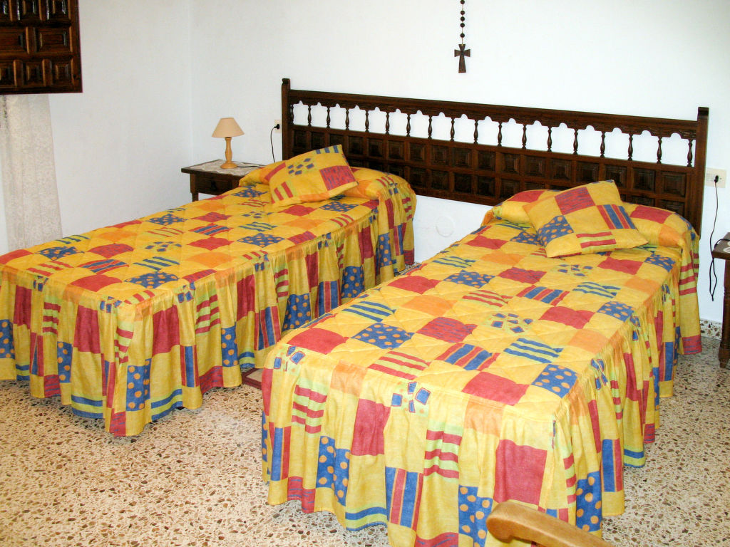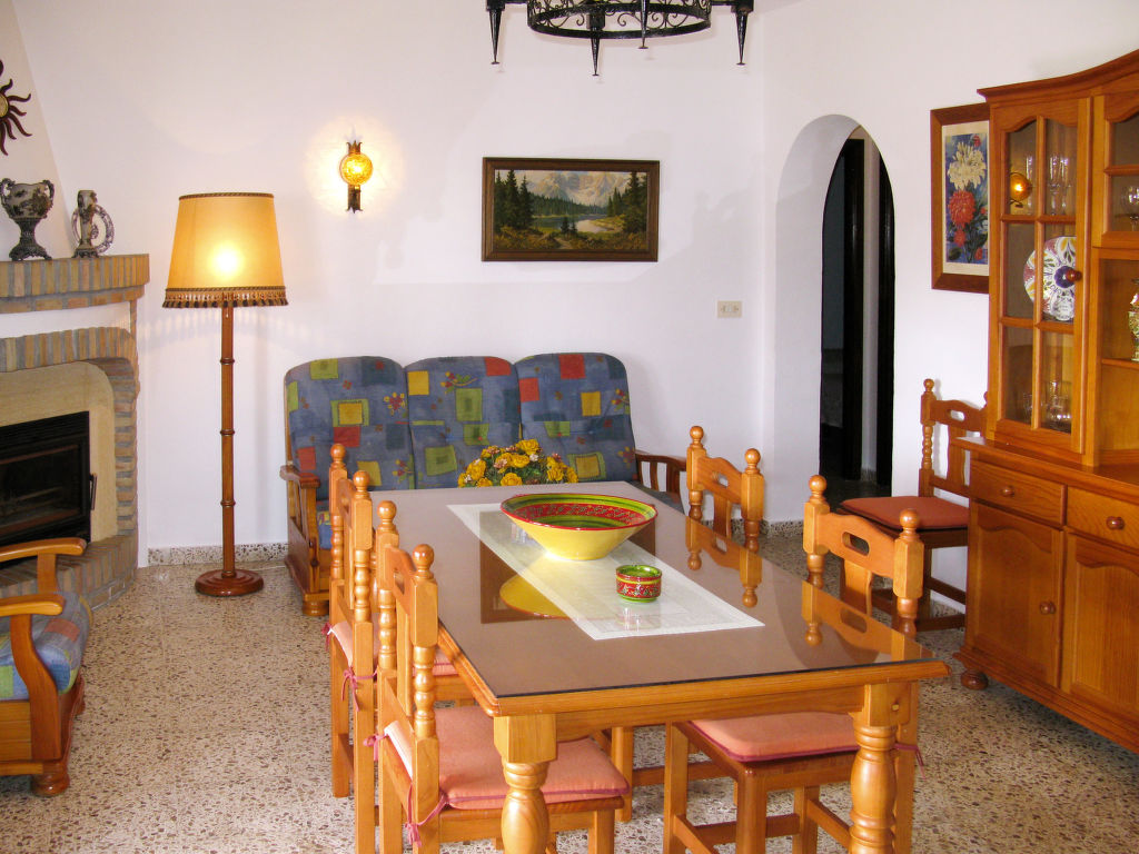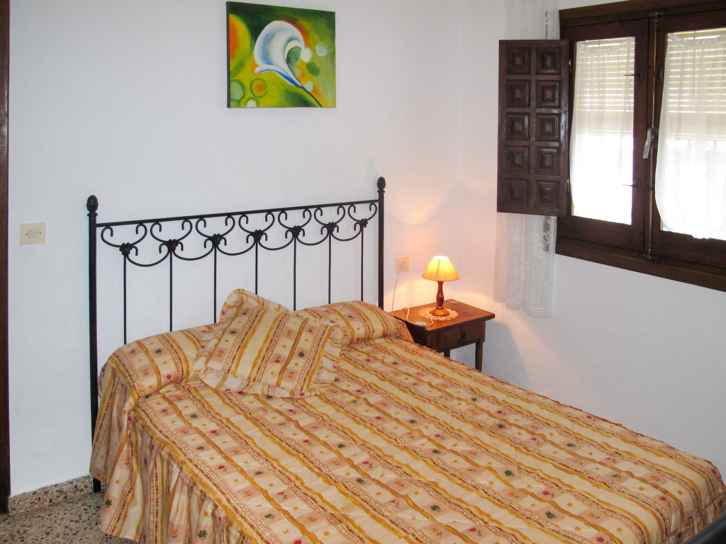 "Amanecer (AMU 103)", 4-Zimmer-Haus 95 m2. Rustikal eingerichtet: Wohn-/Esszimmer mit offenem Kamin, Esstisch und Sat-TV. Ausgang zur Terrasse. 1 Zimmer mit 1 franz. Bett (135 cm). 2 Zimmer, jedes Zimmer mit 2 Betten (90 cm, Länge 200 cm). Kleine Küche (Mini-Backofen, Backofen, 4 Flammen, Toaster, Wasserkocher, Tiefkühler, elektrische Kaffeemaschine) mit Essecke. Sitzbad/WC. Grosse Terrasse teilweise überdacht. Terrassenmöbel, Gartengrill, Liegestühle (8). Zur Verfügung: Waschmaschine, Babybett. Internet (Wireless LAN, gratis). Maximal 1 Haustier/Hund erlaubt. VFT/GR/03413