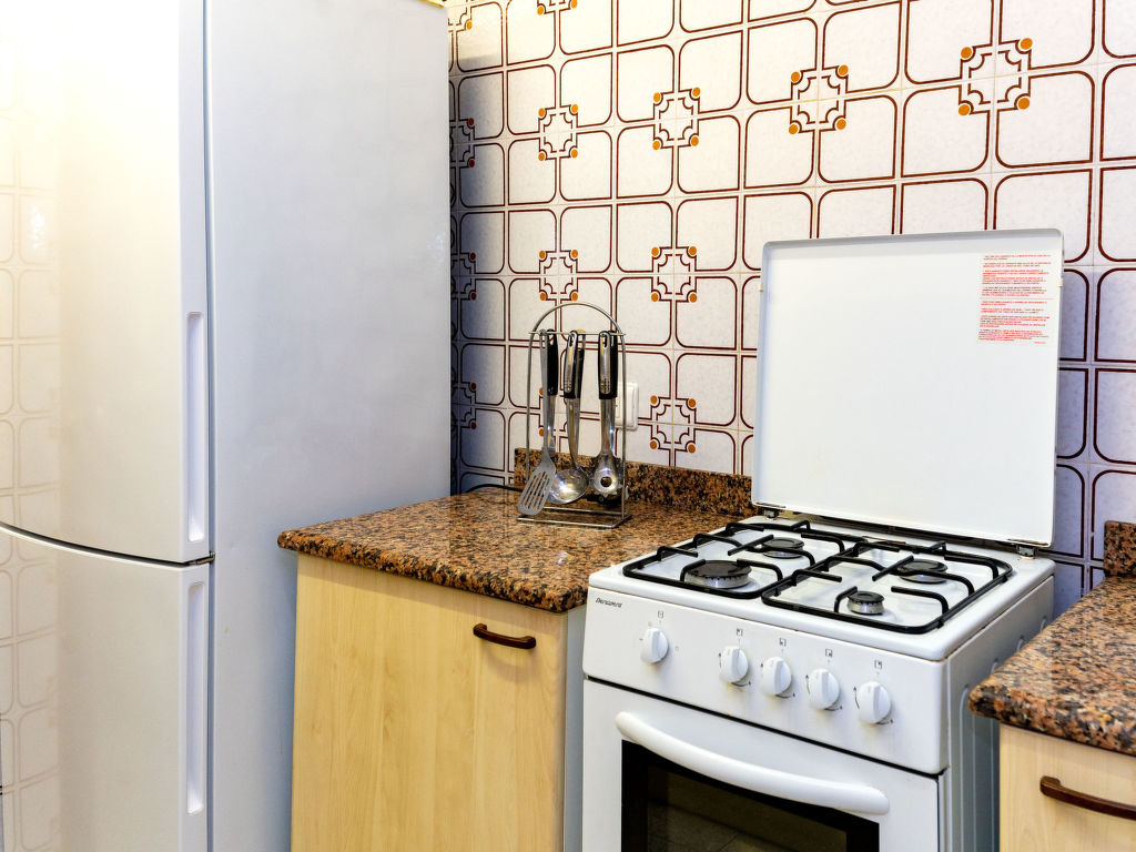 "White", 3-Zimmer-Wohnung 77 m2 im 4. Stock. Hell, zweckmässig und komfortabel eingerichtet: Wohn-/Esszimmer mit Esstisch, TV und G-Heizung. Ausgang zum Balkon. 1 Zimmer mit 1 x 2 Etagenbetten (80 cm, Länge 190 cm), 1 franz. Bett (135 cm, Länge 190 cm), G-Heizung. 1 Zimmer mit 1 franz. Bett (135 cm, Länge 190 cm), G-Heizung. Küche (4 Kochplatten, Backofen, Mikrowelle). Dusche/Bidet/WC. Balkon. Balkonmöbel. Sicht auf das Meer, das Schwimmbad und den Garten. Zur Verfügung: Waschmaschine, Bügeleisen, Kinderhochstuhl, Babybett bis 2 Jahre, Haartrockner. Internet (Wireless LAN, gratis). Geeignet für Familien. HUTB055106