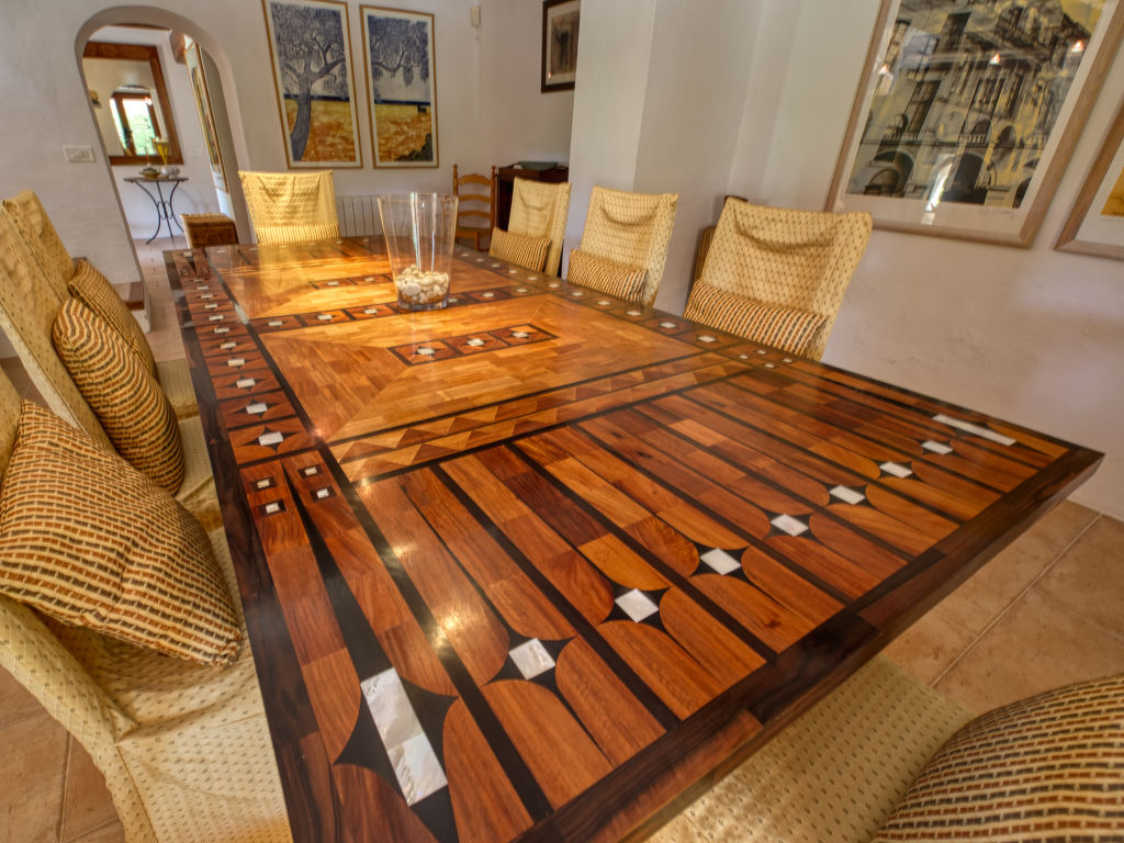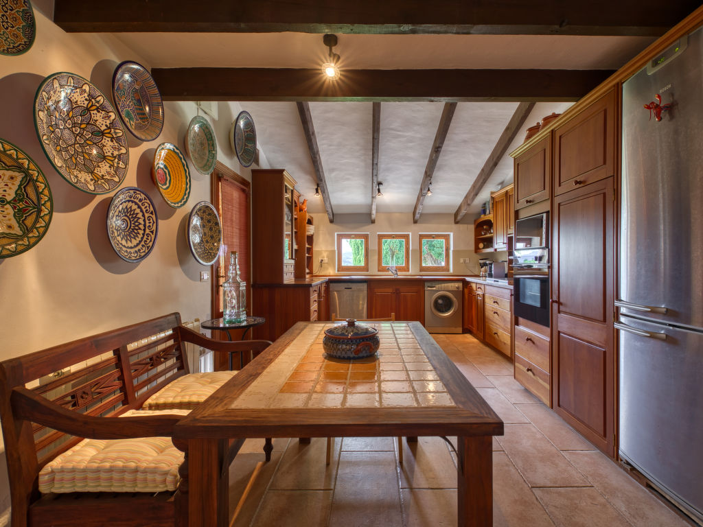 "Villa Finca Labranza", 6-Zimmer-Villa 260 m2 auf 2 Stockwerken. Geräumig und hell, sehr schön und stilvoll eingerichtet: Esszimmer mit Esstisch, Klimaanlage und Warmluftheizung. Ausgang Pergola. Wohnzimmer mit Sat-TV, Digital-TV, Klimaanlage und Warmluftheizung. Ausgang zum Garten, zum Schwimmbad. 1 Zimmer mit 2 Betten (90 cm, Länge 190 cm), Bad/WC, Klimaanlage und Warmluftheizung. Wohnzimmer mit Küchenblock. Ausgang zum Gartensitzplatz. 1 Zimmer mit 1 franz. Bett (150 cm, Länge 190 cm), Dusche/WC, Klimaanlage und Warmluftheizung. Ausgang zur Terrasse. Grosse, offene Küche (4 Kochplatten, Backofen, Geschirrspüler, Toaster, Wasserkocher, Mikrowelle, Tiefkühler, elektrische Kaffeemaschine). Sep. WC. Obergeschoss: 1 Zimmer mit 2 Betten (90 cm, Länge 200 cm), Bad/Bidet/WC, Klimaanlage und Warmluftheizung. Grosser Gartensitzplatz, grosser Garten, Laube. Terrassenmöbel, Gartengrill, Liegestühle, Loggia, Sitzplatz. Zur Verfügung: Waschmaschine, Bügeleisen, Haartrockner. Internet (Wireless LAN, gratis). Bitte beachten: TV nur ES, DE. Einer der Schlafzimmer (Bett 150 x 200cm) befindet sich in einem separaten, angebauten Appart. mit Bad, Küchenzeile und eigene Terrasse. Weinkeller verfübgba. VT-484337-A