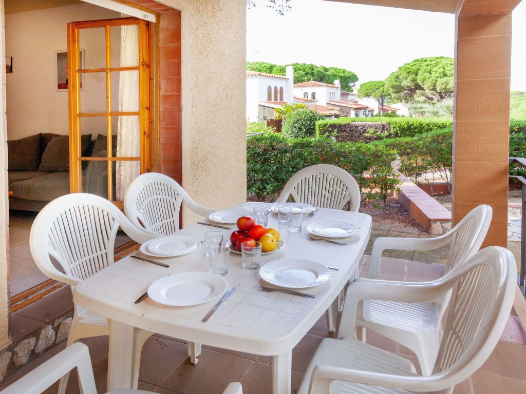 Haus "Torre Mora". 7 Häuser in der Residenz. 900 m vom Meer. Zur Mitbenutzung: Garten (eingezäunt) mit Rasen, Schwimmbad nierenförmig (8 x 4 m, 100 - 210 cm tief, saisonale Verfügbarkeit: 15.Mai.-15.Okt.). Einzelgarage. Supermarkt 400 m, Sandstrand 900 m. Golfplatz 300 m. Nahe gelegene Sehenswürdigkeiten: Illes Medes 17 km.