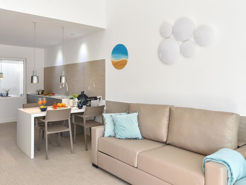 4-Zimmer- "Velsuites 4", Haus für 4 Personen, 105 m2, komfortabel und modern eingerichtet. Wohn-/Esszimmer mit Kabel-TV. Rauchen nicht erlaubt. Internet (Wireless LAN [WLAN]). Schlafzimmer mit 1 Doppelbett. Schlafzimmer mit 2 Normalbetten. Wohnküche mit 4 - Platten Herd, Mikrowelle, Backofen, Esstisch, Geschirrspüler, Kühlschrank und Tiefkühler. Dusche und Dusche/WC. Terrasse. Weitere Ausstattung: Safe, Kinderhochstuhl, Haartrockner, Bügeleisen, Waschmaschine. 2020/3526