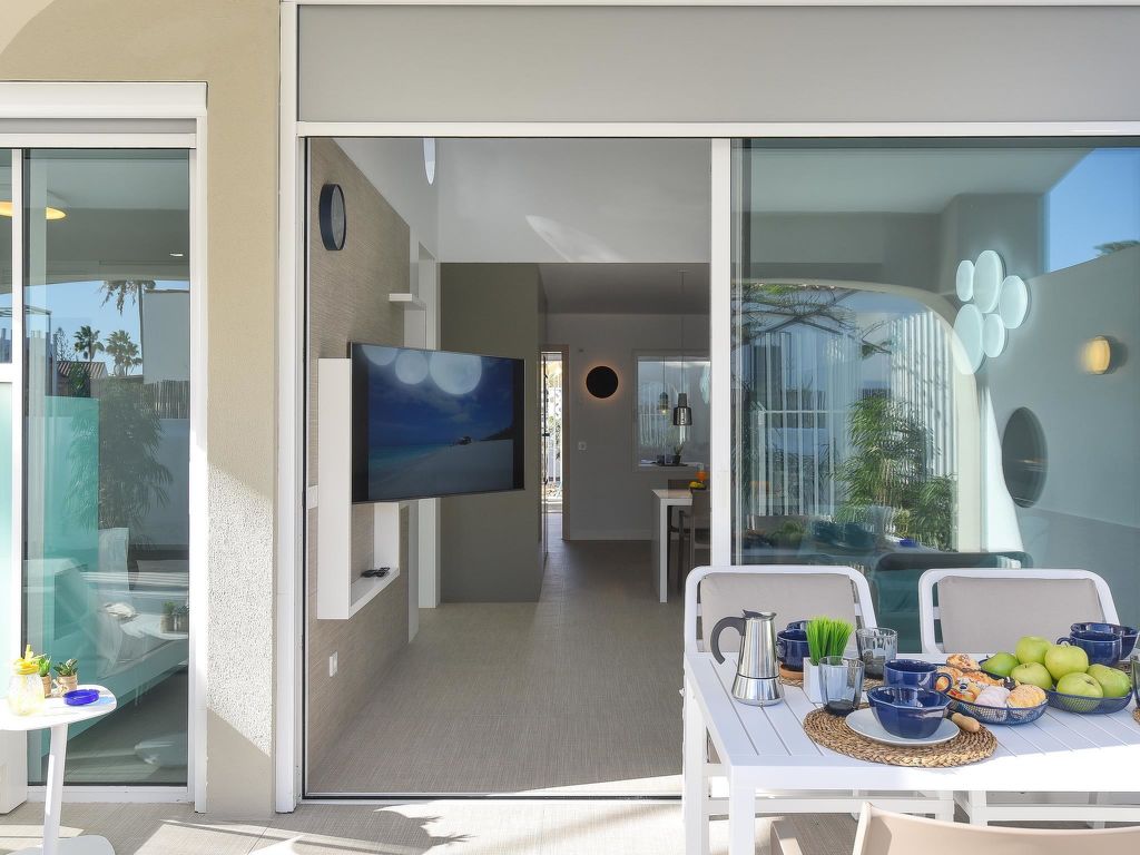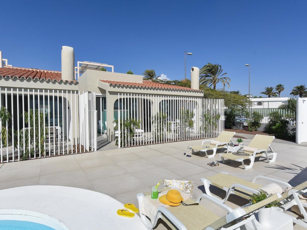 Neuer, moderner, komfortabler Bungalow "New Velsuites Playa del Ingles 4", renoviert im Jahre 2020. Hausausstattung: Klimaanlage, Solarium, Waschmaschine (zur Alleinbenutzung). Ganzjährig Zufahrt bis zum Haus möglich. Lage: im Ortszentrum von Playa del Ingles, zentrale, belebte, sonnige Lage. Umgebung des Hauses: Swimming Pool (zur Mitbenutzung, beheizt).