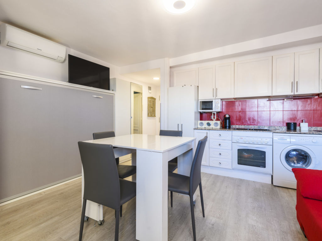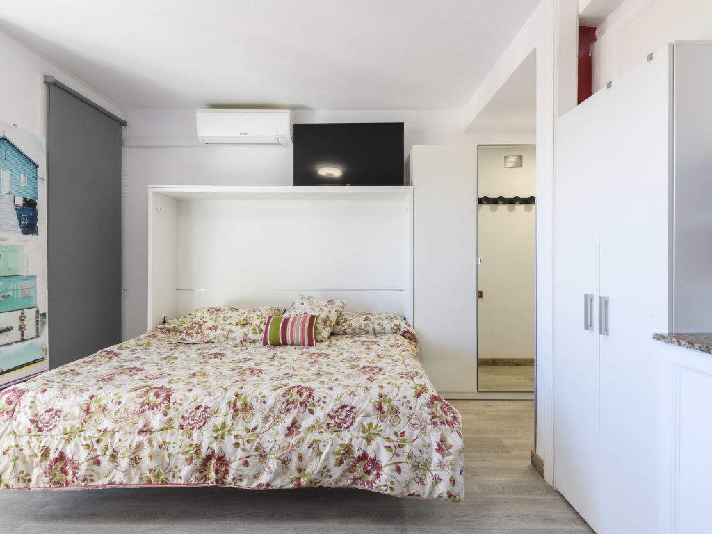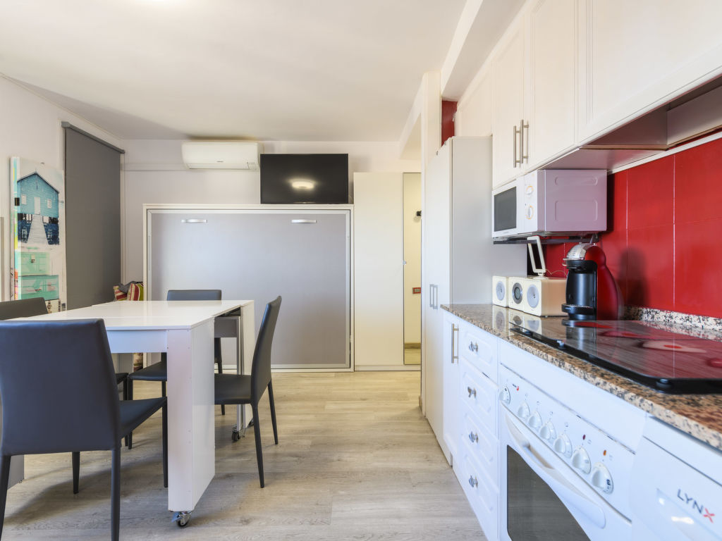 "Niza", 1-Zimmer-Studio 35 m2 im 8. Stock. Hell, einfach und zweckmässig eingerichtet: Wohn-/Esszimmer mit 1 Wandschrankbett (135 cm, Länge 190 cm), Digital-TV, Flachbildschirm, Klimaanlage und Warmluftheizung. Ausgang zur Terrasse. Küche (Backofen, 4 Glaskeramikherd Platten, Toaster, Mikrowelle, Tiefkühler, elektrische Kaffeemaschine). Bad/Bidet/WC. Heizung nicht in allen Räumen. Terrasse, Ostlage. Terrassenmöbel. Sicht auf das Meer und die Ortschaft. Zur Verfügung: Waschmaschine, Bügeleisen, Haartrockner. Internet (Wireless LAN, gratis). Parkplatz Nr. 13 (überdacht). Geeignet für Familien. VT-40526-CS