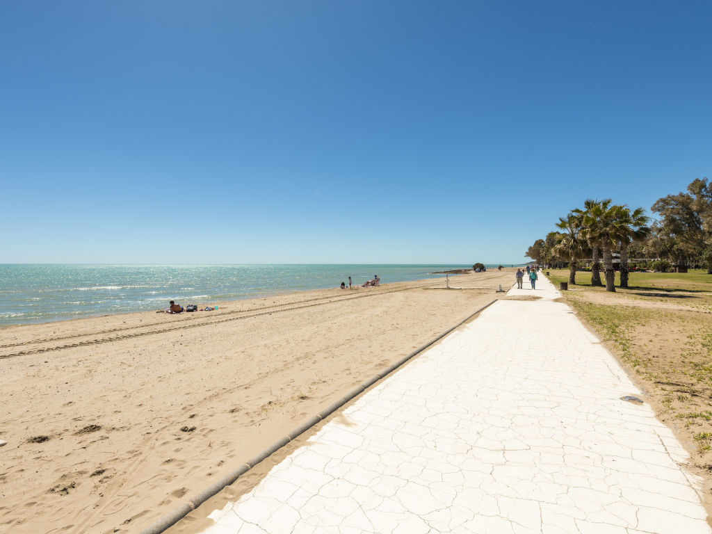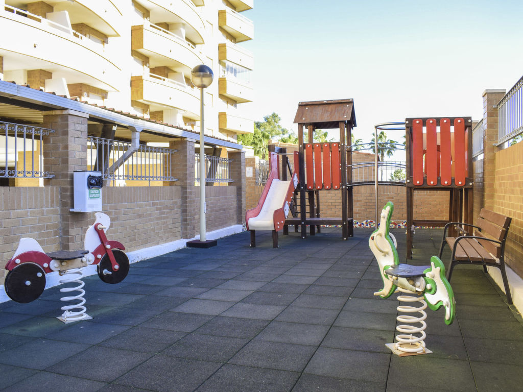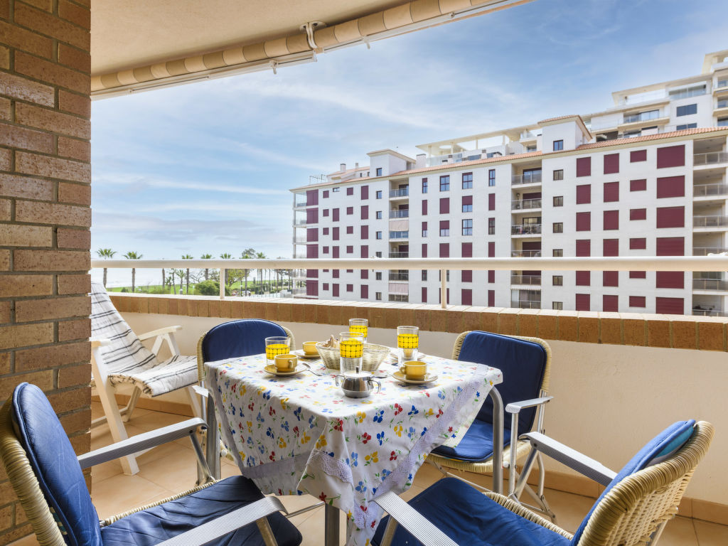 Komfortables Appartementhaus "Acapulco IV". Im Ort Marina d'Or, sonnige Lage, 100 m vom Meer, 100 m vom Strand. Zur Mitbenutzung: Garten, Schwimmbad (10 x 20 m, 70 - 230 cm tief, saisonale Verfügbarkeit: 01.Jun.-30.Sep. Öffnungszeiten Schwimmbad: 10:00-22:00). Aussendusche, Kinderspielplatz (Rutschbahn, Schaukel). Im Hause: Fahrstuhl. Parkplatz (überdacht). Lebensmittelgeschäft 400 m, Supermarkt 700 m, Restaurant, Bar, Café, Sandstrand 100 m.