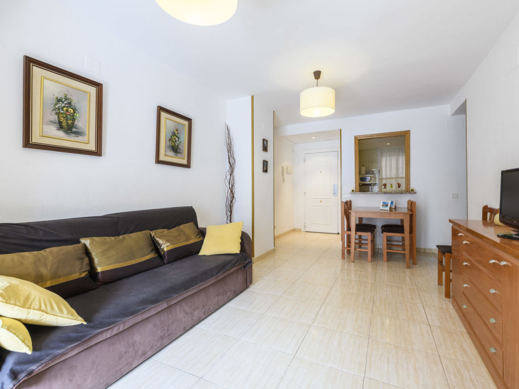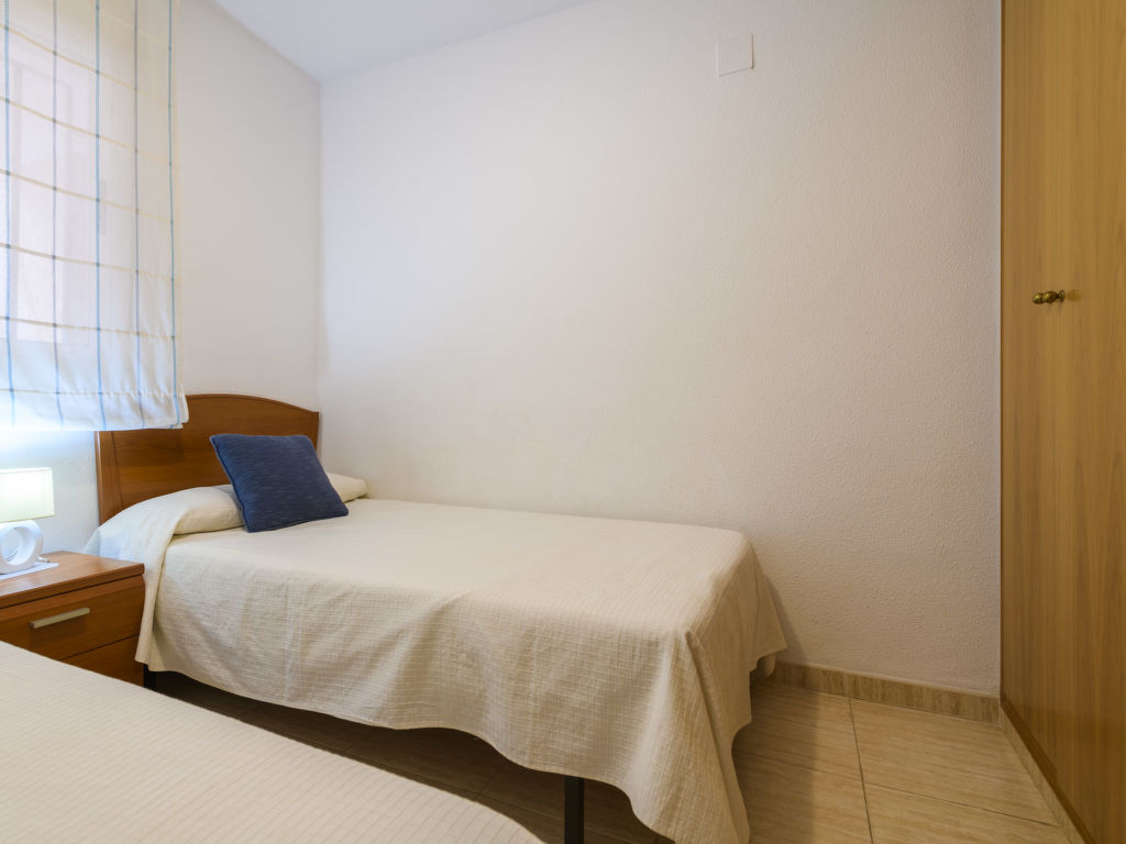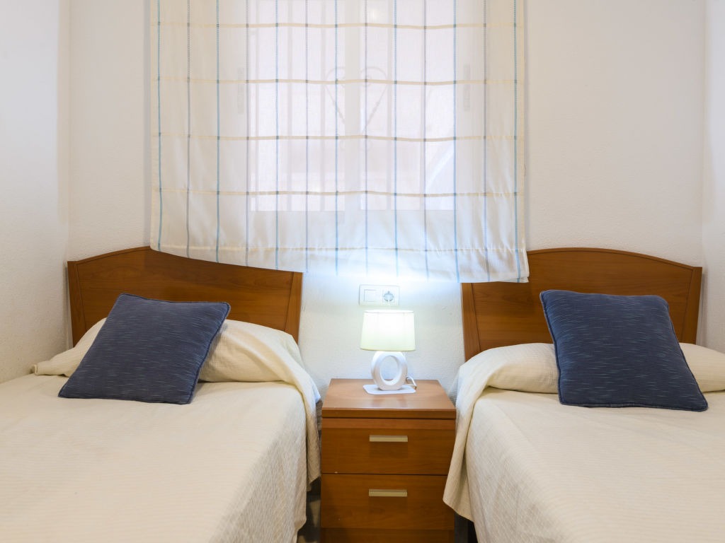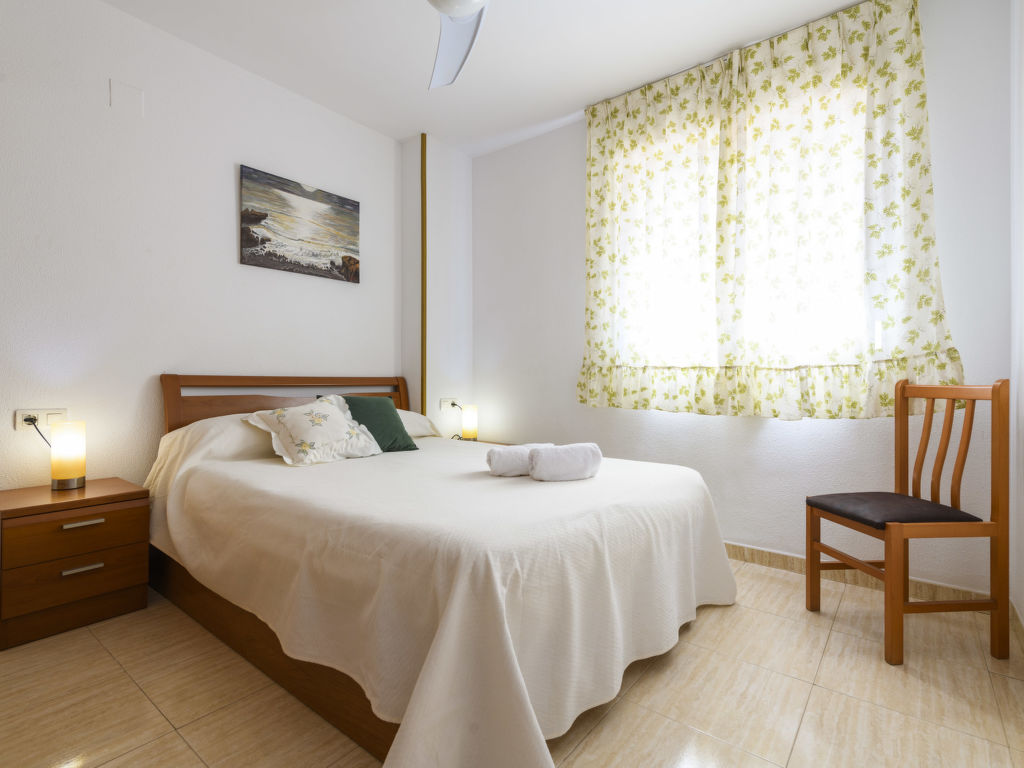 "Acapulco IV Primera Linea", 3-Zimmer-Wohnung 54 m2 im 2. Stock. Zweckmässig eingerichtet: Wohn-/Esszimmer mit 1 Doppeldiwanbett, Esstisch, Digital-TV, Flachbildschirm, Klimaanlage und Warmluftheizung. Ausgang zur Terrasse. 1 Doppelzimmer mit 1 franz. Bett (135 cm, Länge 190 cm), Ventilator. 1 Doppelzimmer mit 2 Betten (90 cm, Länge 190 cm). Küche (3 Kochplatten, Backofen, 1 Glaskeramikherd Platte, Toaster, Mikrowelle, elektrische Kaffeemaschine). Bad/Bidet/WC, Dusche/Bidet/WC. E-Heizung. Terrasse. Terrassenmöbel. Seitliche Sicht auf das Meer und die Berge. Zur Verfügung: Waschmaschine, Bügeleisen, Haartrockner. Internet (Wireless LAN, gratis). Parkplatz Nr. 193 (überdacht). Geeignet für Familien. 1 Haustier/Hund erlaubt. VT-33168-CS