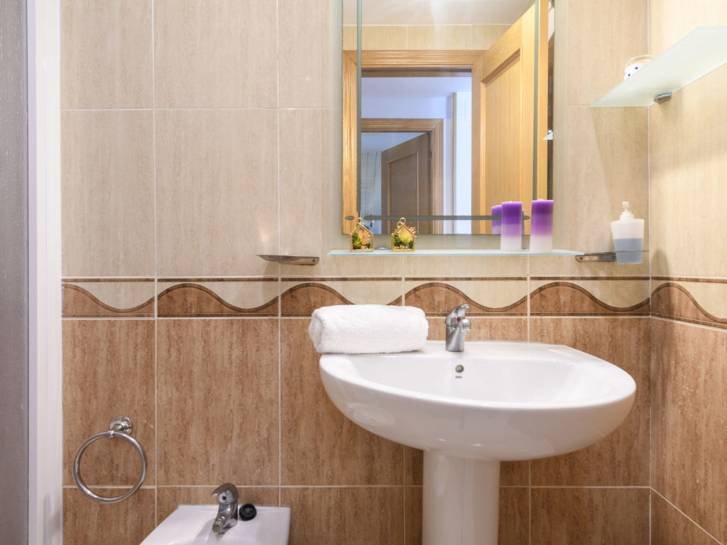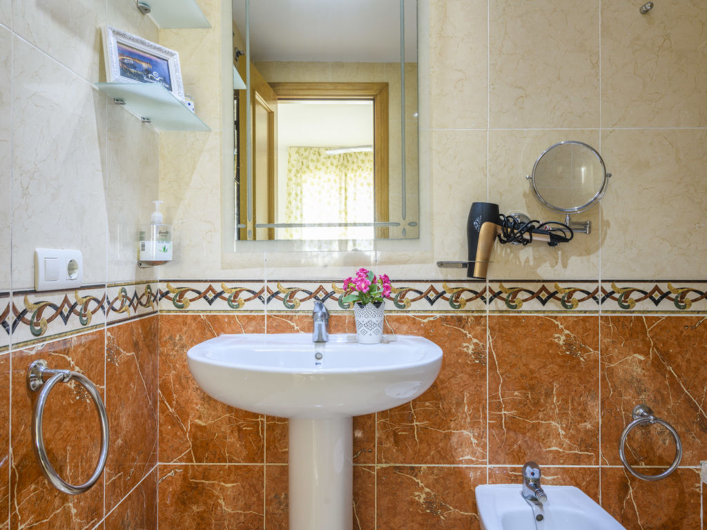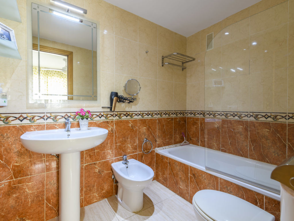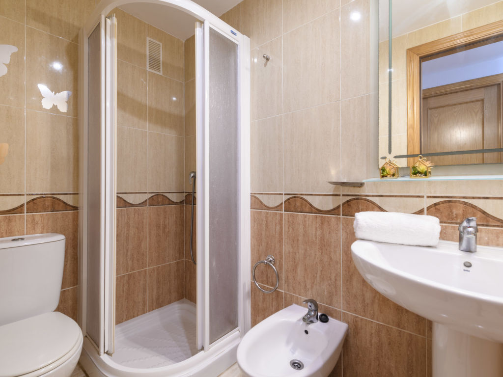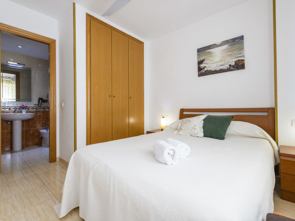 "Acapulco IV Primera Linea", 3-Zimmer-Wohnung 54 m2 im 2. Stock. Zweckmässig eingerichtet: Wohn-/Esszimmer mit 1 Doppeldiwanbett, Esstisch, Digital-TV, Flachbildschirm, Klimaanlage und Warmluftheizung. Ausgang zur Terrasse. 1 Doppelzimmer mit 1 franz. Bett (135 cm, Länge 190 cm), Ventilator. 1 Doppelzimmer mit 2 Betten (90 cm, Länge 190 cm). Küche (3 Kochplatten, Backofen, 1 Glaskeramikherd Platte, Toaster, Mikrowelle, elektrische Kaffeemaschine). Bad/Bidet/WC, Dusche/Bidet/WC. E-Heizung. Terrasse. Terrassenmöbel. Seitliche Sicht auf das Meer und die Berge. Zur Verfügung: Waschmaschine, Bügeleisen, Haartrockner. Internet (Wireless LAN, gratis). Parkplatz Nr. 193 (überdacht). Geeignet für Familien. 1 Haustier/Hund erlaubt. VT-33168-CS