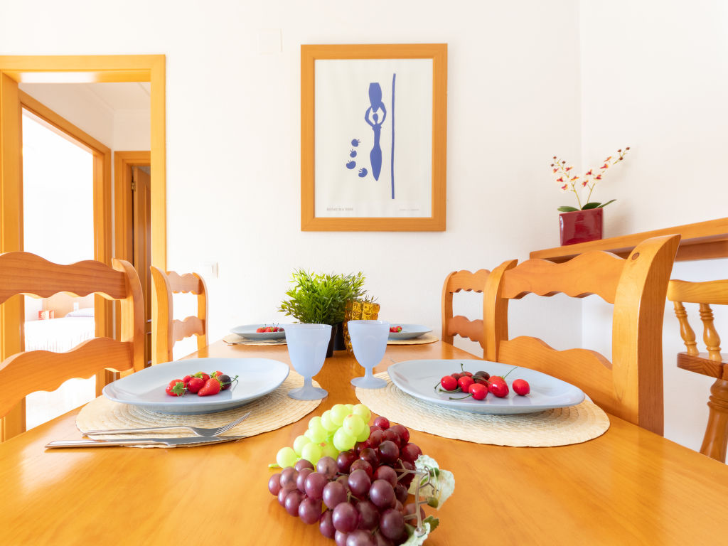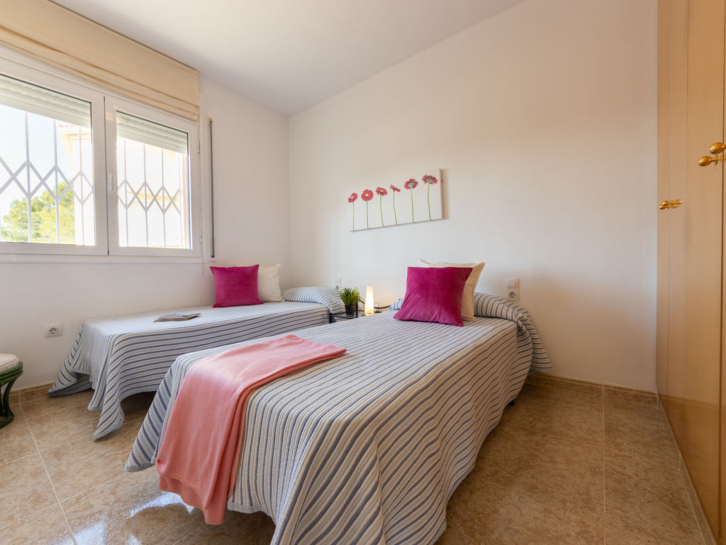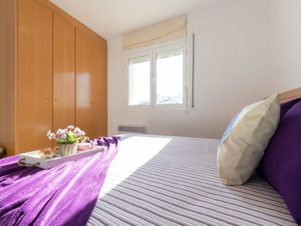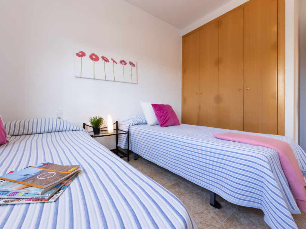"Roquemar", 3-Zimmer-Wohnung 50 m2. Modern und geschmackvoll eingerichtet: Wohn-/Esszimmer mit Esstisch, TV und Klimaanlage. Ausgang zum Balkon. 1 Zimmer mit 1 franz. Bett (1 x 150 cm, Länge 180 cm). 1 Zimmer mit 2 Betten (90 cm, Länge 180 cm), Klimaanlage. Offene Küche (Backofen, 4 Glaskeramikherd Platten, Toaster, Wasserkocher, Mikrowelle, Tiefkühler, elektrische Kaffeemaschine). Dusche/WC. Klimaanlage. Terrasse. Balkonmöbel. Herrliche Sicht. Zur Verfügung: Waschmaschine, Bügeleisen, Kinderhochstuhl, Babybett, Haartrockner. Internet (Wireless LAN). Bitte beachten: geeignet für Familien. TV nur ES. HUTTE002525