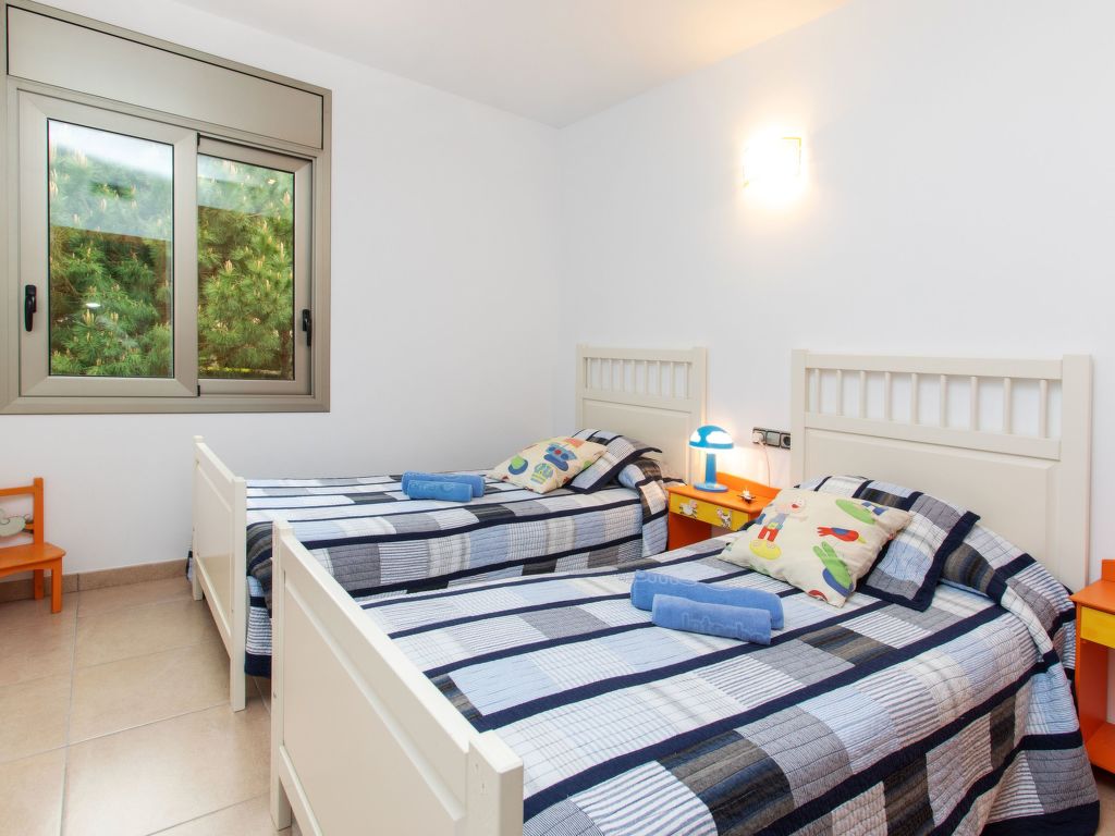 "Gavarres Mar II", 5-Zimmer-Reihenhaus 180 m2 auf 3 Stockwerken. Zweckmässig eingerichtet: Wohn-/Esszimmer mit Digital-TV. Ausgang zum Gartensitzplatz. 1 Zimmer mit 1 Diwanbett (142 cm, Länge 180 cm). Offene Küche (Backofen, Geschirrspüler, 3 Glaskeramikherd Platten, Toaster, Wasserkocher, Mikrowelle, Tiefkühler, elektrische Kaffeemaschine) mit Bar. Dusche/WC. Klimaanlage, Boiler (100 Liter). Unteres Geschoss: Spielzimmer. Obergeschoss: 1 Zimmer mit 1 franz. Bett (160 cm, Länge 200 cm), Bad/WC. Ausgang zur Terrasse. 1 Zimmer mit 2 Betten (90 cm, Länge 200 cm). 1 Zimmer mit 1 Ausziehbett (2 Pers. 2 x 90 cm, Länge 200 cm). Dusche/WC. Grosse Terrasse, Garten. Terrassenmöbel, Gartengrill, Loggia. Sicht auf das Schwimmbad und die Landschaft. Zur Verfügung: Waschmaschine, Bügeleisen, Kinderhochstuhl, Babybett, Haartrockner. Internet (Wireless LAN, gratis). Garage. Bitte beachten: TV nur ES. HUTG050161