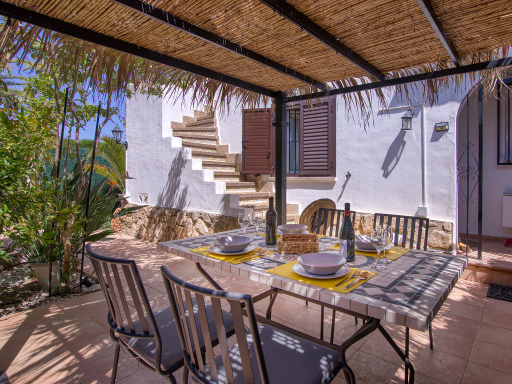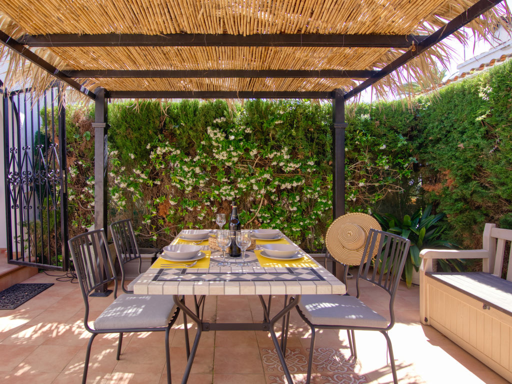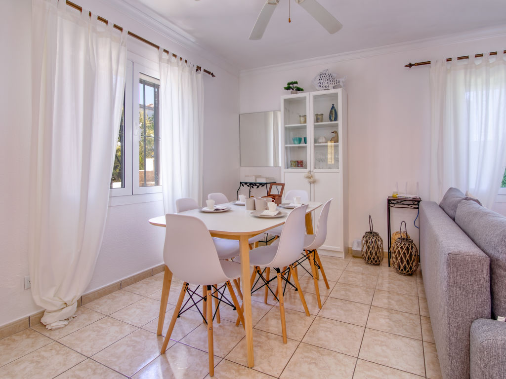 Sehr schönes, gemütliches, sehr komfortables Reihenhaus "El Palmar". Im Ort, 4 km vom Zentrum von Dénia, 700 m vom Meer, 700 m vom Strand. Zur Mitbenutzung: 2 Schwimmbäder (saisonale Verfügbarkeit: 01.Jan.-31.Dez.) mit Innentreppe. Ungleichmässige Schwimmbadform, Kinderbecken, Rutschbahn, Aussendusche, Kinderspielplatz. Zur Alleinbenutzung: Grundstück mit Rasen, Parkplatz beim Haus. Einkaufsgeschäft 300 m, Supermarkt 900 m, Restaurant 400 m, Bar 450 m, Sandstrand "Playa de les Bovetes" 700 m. Sporthafen 4.5 km, Jacht-Hafen 4.5 km, Segelschule 700 m. Der Besitzer akzeptiert keine Jugendgruppen.