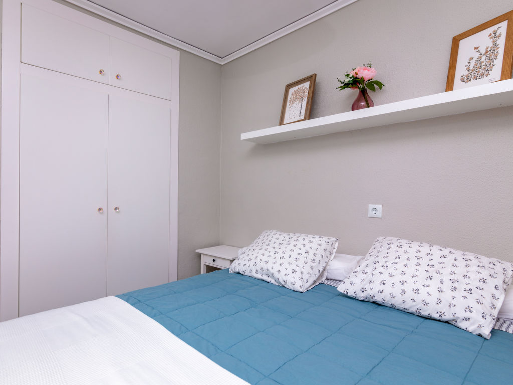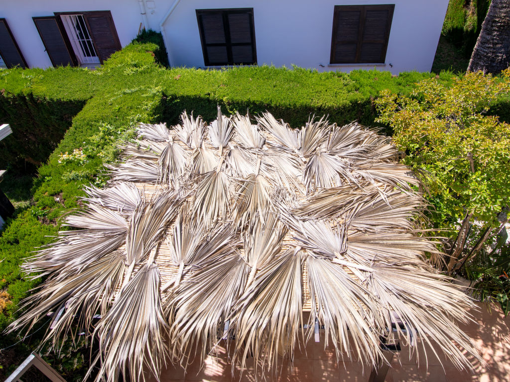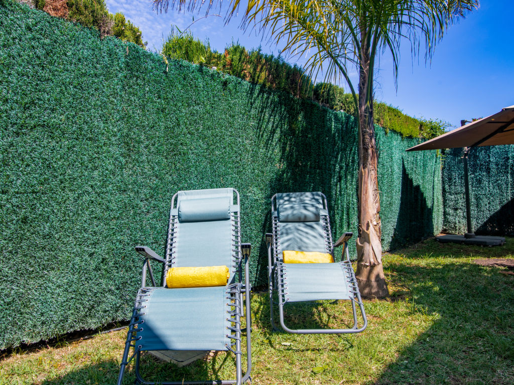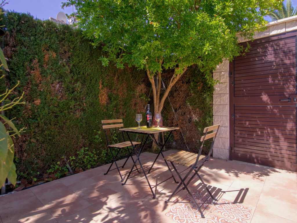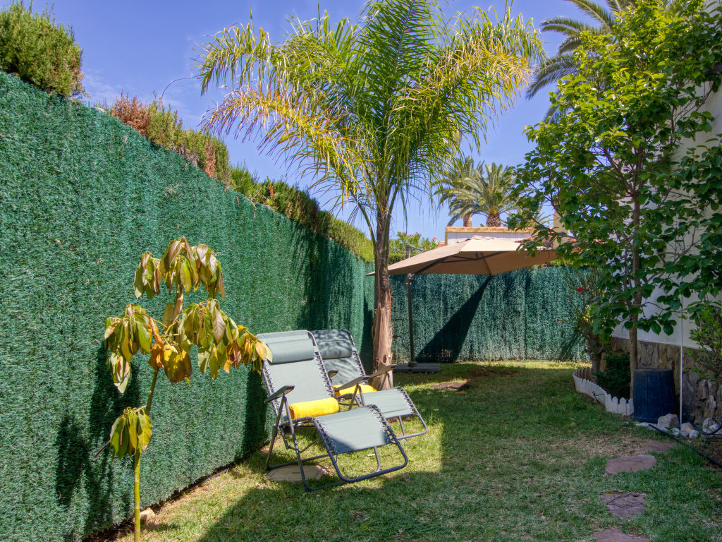 "El Palmar 201", 3-Zimmer-Haus 70 m2. Hell, schön und geschmackvoll eingerichtet: Wohn-/Esszimmer mit Digital-TV und Ventilator. Ausgang zum Gartensitzplatz. 1 Zimmer mit 1 franz. Bett (160 cm, Länge 200 cm), Klimaanlage und Warmluftheizung mit 1 x 3 Etagenbetten (90 cm, Länge 180 cm), Klimaanlage und Warmluftheizung. Offene Küche (Backofen, Geschirrspüler, 3 Induktionskochplatten, Toaster, Mikrowelle, Tiefkühler, elektrische Kaffeemaschine). Dusche/WC. Laube. Terrassenmöbel, Gartengrill. Zur Verfügung: Waschmaschine, Bügeleisen, Kinderhochstuhl, Babybett, Haartrockner. Internet (Wireless LAN, gratis). Bitte beachten: TV nur ES. Eigener Eingang. VT-485680-A