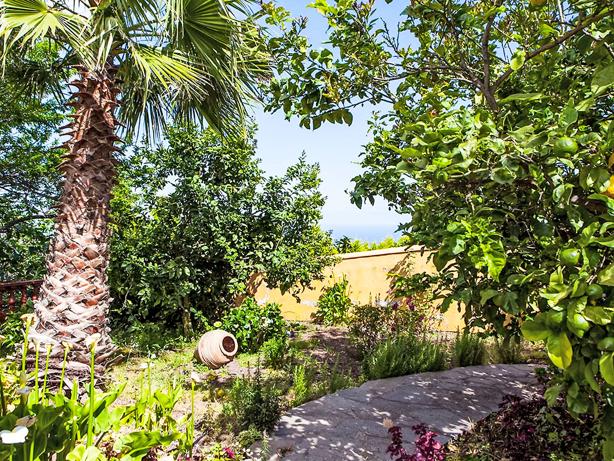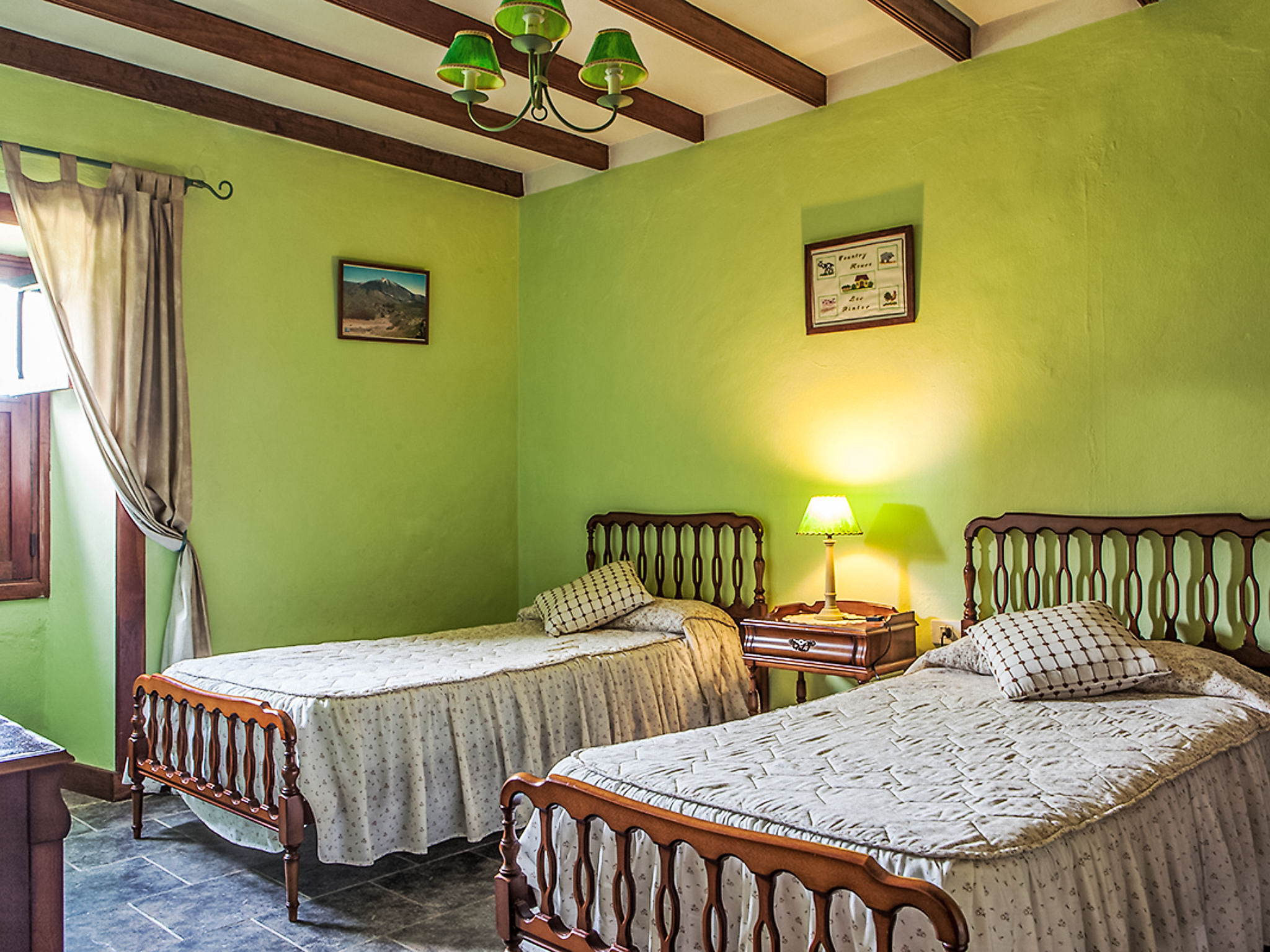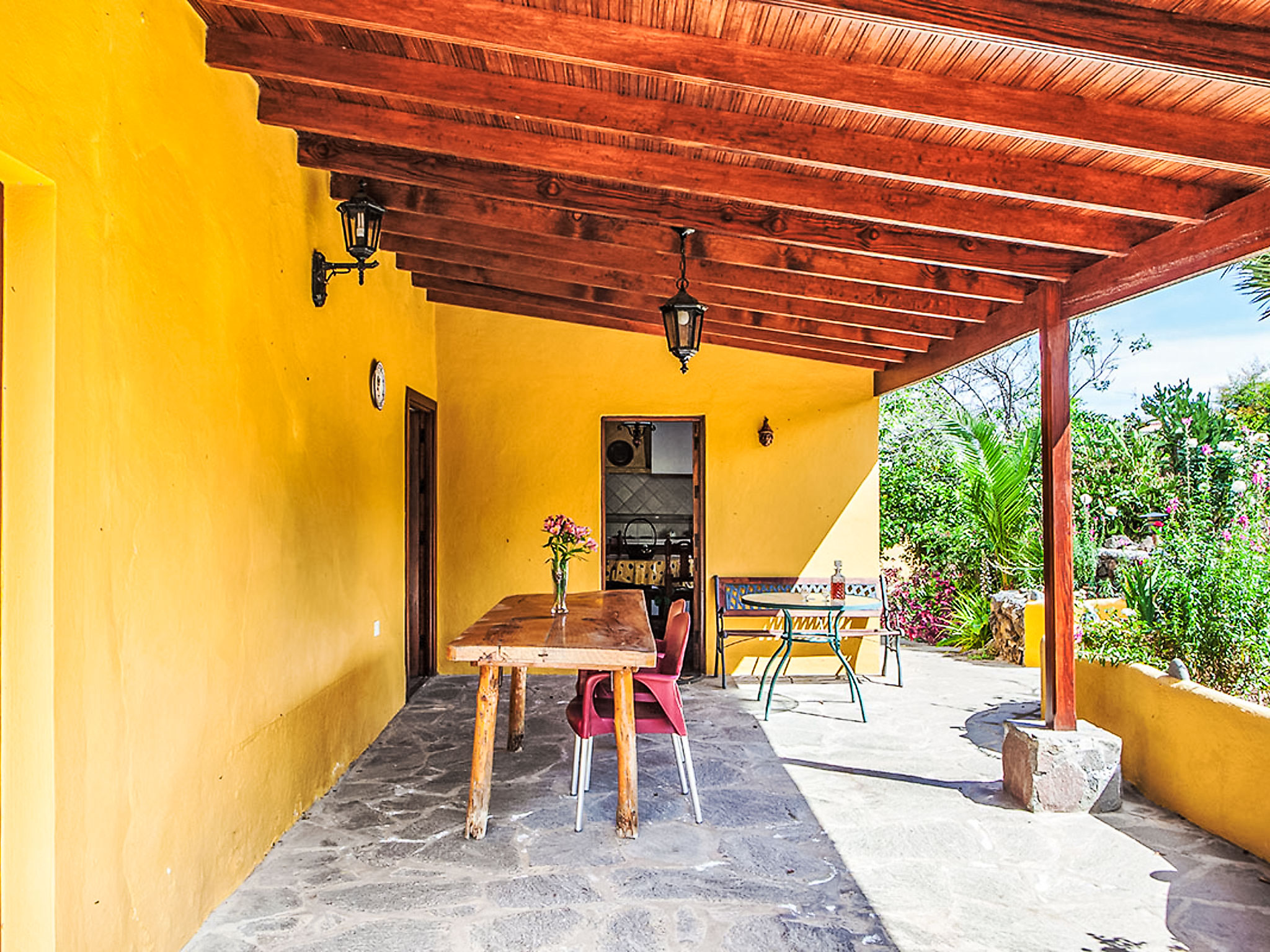 La Orotava: Schönes, rustikales Haus "Camino La Candelaria". Ausserhalb des Ortes, am Hang, 6 km vom Meer. Zur Mitbenutzung: Grundstück 20'000 m2 mit Rasen, Obstgarten, wunderschöner Garten zum Entspannen, Schwimmbad (7 x 4 m, 120 - 150 cm tief, saisonale Verfügbarkeit: 01.Jan.-31.Dez.). WC im Poolbereich, Aussendusche, Poolhaus mit Kühlschrank, Gartenmöbel, Grill. In der Anlage: Wireless LAN. Parkplatz auf dem Grundstück. Lebensmittelgeschäft, Restaurant 300 m, Bushaltestelle 20 m, Sandstrand 6 km. Jugendgruppen nur auf Anfrage. Bitte beachten: Hauptstrasse 50 m vom Haus. In diesem Haus sind weitere Ferienwohnungen mietbar. Sonnenterrasse, ca. 20 m2.