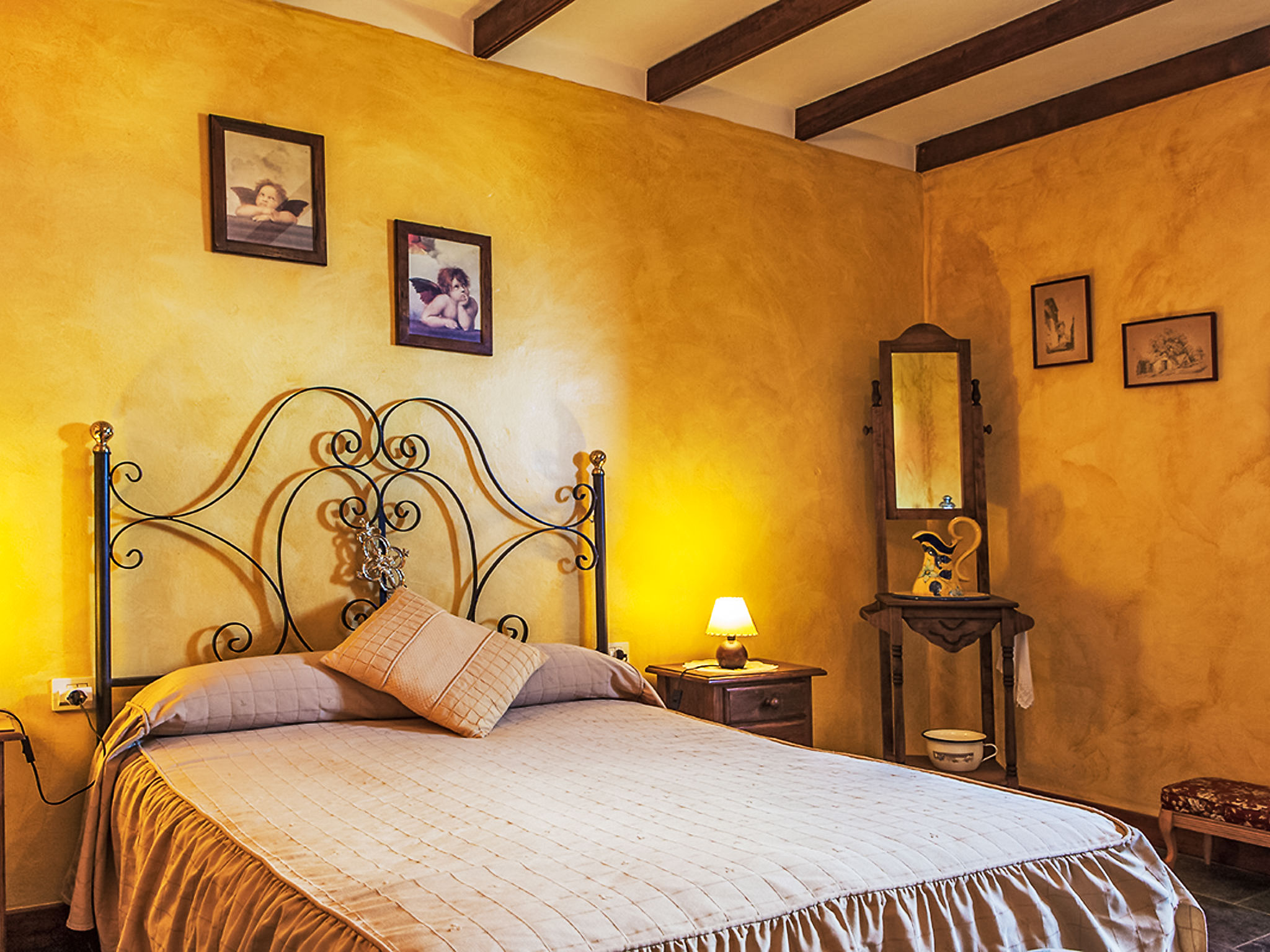 2-Zimmer-Bauernhaus 80 m2, im Erdgeschoss. Rustikal eingerichtet: 1 Zimmer mit 2 Betten und E-Heizofen. 1 Zimmer, ohne Schrank mit 1 franz. Bett und E-Heizofen. Wohnzimmer mit Sat-TV und Internationale TV-Sender. Küche 12 m2 (Geschirrspüler, 2 Glaskeramikherd Platten, Mikrowelle, Tiefkühler, elektrische Kaffeemaschine) mit Esstisch, Boiler (50 Liter). Bad/Dusche. Terrasse 50 m2, Garten 100 m2. Terrassenmöbel, Gartengrill, Liegestühle (2). Panoramasicht. Zur Verfügung: Waschmaschine (extra), Bügeleisen, Kinderhochstuhl (extra). Internet (Wireless LAN, gratis). Wäschewechsel EURO 3.50 / Washgang. CA-38/4.013