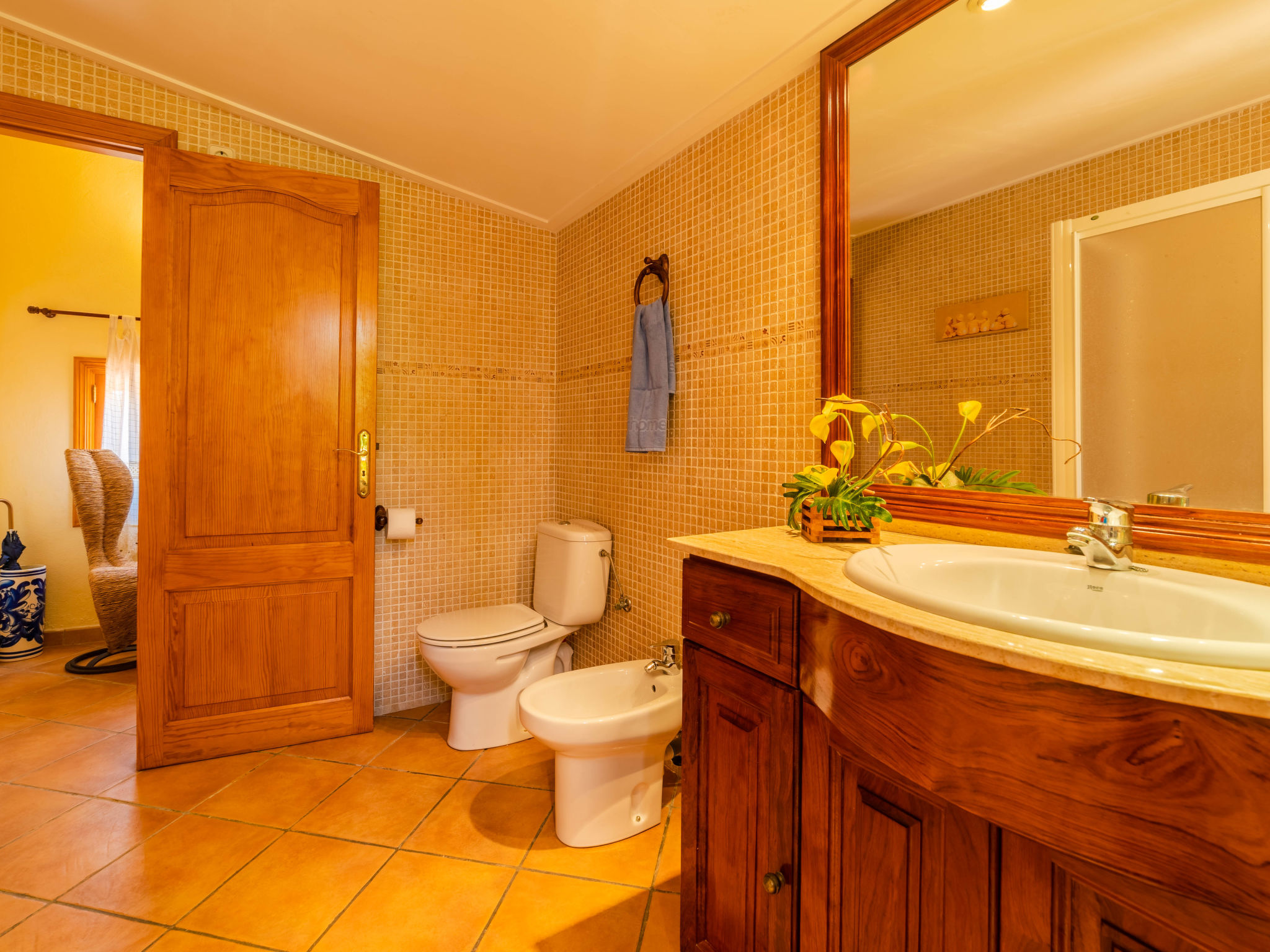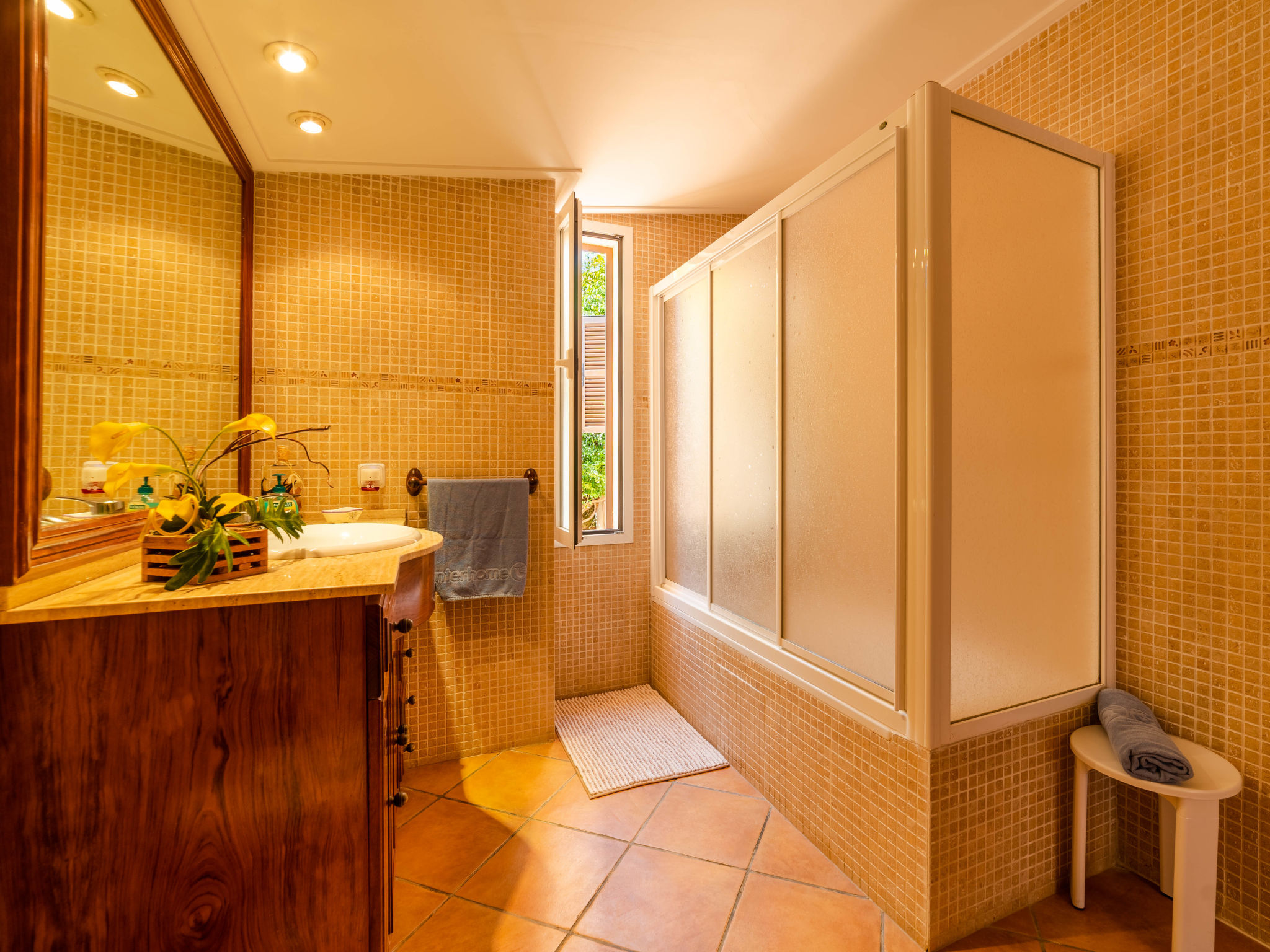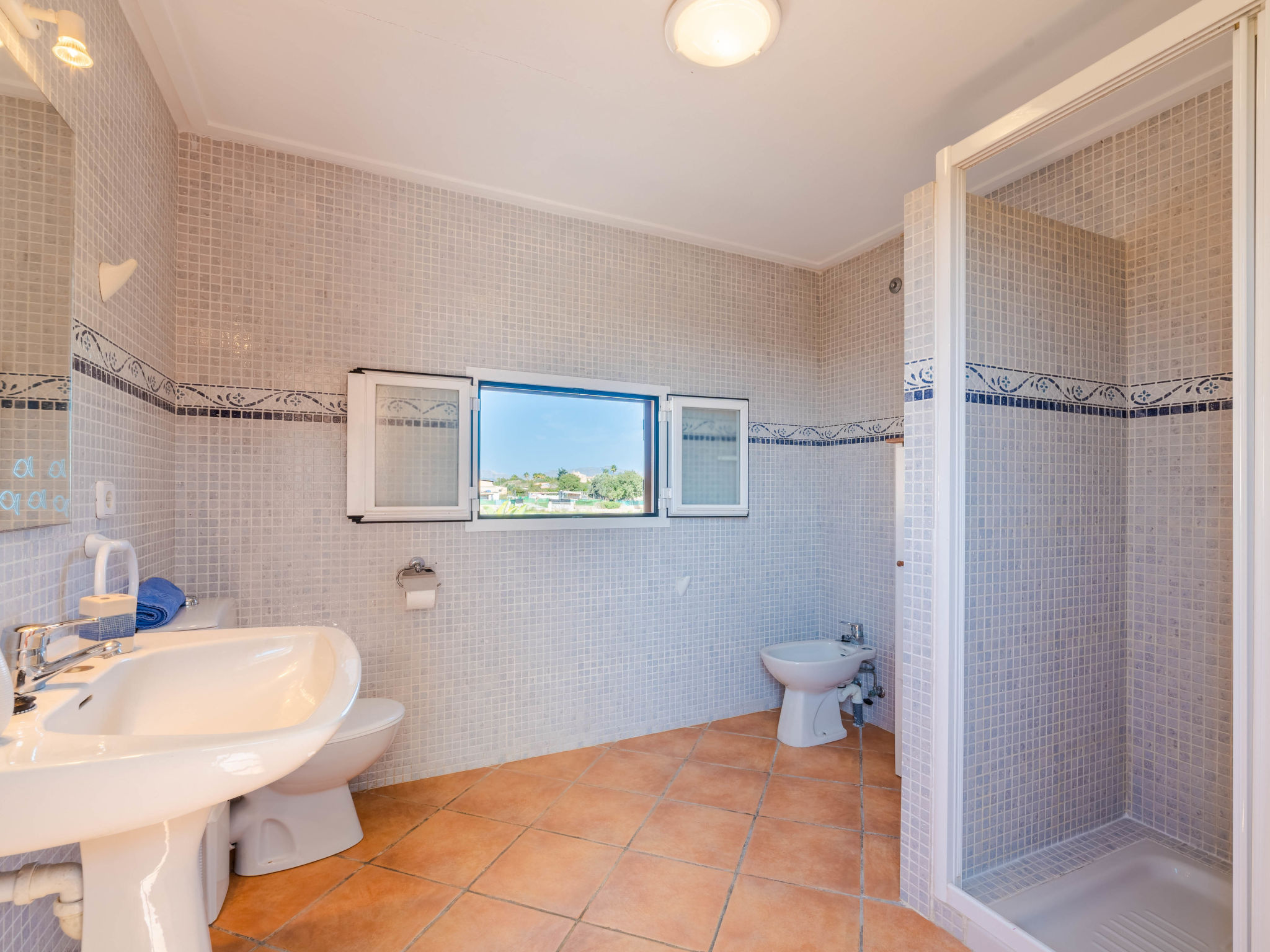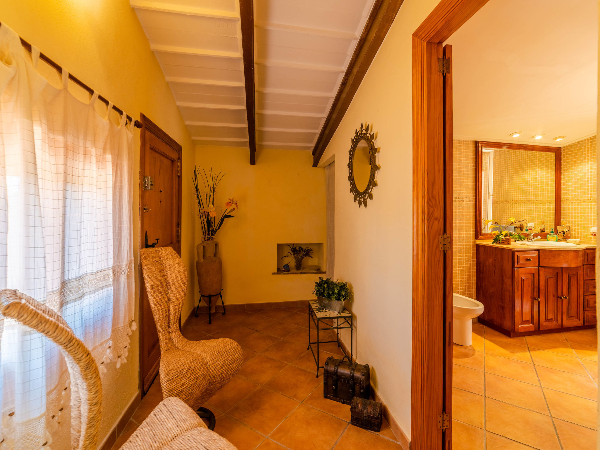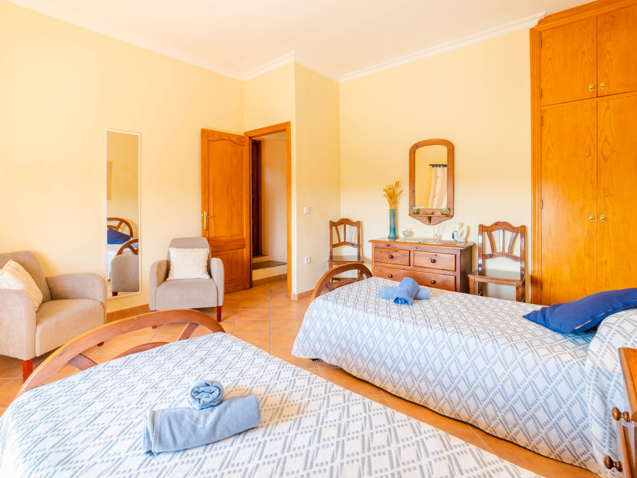 "Can Josepot", 4-Zimmer-Haus 130 m2 auf 2 Stockwerken. Objekt geeignet für 6 Erwachsene. Geräumig, renoviert, sehr zweckmässig und gemütlich eingerichtet: grosses Wohnzimmer mit offenem Kamin, Sat-TV, Digital-TV, Flachbildschirm und Ventilator. Ausgang zum Gartensitzplatz. 1 Doppelzimmer mit Panoramafenster mit 1 franz. Bett (150 cm, Länge 190 cm), Ventilator. Wohnküche (Backofen, 3 Glaskeramikherd Platten, Mikrowelle, Tiefkühler, elektrische Kaffeemaschine) mit Bar, Esstisch. Ausgang zum Gartensitzplatz, zum Schwimmbad. Bad/Bidet/WC. Obergeschoss: 1 Zimmer mit 1 Ausziehbett (2 Pers. 2 x 90 cm, Länge 190 cm), Klimaanlage und Warmluftheizung. 1 grosses Doppelzimmer mit 2 Betten (90 cm, Länge 190 cm), Klimaanlage und Warmluftheizung. Dusche/Bidet/WC. Terrasse 100 m2, kleine Terrasse 9 m2, grosser Garten. Terrassenmöbel, Gartengrill, Liegestühle (3), Loggia. Schöne Sicht auf die Berge und die Landschaft. Zur Verfügung: Waschmaschine, Wäschetrockner, Bügeleisen, Kinderhochstuhl, Babybett bis 2 Jahre, Haartrockner. Internet (Wireless LAN, gratis). Parkplatz (eingezäunt) beim Haus. Geeignet für Familien. 1 Haustier/Hund erlaubt. Das Badezimmer im 1. Stockwerk ist über die Aussenterrasse erreichbar. Zusätzlich: Deckenventilatoren, elektrische Heizungsradiatoren und 100 l Boiler. Klimaanlage ab März 2020 vorhanden. ETV3456
