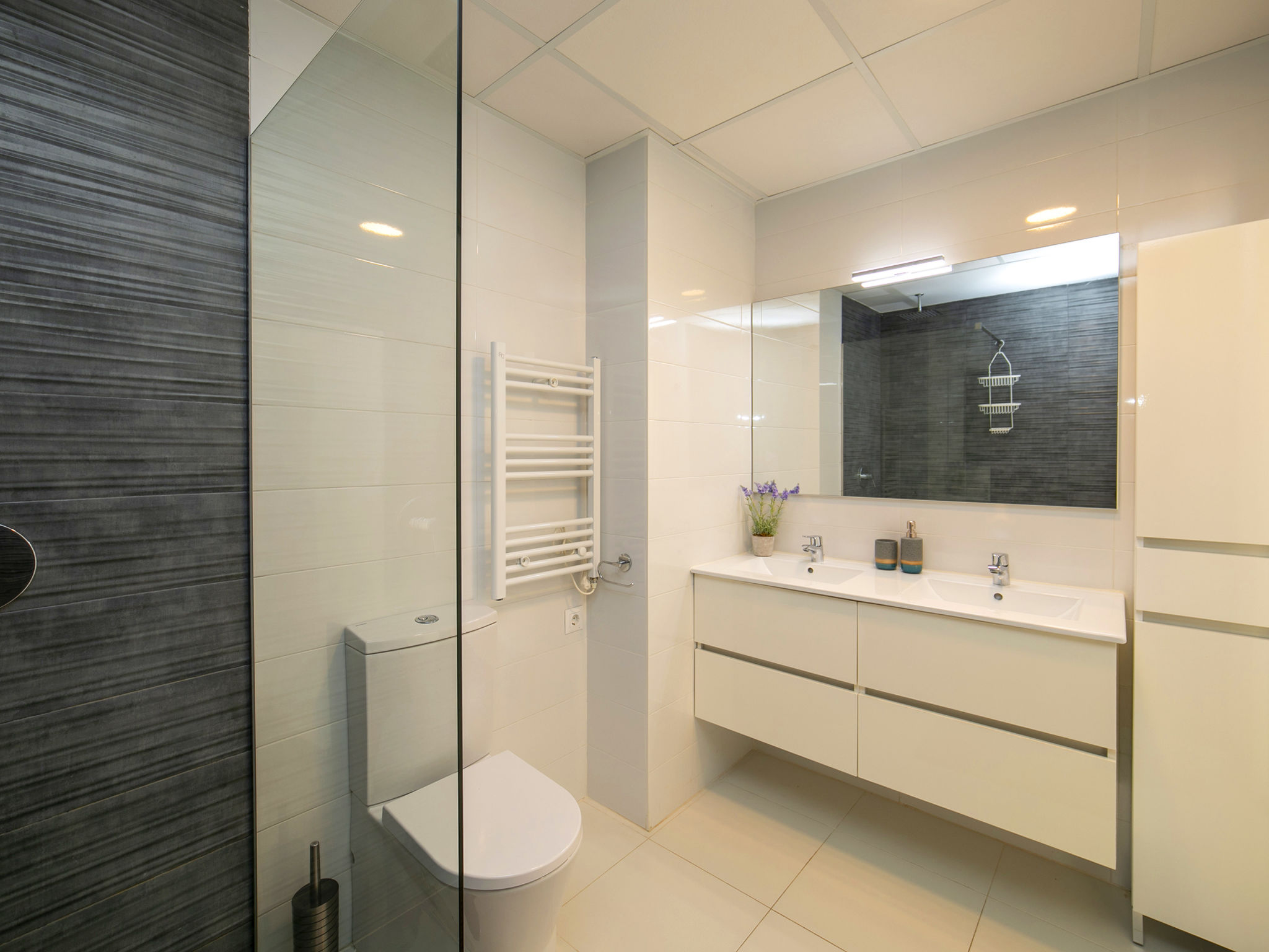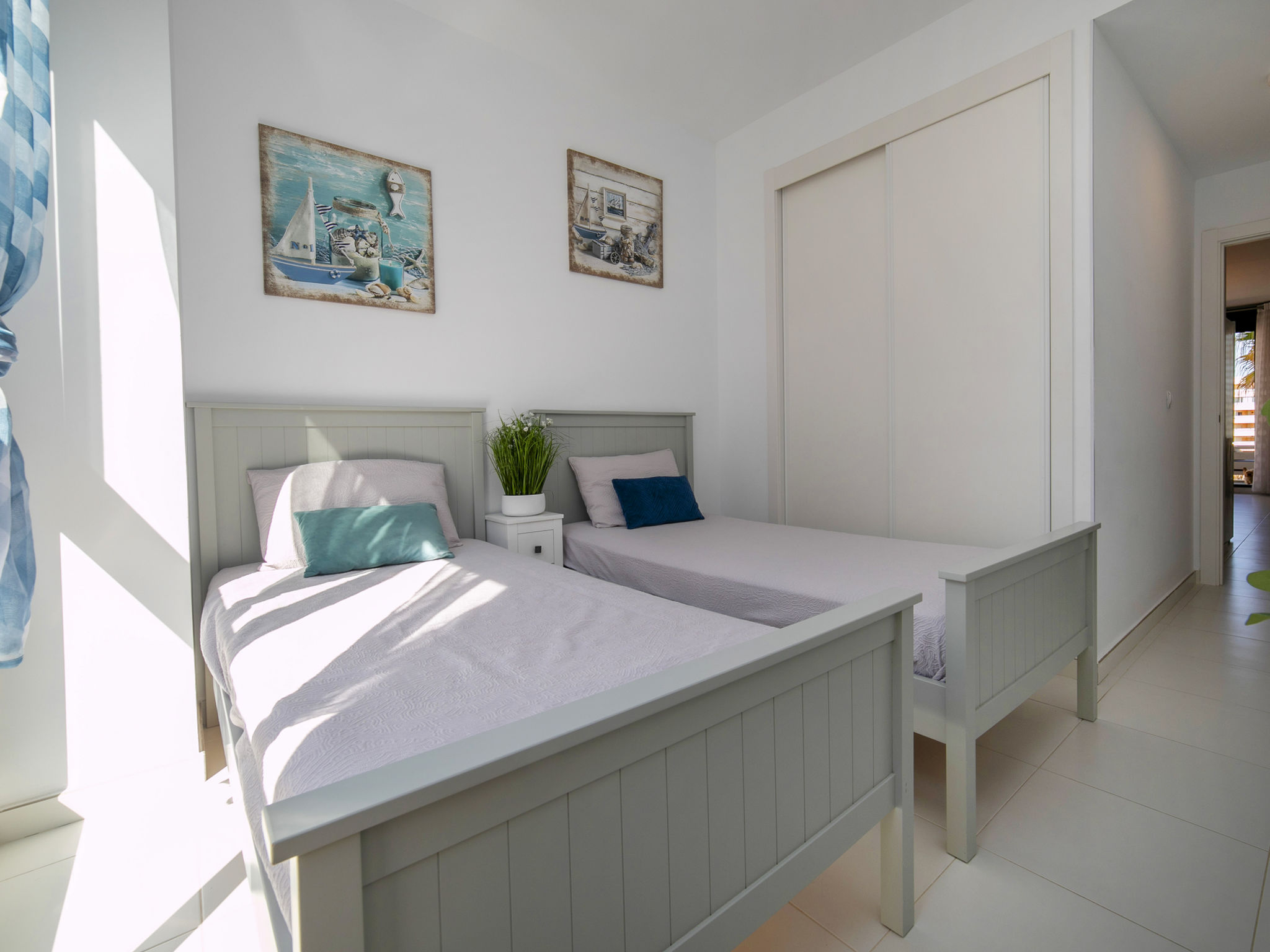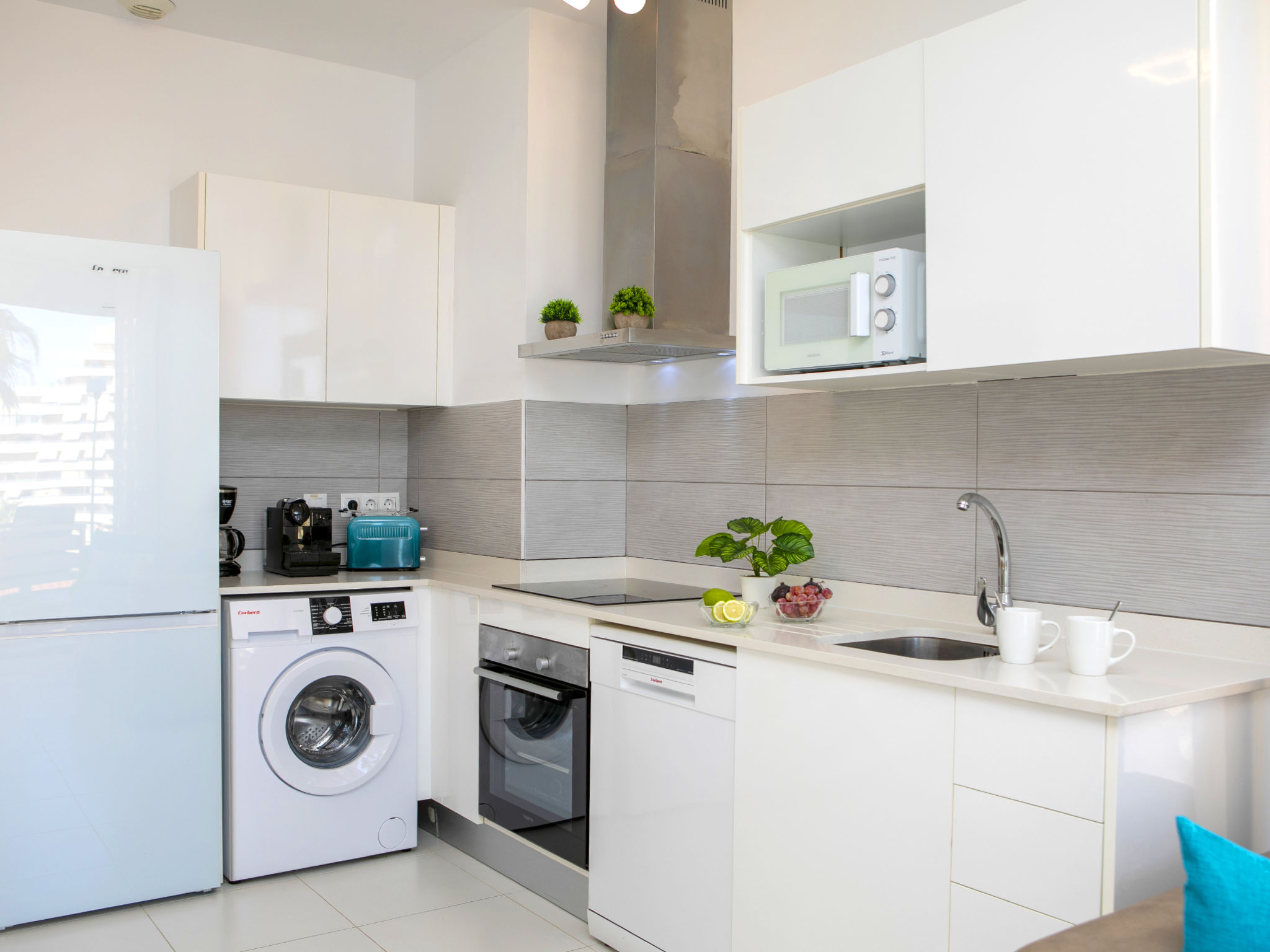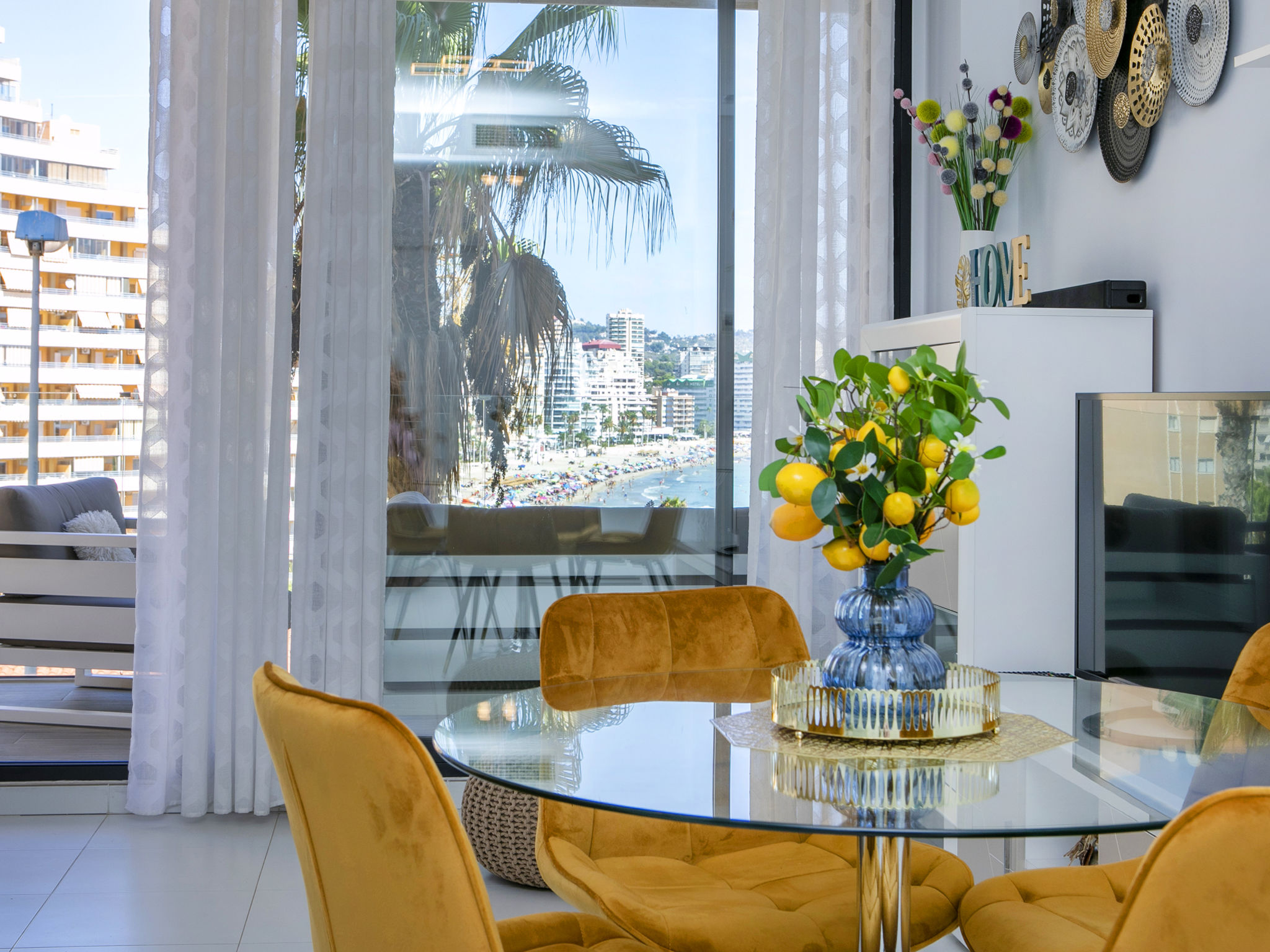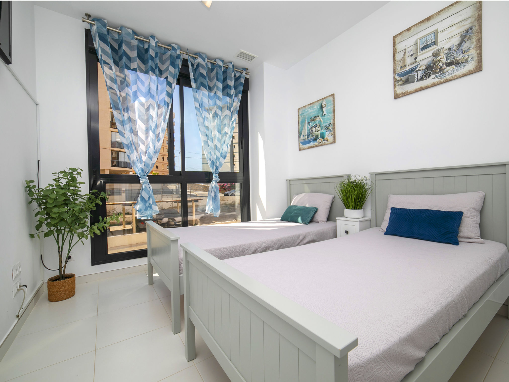 "Calpe Beach II", 3-Zimmer-Wohnung 71 m2 im 2. Stock. Geräumig und hell, sehr schön und modern eingerichtet: offenes Wohn-/Esszimmer mit Panoramafenster mit Sat-TV, Digital-TV, Klimaanlage, Warmluftheizung und elektrischem Rollladen. Ausgang zur Terrasse. 1 Zimmer mit 1 franz. Bett (1 x 160 cm, Länge 200 cm), TV, Klimaanlage und Warmluftheizung. Ausgang zur Terrasse. 1 Zimmer mit 2 Betten (90 cm, Länge 200 cm), Dusche/WC, TV, Klimaanlage und Warmluftheizung. Offene Küche (Backofen, Geschirrspüler, 4 Glaskeramikherd Platten, Mikrowelle, Tiefkühler, elektrische Kaffeemaschine). Dusche/Bidet/WC. Klimaanlage, Boiler. Grosse Terrasse, kleine Terrasse. Terrassenmöbel. Sehr schöne Sicht auf das Meer. Zur Verfügung: Waschmaschine, Bügeleisen, Kinderhochstuhl, Babybett bis 2 Jahre, Haartrockner. Internet (Wireless LAN, gratis). Parkplatz Nr. 20 (überdacht). Bitte beachten: geeignet für Familien. Nichtraucher-Unterkunft. VT-484123-A