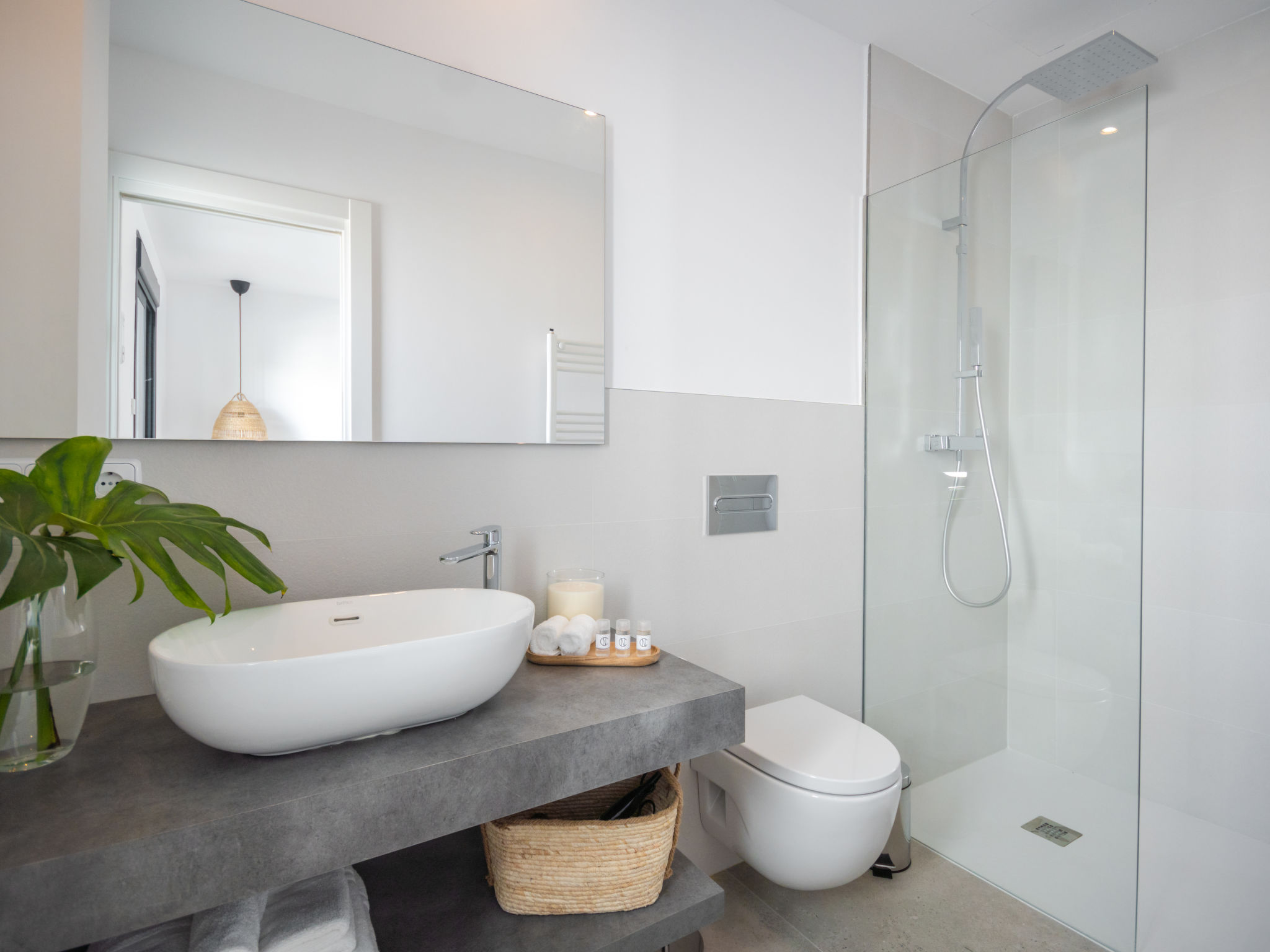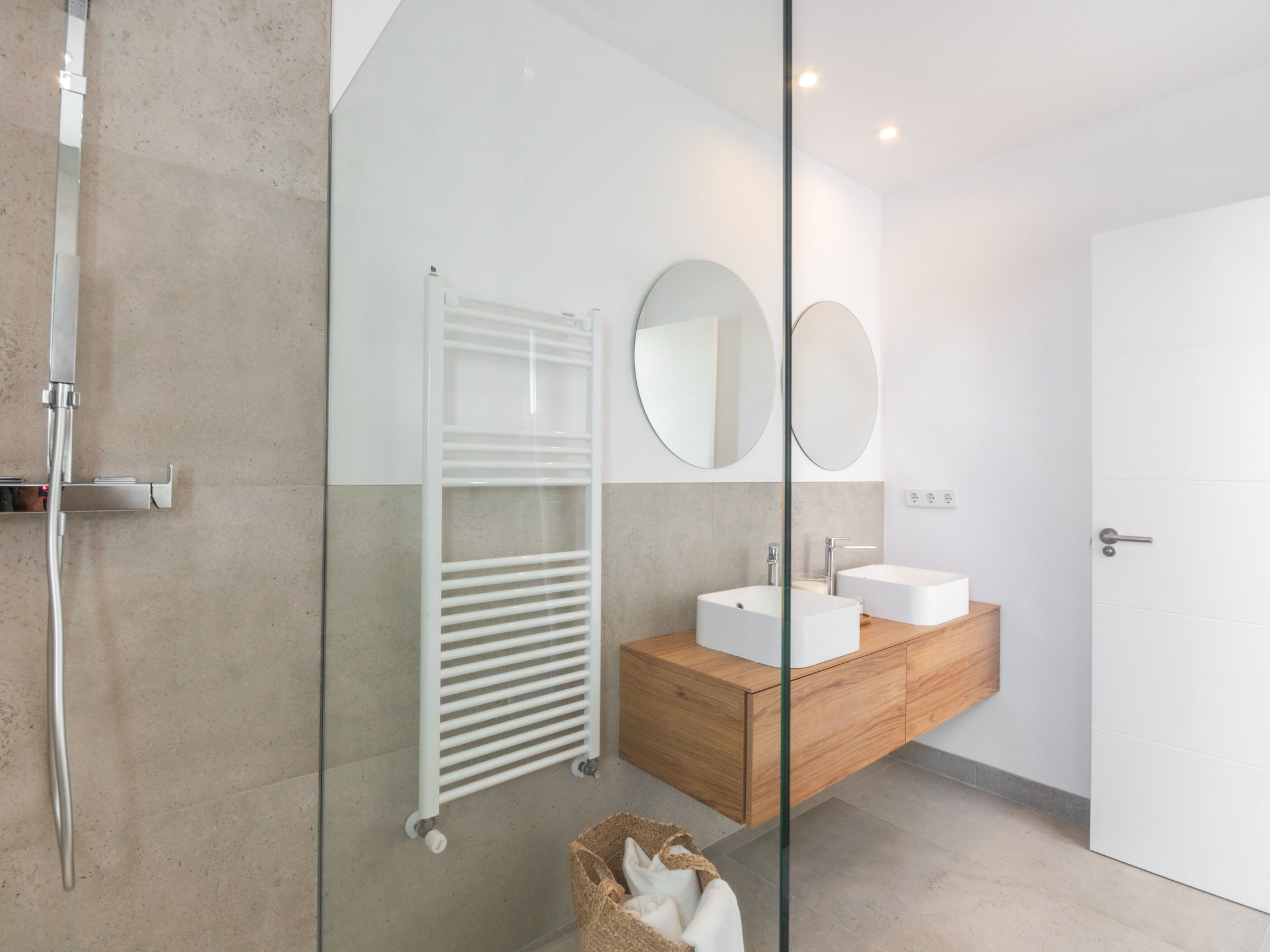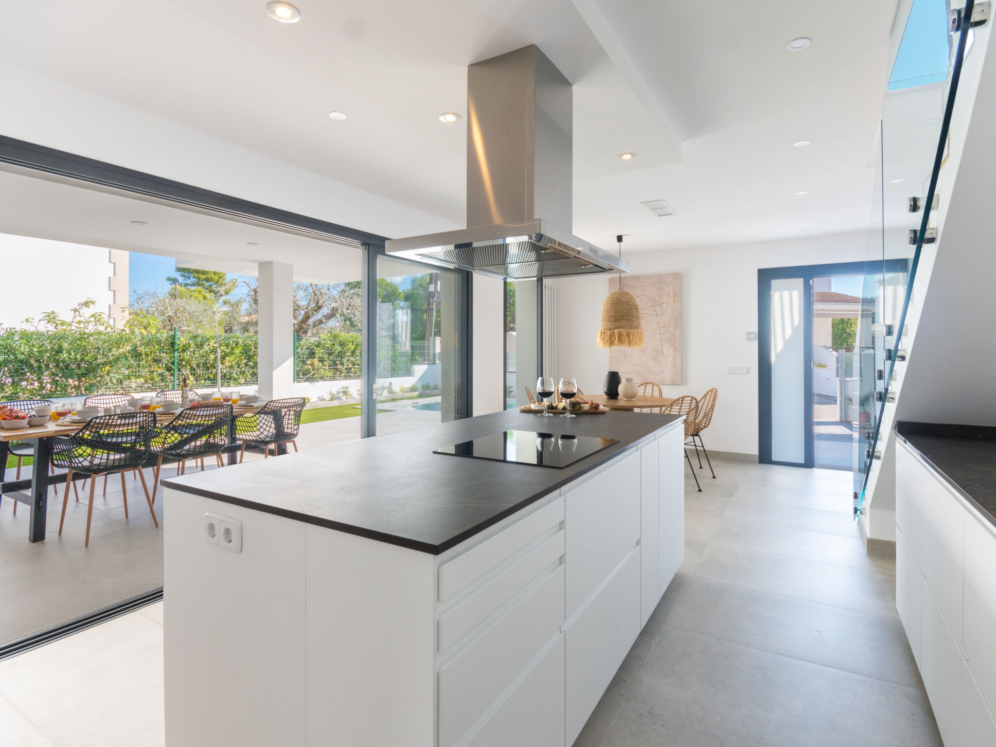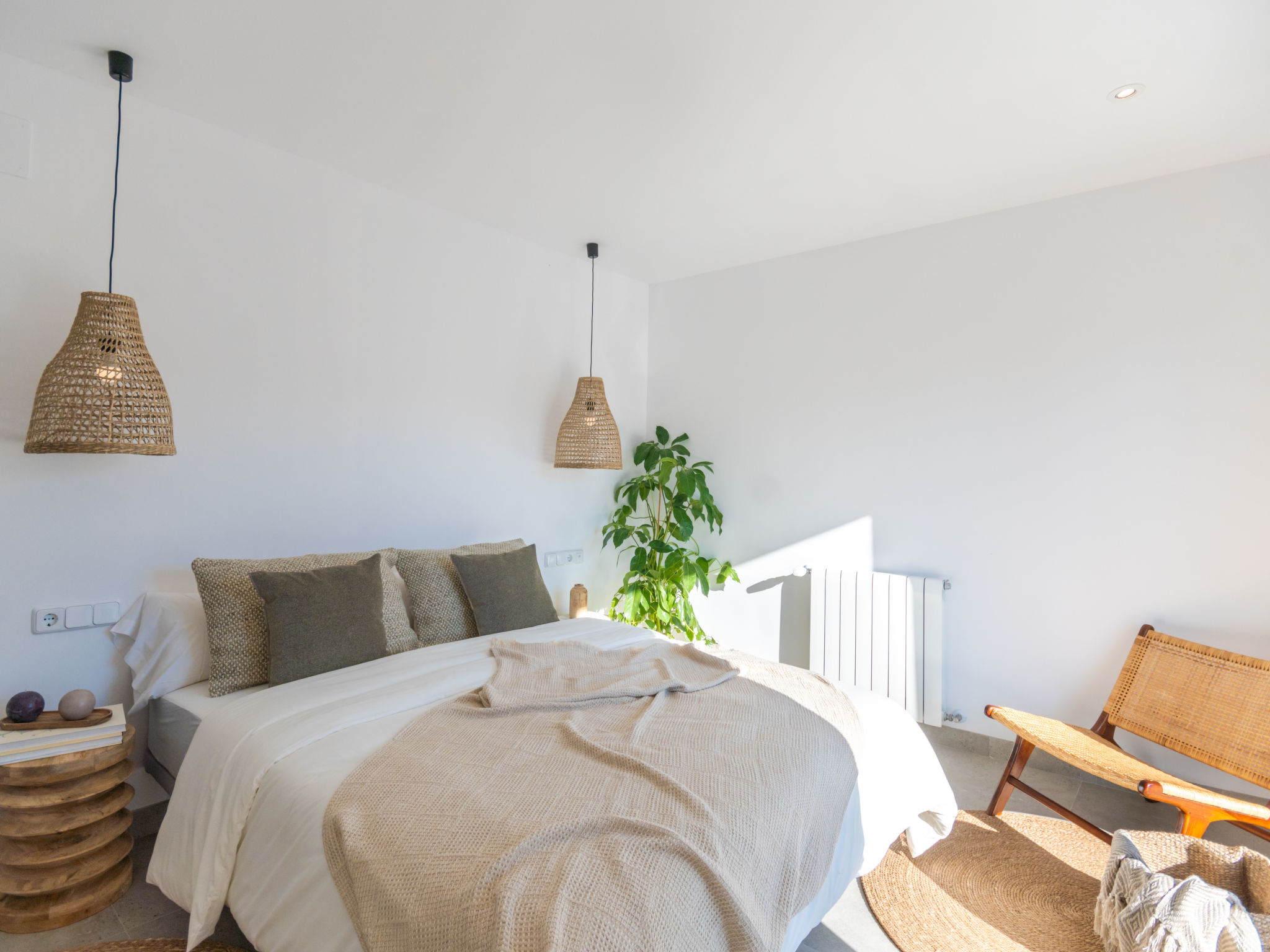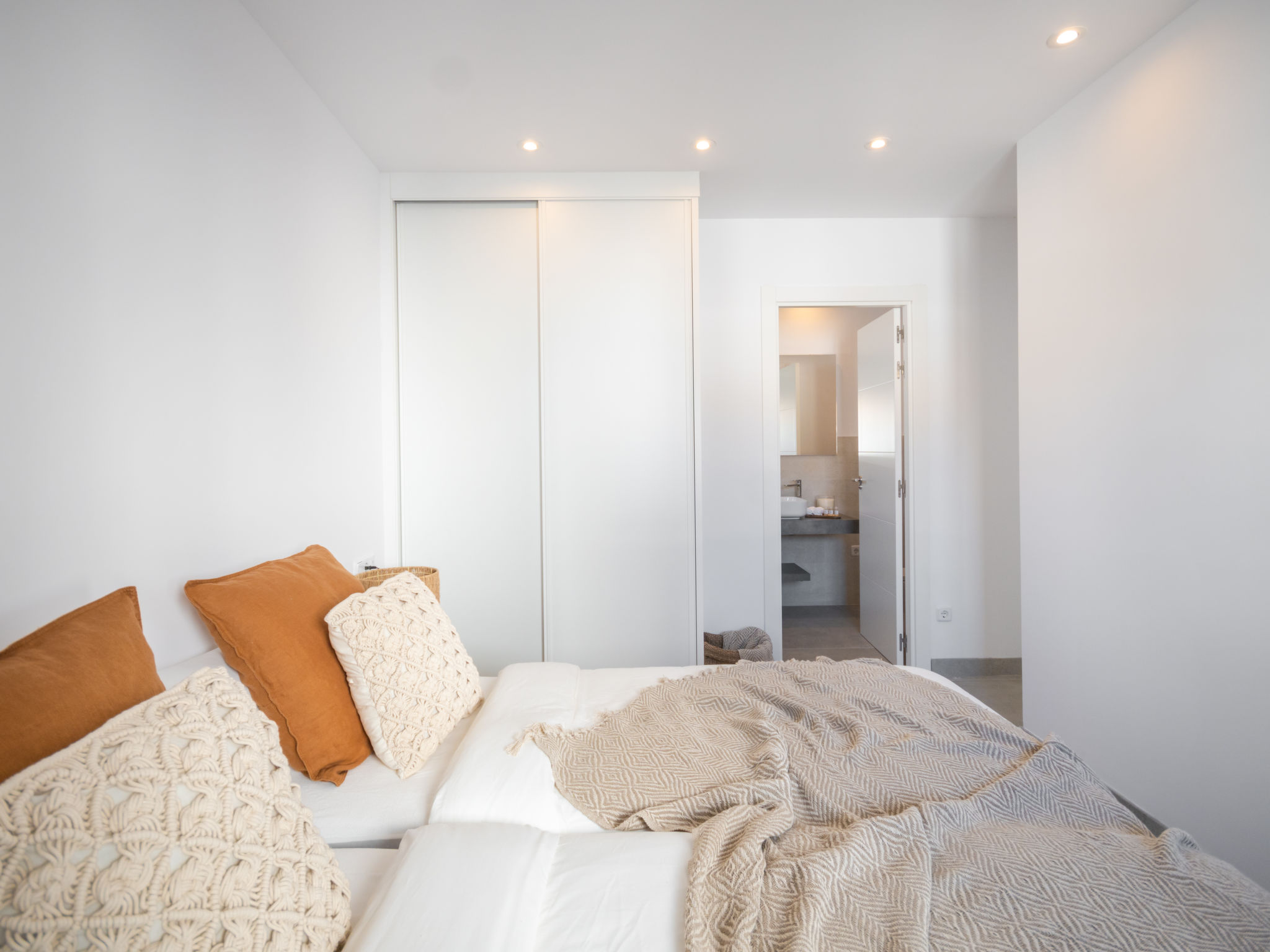 Barcares 1 km von Alcúdia: Modernes, sehr komfortables Doppelhaus "Ca na Cati", auf 2 Stockwerken, einseitig angebaut, Baujahr 2020. Im Ortsteil Barcarés, ruhige Lage im Villenviertel, 2 km vom Waldrand, 200 m vom Meer, 350 m vom Strand. Zur Alleinbenutzung: Garten mit Pflanzen, Hof, Schwimmbad eckig (4 x 3 m, 50 - 160 cm tief, 01.01.-31.12.) mit Salzelektrolyse-Reinigungssystem. Aussendusche, Sitzplatz, Laube, Pergola, Gartenmöbel, Grill, Poolpflege durch den Besitzer/Gärtner. Im Hause: Internetzugang, Wireless LAN, Einstellraum für Fahrräder, Zentralheizung, Klimaanlage, Waschmaschine, Wäschetrockner. Parkplatz beim Haus auf dem Grundstück. Einkaufsgeschäft 1 km, Lebensmittelgeschäft 1 km, Supermarkt 1.2 km, Restaurant, Bar 950 m, Bäckerei 1.2 km, Fußgängerzone 500 m, Fahrradverleih 1 km, Biergarten 950 m, Zentrum zu Fuss in 15 Minuten erreichbar, Bushaltestelle 1 km, Sandstrand "Es Morer Vermell" 1 km, Kieselstrand "Sa Marina" 350 m, Steinstrand "Barcares" 350 m, Badebucht 250 m. Sporthafen 3 km, Jacht-Hafen 3 km, Golfplatz (18 Loch) 5 km, Surfschule 1 km, Tennis 2 km, Reitstall 2.5 km, Sportzentrum 200 m, Wanderwege ab Haus, Radweg 500 m. Nahe gelegene Sehenswürdigkeiten: Ciudad Romana de Alcúdia. 1 km, Port de Pollença - Pollença 4 km, Puerto de Alcúdia 3 km, Serra de Tramuntana, Playa / Faro de Formentor. Wandergebiete: S'Albufera d'Alcúdia, Ermita de la Victoria - s'Atalaia d'Alcú, Puig de Sant Martí. Bitte beachten: geeignet für Familien, geeignet für Senioren. Objekt geeignet für 6 Erwachsene. Der Besitzer akzeptiert keine Jugendgruppen. Flugplatz 50 km vom Haus. Die Nachbarschaft ist sehr lärmempfindlich. Ruhe und gutes Benehmen wird erwartet.