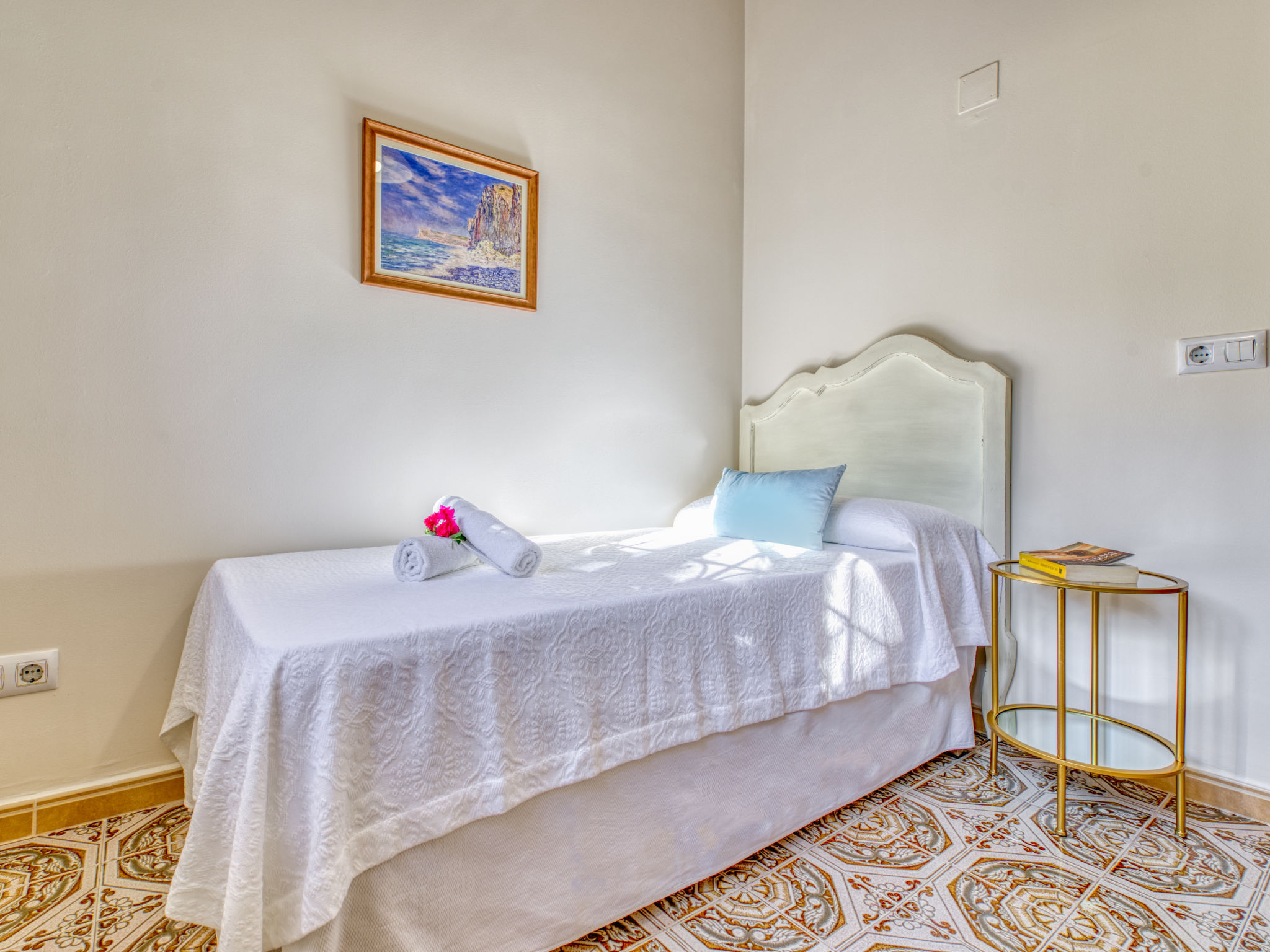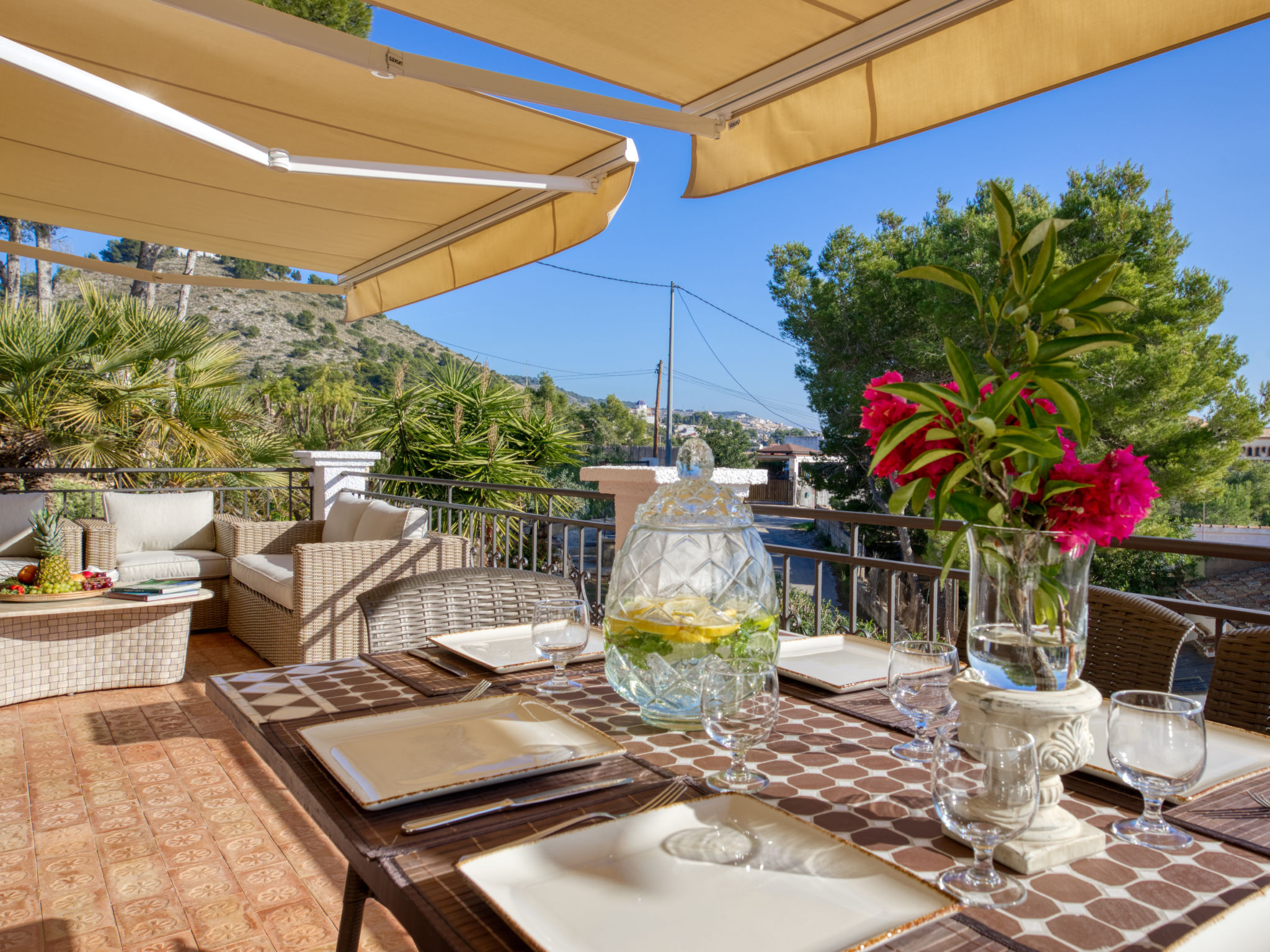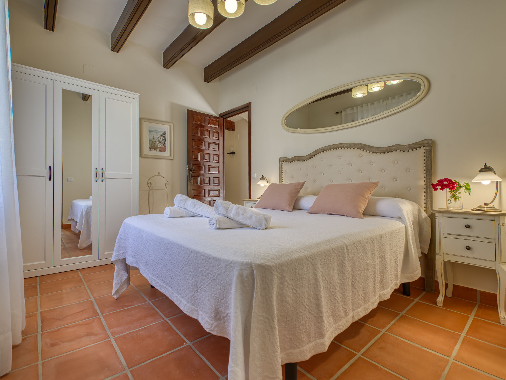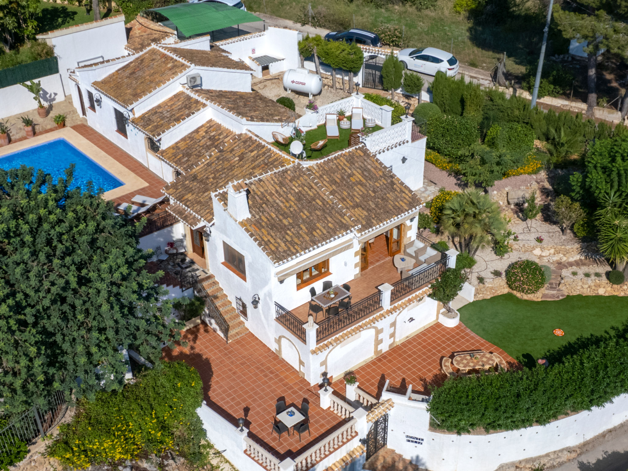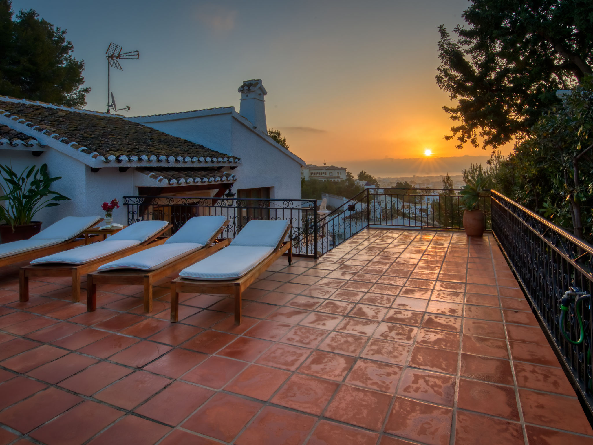 "Villa Monte Feliz", 4-Zimmer-Villa 280 m2. Geräumig, sehr schön und stilvoll eingerichtet: Wohn-/Esszimmer mit Sat-TV, Digital-TV, Klimaanlage, Ventilator und Warmluftheizung. Ausgang zur Terrasse. Grosse Küche (Backofen, Geschirrspüler, 4 Induktionskochplatten, Toaster, Wasserkocher, Mikrowelle, Tiefkühler, elektrische Kaffeemaschine). Obergeschoss: 1 Zimmer mit 1 franz. Bett (160 cm, Länge 200 cm). 1 Zimmer mit 1 Bett (90 cm, Länge 200 cm). Dusche/WC. 2. Obergeschoss: 1 Zimmer mit begehbarer Kleiderschrank mit 1 franz. Bett (160 cm, Länge 200 cm), Dusche/WC, Doppelwaschbecken, Klimaanlage und Warmluftheizung. 1 Zimmer mit 1 franz. Bett (160 cm, Länge 200 cm), Dusche/WC. Terrassenmöbel, Gartengrill, Liegestühle. Sicht auf das Meer und das Tal. Zur Verfügung: Waschmaschine, Wäschetrockner, Bügeleisen, Kinderhochstuhl, Babybett. Internet (Wireless LAN, gratis). Parkplatz, Garage. Geeignet für Familien. VT487021A