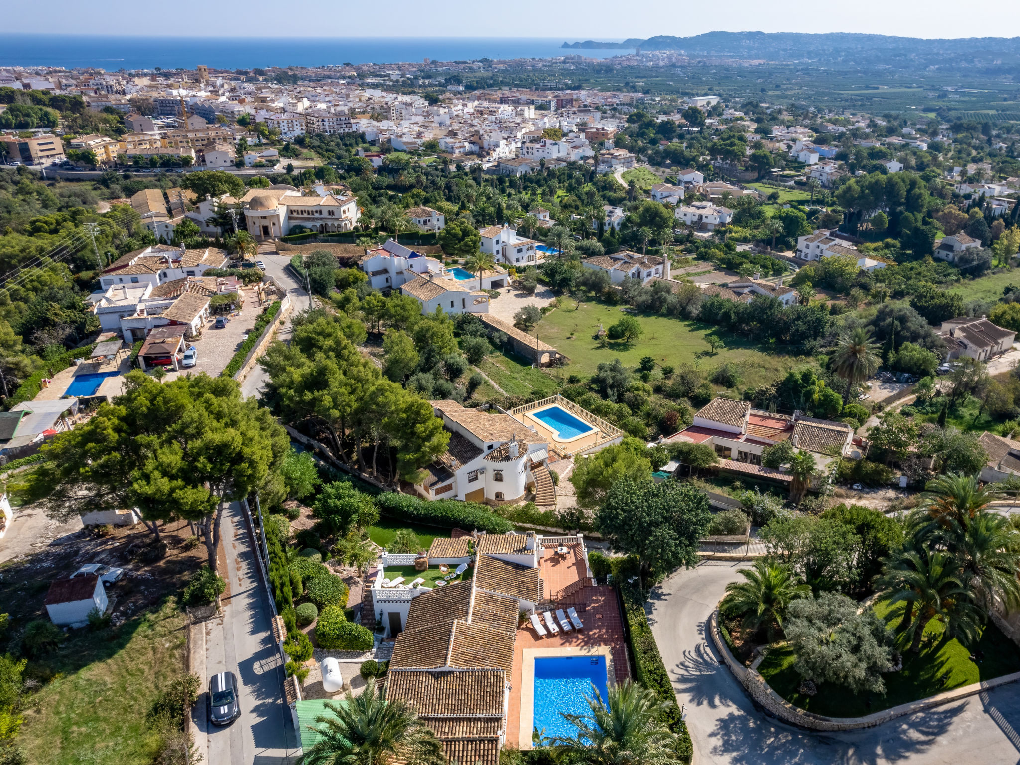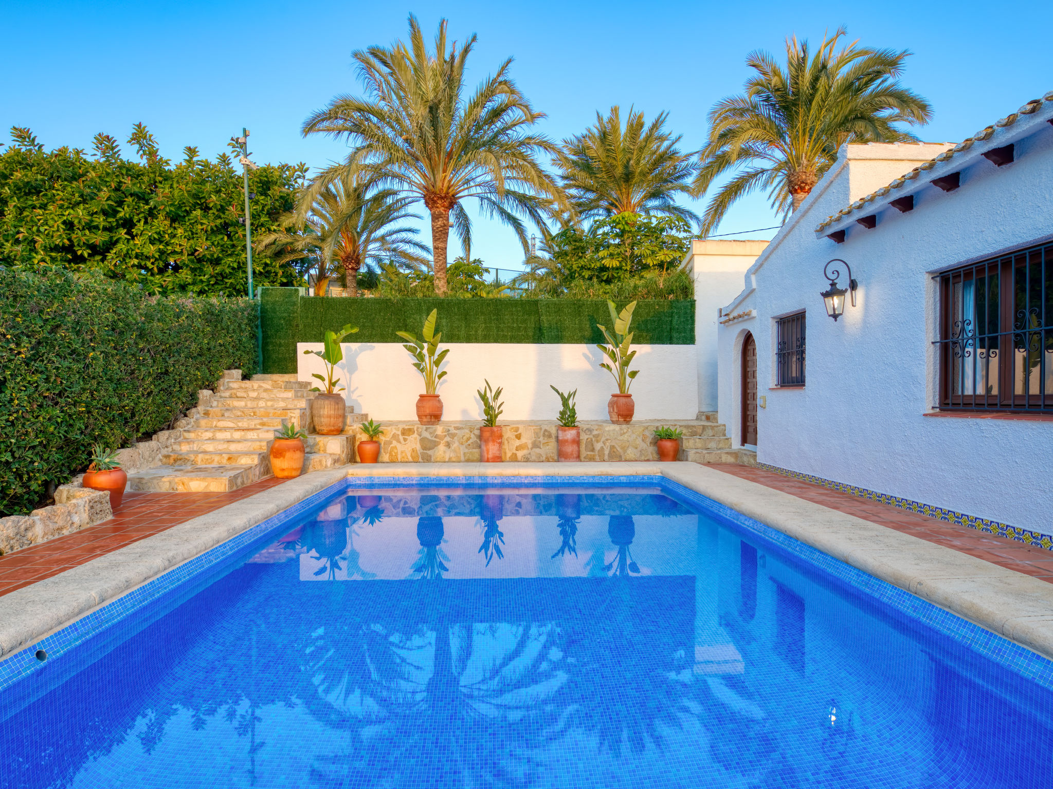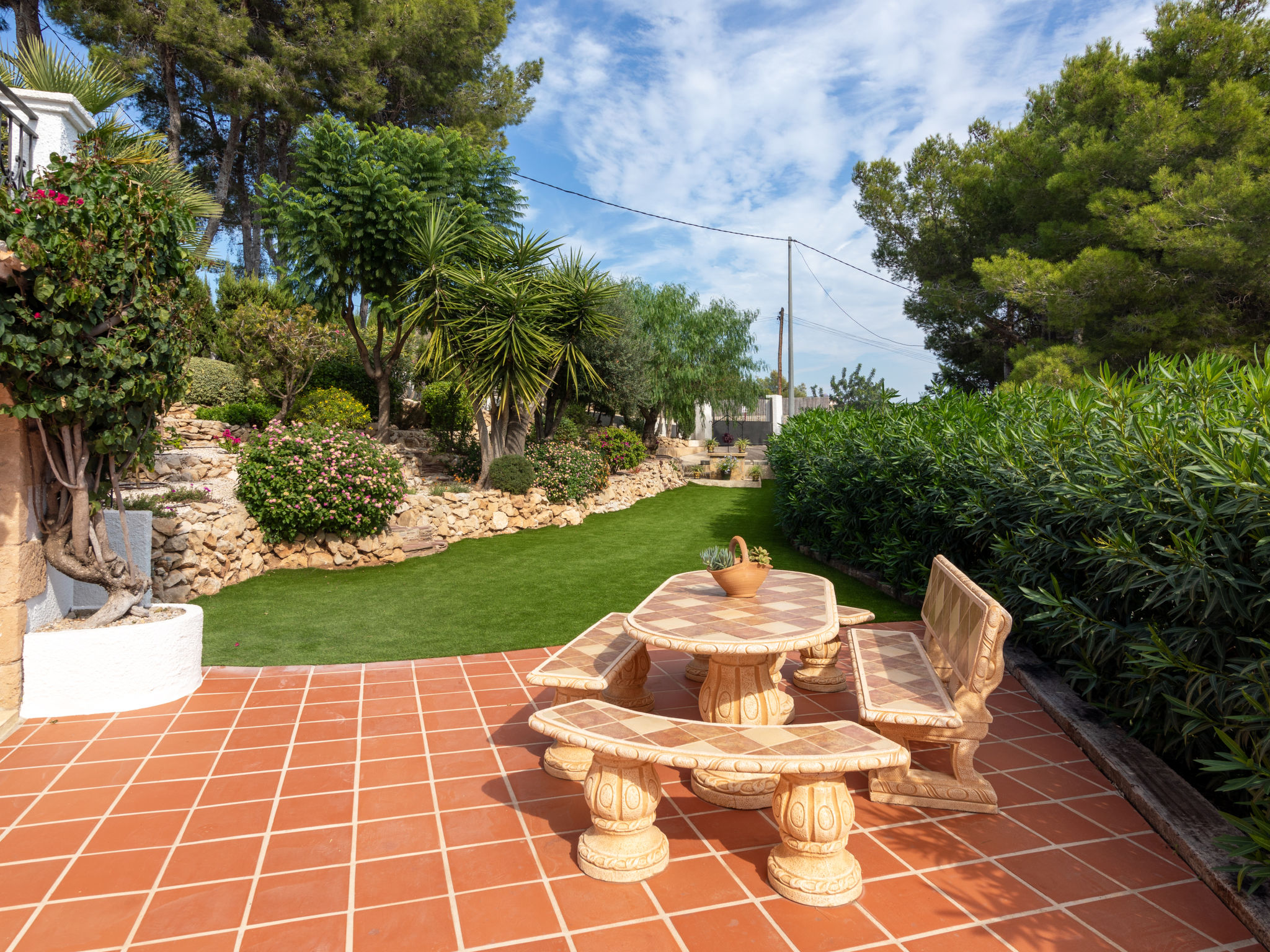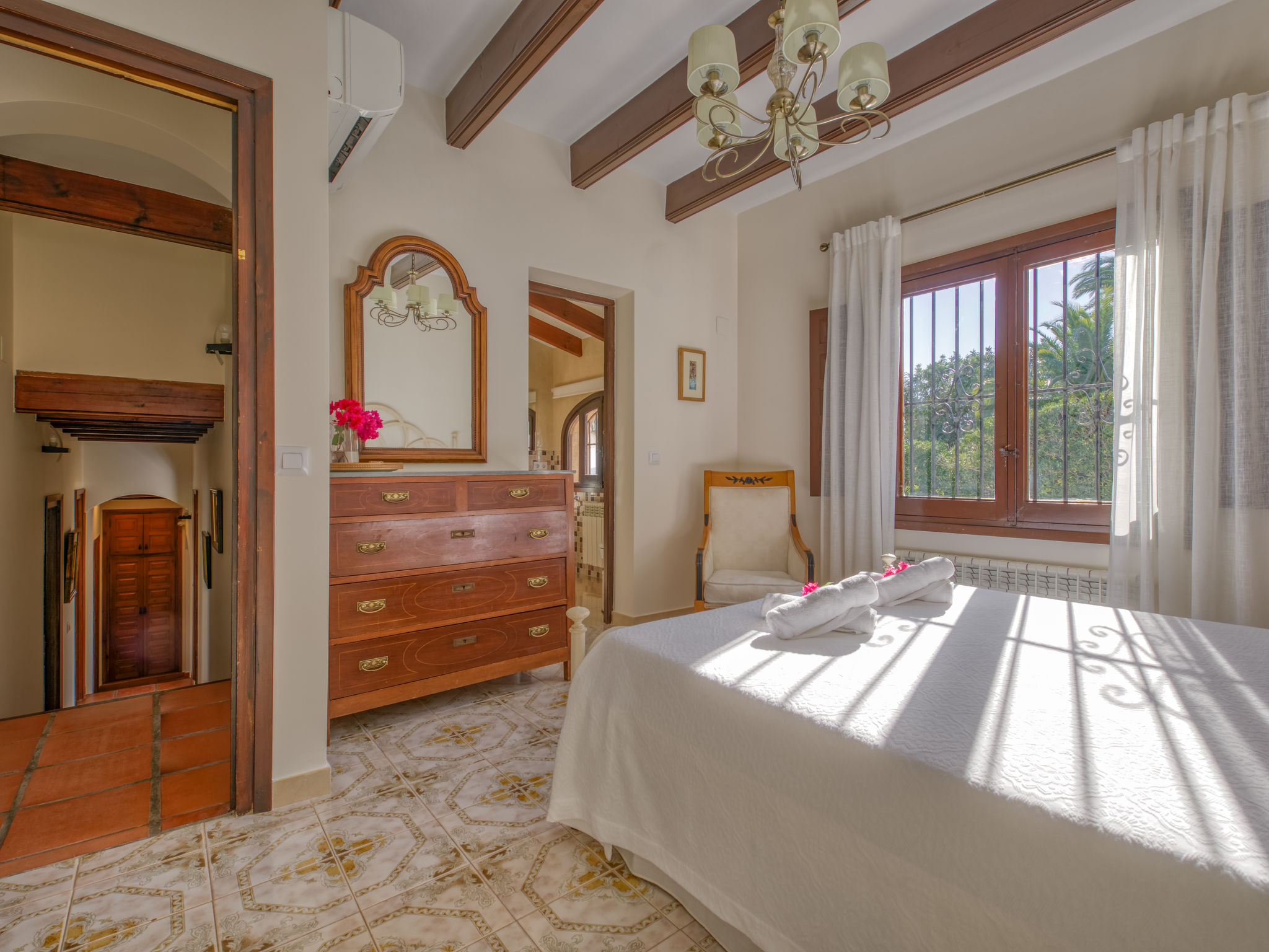 "Villa Monte Feliz", 4-Zimmer-Villa 280 m2. Geräumig, sehr schön und stilvoll eingerichtet: Wohn-/Esszimmer mit Sat-TV, Digital-TV, Klimaanlage, Ventilator und Warmluftheizung. Ausgang zur Terrasse. Grosse Küche (Backofen, Geschirrspüler, 4 Induktionskochplatten, Toaster, Wasserkocher, Mikrowelle, Tiefkühler, elektrische Kaffeemaschine). Obergeschoss: 1 Zimmer mit 1 franz. Bett (160 cm, Länge 200 cm). 1 Zimmer mit 1 Bett (90 cm, Länge 200 cm). Dusche/WC. 2. Obergeschoss: 1 Zimmer mit begehbarer Kleiderschrank mit 1 franz. Bett (160 cm, Länge 200 cm), Dusche/WC, Doppelwaschbecken, Klimaanlage und Warmluftheizung. 1 Zimmer mit 1 franz. Bett (160 cm, Länge 200 cm), Dusche/WC. Terrassenmöbel, Gartengrill, Liegestühle. Sicht auf das Meer und das Tal. Zur Verfügung: Waschmaschine, Wäschetrockner, Bügeleisen, Kinderhochstuhl, Babybett. Internet (Wireless LAN, gratis). Parkplatz, Garage. Geeignet für Familien. VT487021A