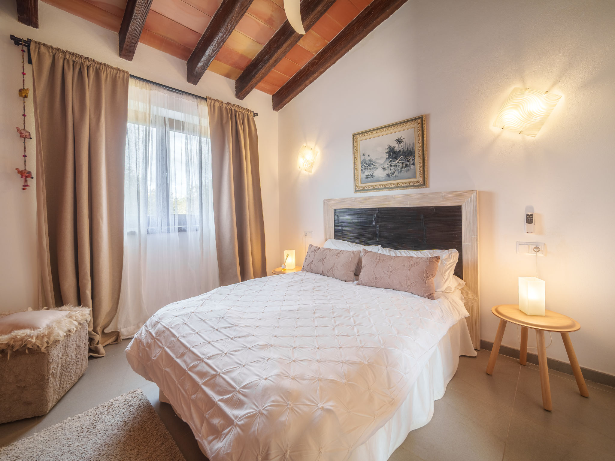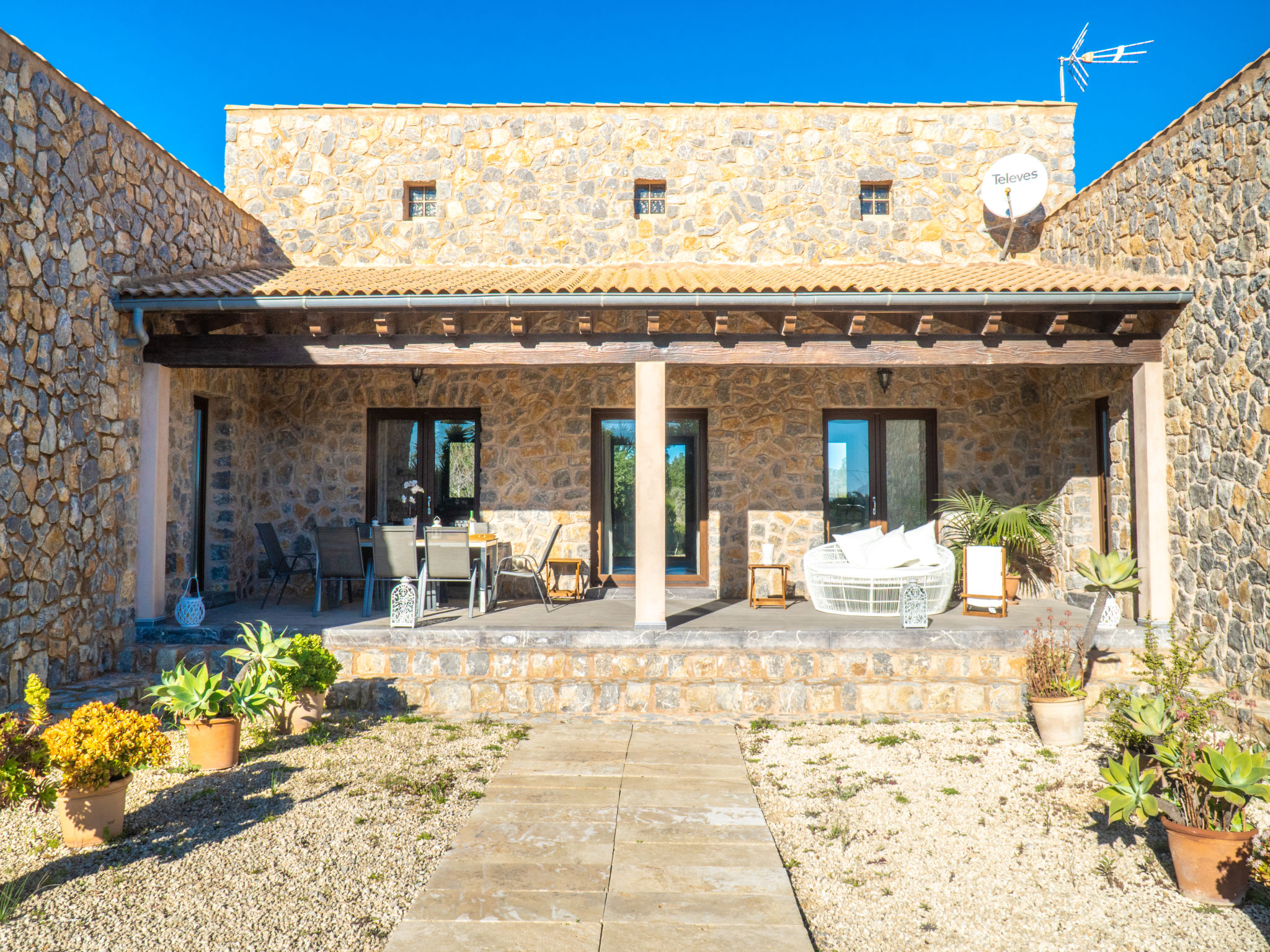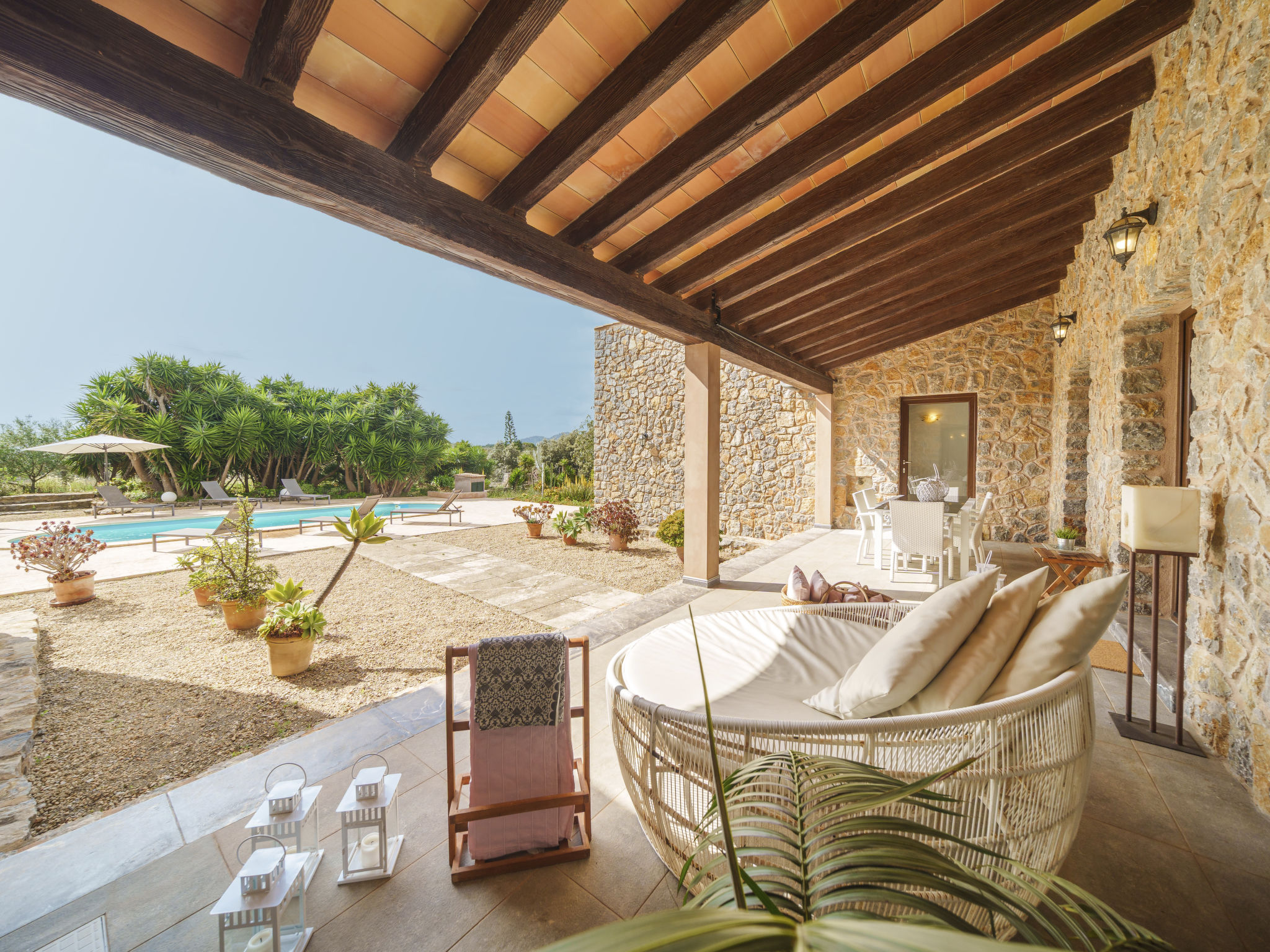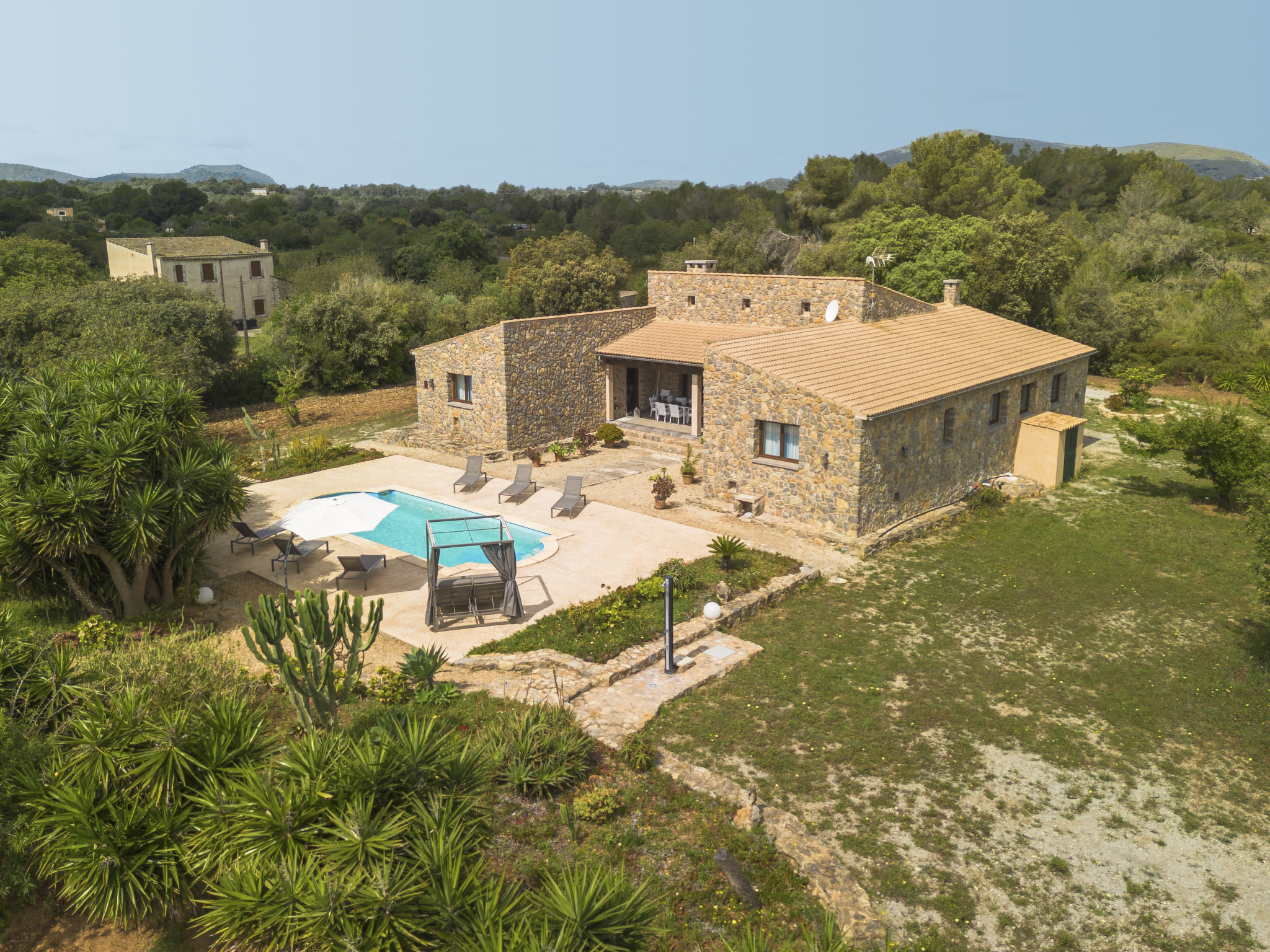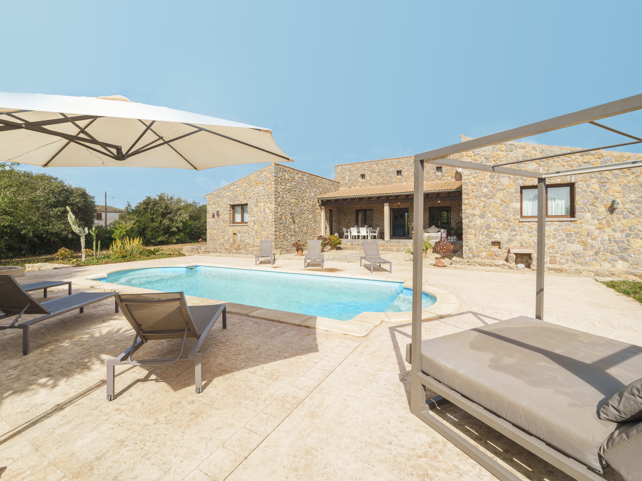 3 km von Artá: Grosser, moderner, schöner Finca "Can Benet", renoviert, umgeben von Bäumen und Feldern. Ausserhalb des Ortes, 3.5 km vom Zentrum von Artà, ruhige, sonnige Lage, 11 km vom Strand, im Grünen. Zur Alleinbenutzung: naturbelassenes Grundstück (eingezäunt), schöner, gepflegter Garten mit Pflanzen, Schwimmbad eckig (10 x 4 m, 140 - 160 cm tief, 01.01.-31.12.). Aussendusche, Sitzplatz, Laube, Pergola, Gartenmöbel, Grill, Poolpflege durch den Besitzer/Gärtner. Im Hause: Internetzugang, Wireless LAN, Einstellraum für Fahrräder, Waschmaschine. Parkplatz beim Haus auf dem Grundstück. Einkaufsgeschäft 3.5 km, Supermarkt 3.8 km, Restaurant 3.4 km, Bar 3.4 km, Bäckerei 3.6 km, Fahrradverleih 3.8 km, Zentrum zu Fuss in 48 Minuten erreichbar, Sandstrand "Cala Bona,Sa Marjal,Cala Millo" 12 km. Sporthafen 12.5 km, Golfplatz (18 Loch) 8.3 km, Tennis 3.5 km, Wanderwege ab Haus 2 km, Radweg 150 m. Nahe gelegene Sehenswürdigkeiten: Artá, Son Servera, Capdepera, St Lorenzo, Artá Local Market (Tuesday 9-14h) 4.7 km, Colonya de Sant Pere, Betlem. Wandergebiete: Ermita de Betlem, Parc Natural de Llevant. Bitte beachten: Fahrzeug empfohlen. Geeignet für Familien, geeignet für Senioren. Objekt geeignet für 8 Erwachsene. Der Besitzer akzeptiert keine Jugendgruppen. Tiere in der Umgebung. Flugplatz 65 km vom Haus.