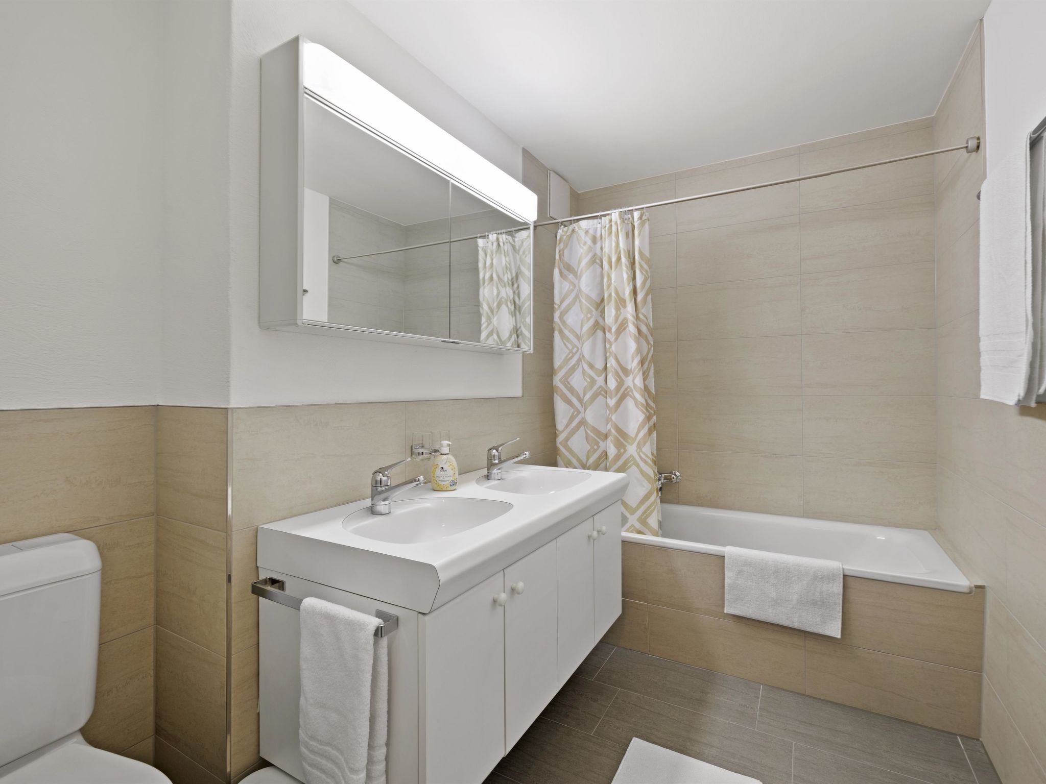 Helle 4.5 Zimmerwohnung mitten in Churwalden. 2 Schlafzimmer mit Doppelbett, 1 Schlafzimmer mit 2 einzelnen Betten. Wohnküche mit Geschirrspüler, Backofen, Kühl- und Gefrierschrank. Grosses helles Wohnzimmer mit Esstisch, grossem Fernseher mit Satelitenempfang. 2 kleine Balkone. Badezimmer mit Badewanne und WC sowie sep. WC mit Waschbecken. 2 Parkplätze in Tiefgarage. Arzt, Physiotherapeut und Bäckerei im Haus. Coop gleich gegenüber. Ca 200 -300m von der Skischule, Sessellift, Rodelbahn, Tennisplätze, Schwimmbad entfernt.