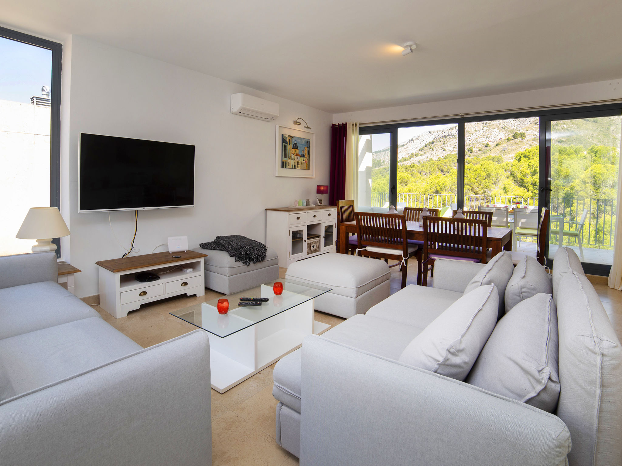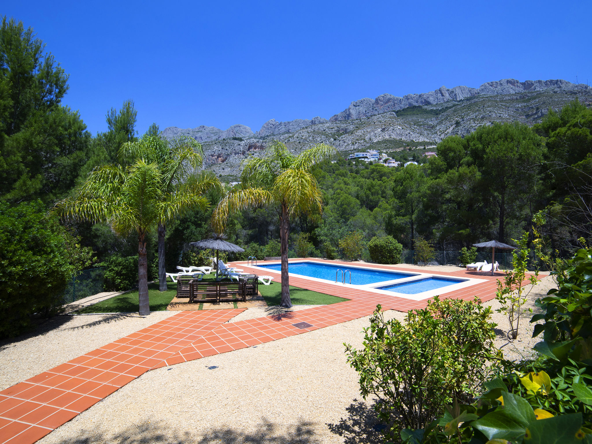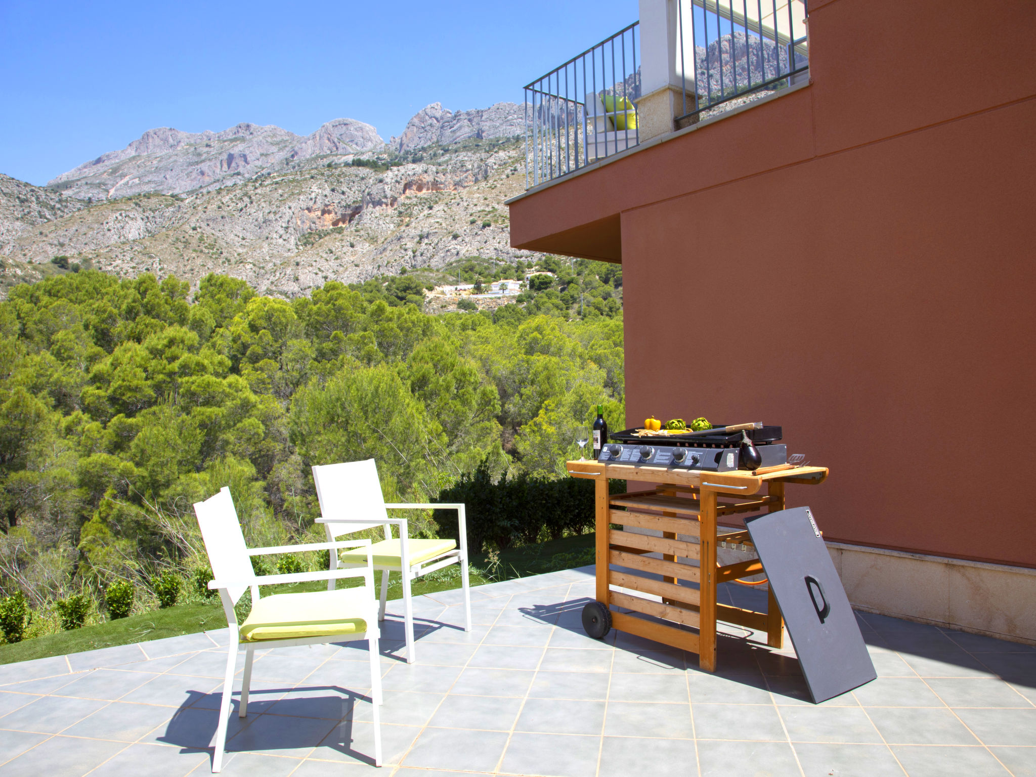 "Mont Verd", 4-Zimmer-Haus 166 m2 auf 2 Stockwerken. Objekt geeignet für 4 Erwachsene + 2 Kinder. Geräumig und hell, vollständig renoviert im Jahre 2021, schön und modern eingerichtet: offenes Wohn-/Esszimmer mit Digital-TV, Klimaanlage und Warmluftheizung. Ausgang zur Terrasse. Offene Küche (Backofen, Geschirrspüler, 3 Glaskeramikherd Platten, Toaster, Wasserkocher, Mikrowelle, Tiefkühler, elektrische Kaffeemaschine, Kombinationsmikrowelle). Sep. WC. Unteres Geschoss: 1 Zimmer mit 1 franz. Bett (180 cm, Länge 200 cm), Bad/WC, Klimaanlage und Warmluftheizung. 1 Zimmer mit 2 Betten (90 cm, Länge 190 cm), Klimaanlage und Warmluftheizung. 1 Zimmer mit 1 Ausziehbett (90 cm, Länge 190 cm), Klimaanlage und Warmluftheizung. Dusche/WC, Doppelwaschbecken. Grosse Terrasse. Terrassenmöbel, Gartengrill. Sicht auf die Berge. Zur Verfügung: Waschmaschine, Bügeleisen, Kinderhochstuhl, Babybett bis 2 Jahre, Haartrockner. Internet (Wireless LAN, gratis). Parkplatz. Bitte beachten: TV nur ES, FR. VT-488189-A